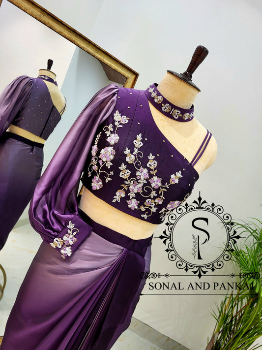 Gorgeous Hand Embroidered Blouse With Drape Skirt - IW01451