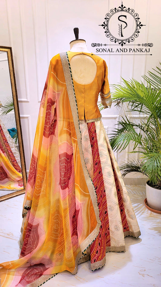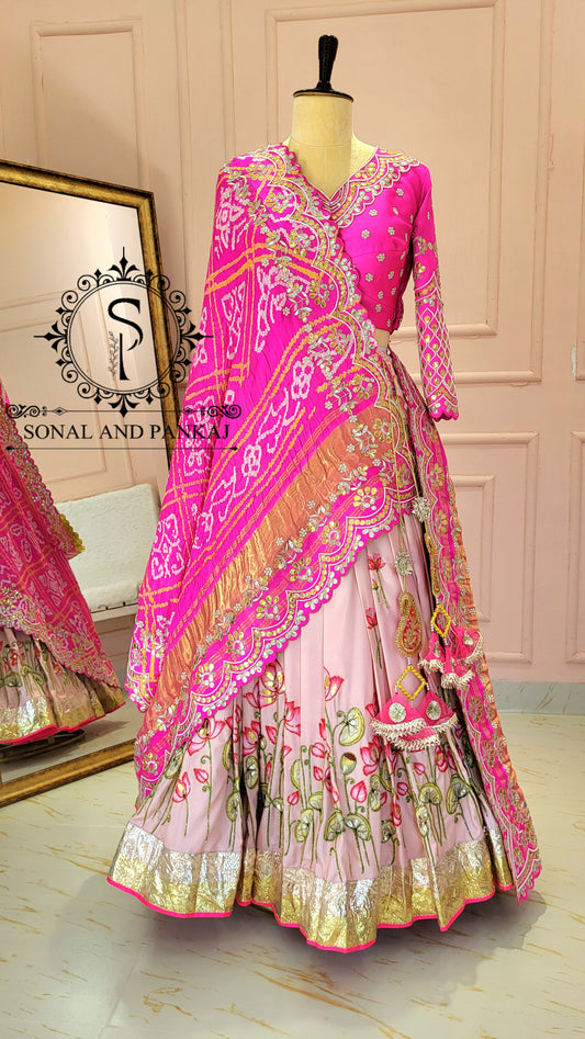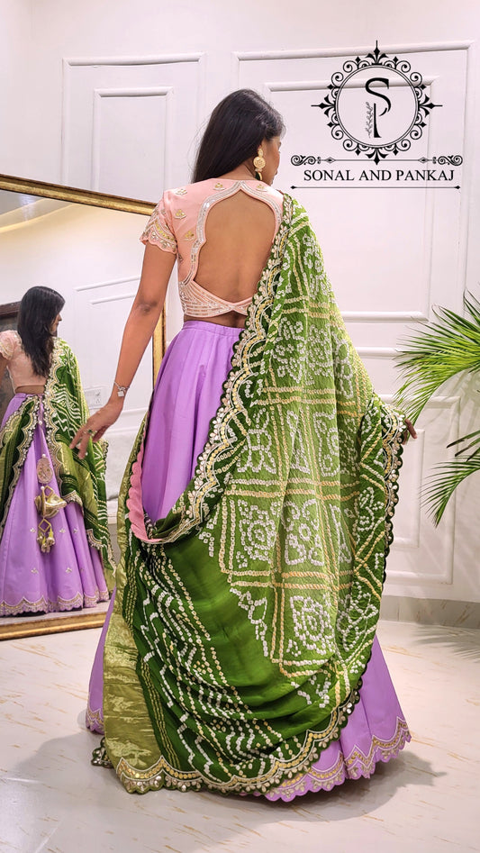 Gotta Patti Hand Embroidered Pure Bandhani Duppatta With Blouse & Lehenga - LH01497