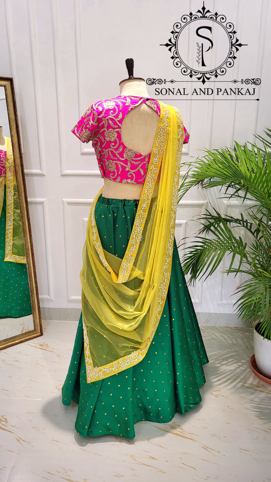 Designer Blouse With Beautiful Hand Embroidered Duppatta & Bottle Green Lehenga - LH01537