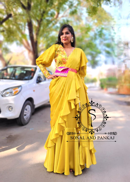 Yellow Ready To Wear Drape Gown Saree - GN00811