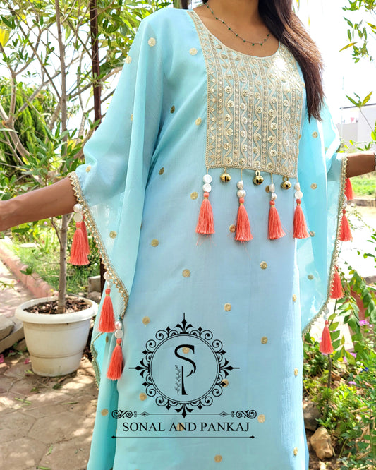 Caftan bleu à imprimé floral - RW01098