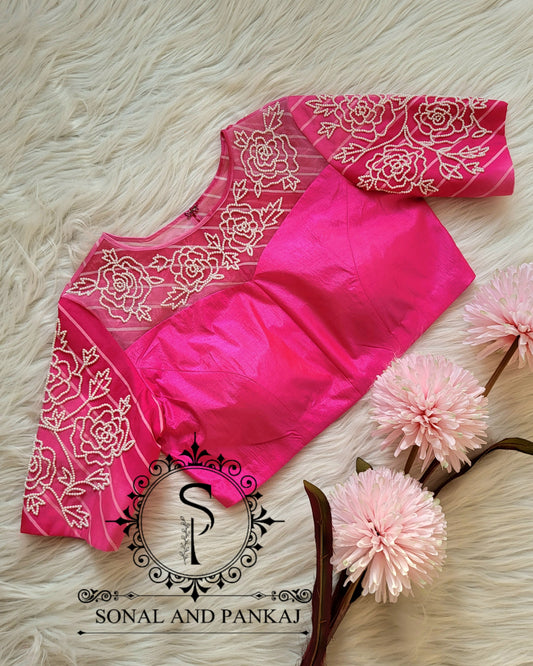 Rose Bandhani Gotta Patti Blouse brodée à la main - BL01044