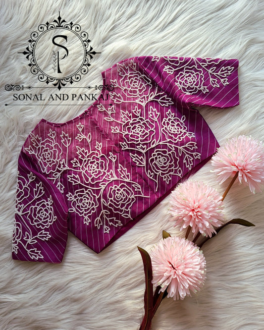 Maroon Velvet Hand Embroidered Blouse - BL01318