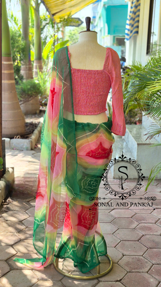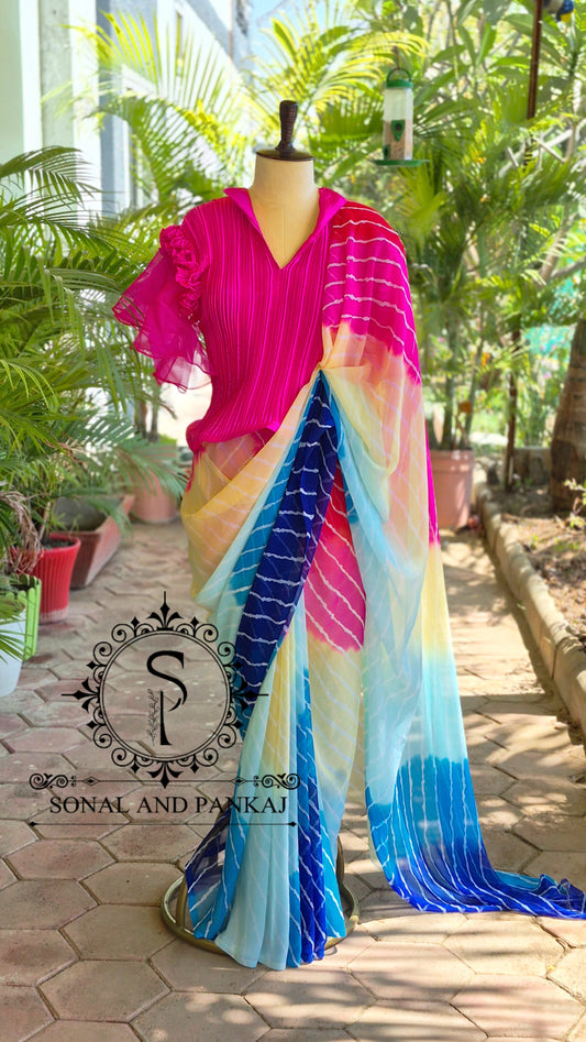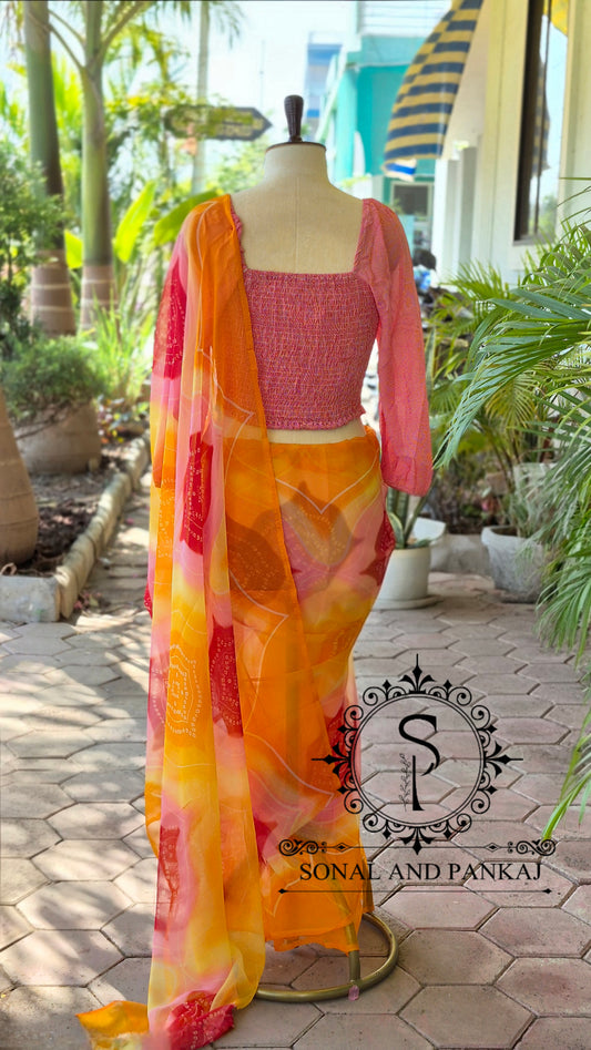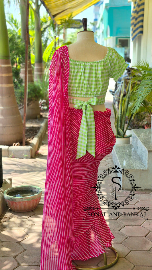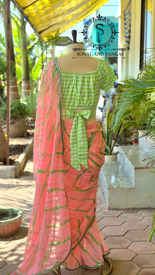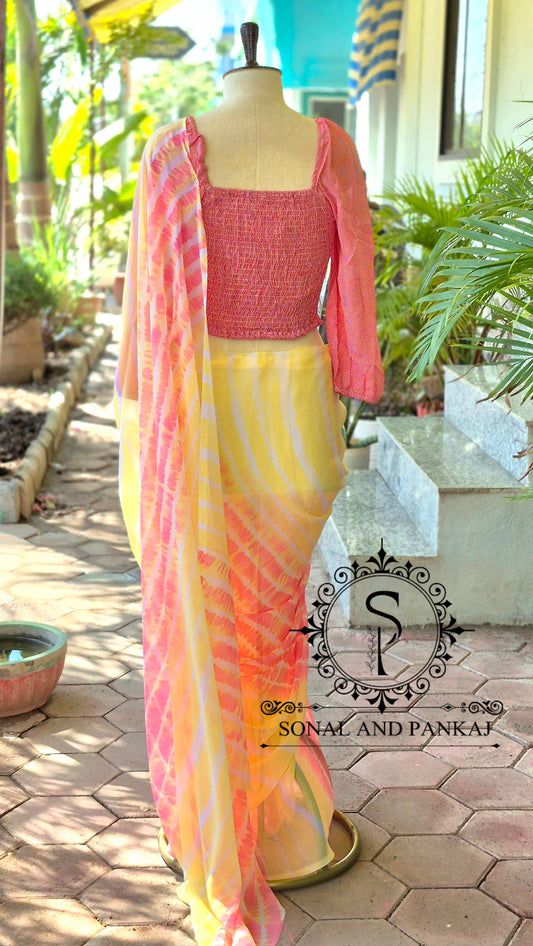Chemisier à paillettes dorées avec sari prêt à draper - SA00929