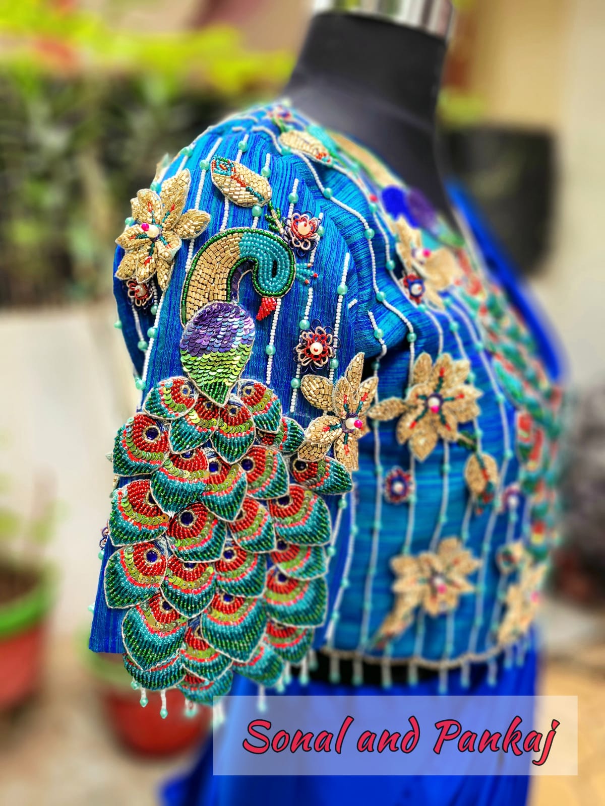Chemisier brodé à la main paon 3D - BL00728