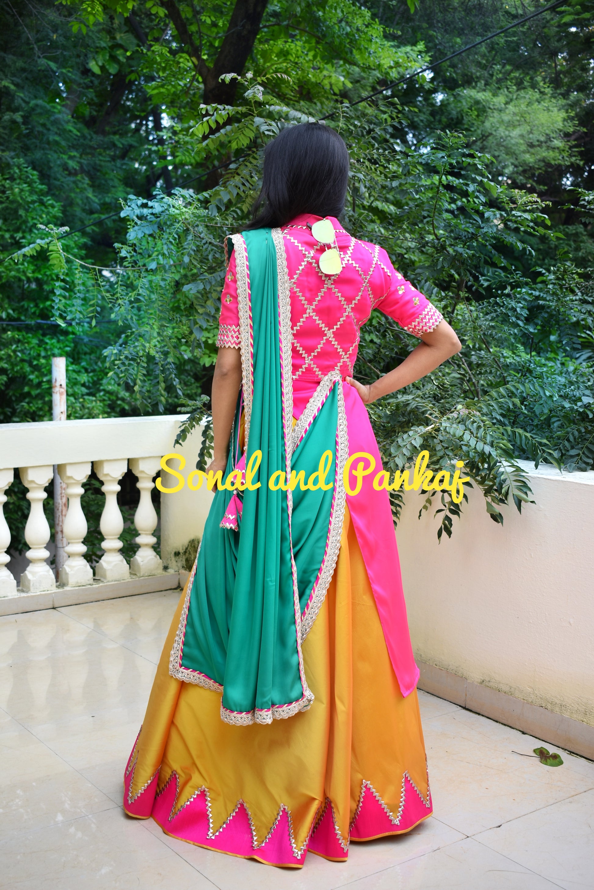 Tissus : Blouse en crêpe modal & lehenga en soie dupatta et tafeta.