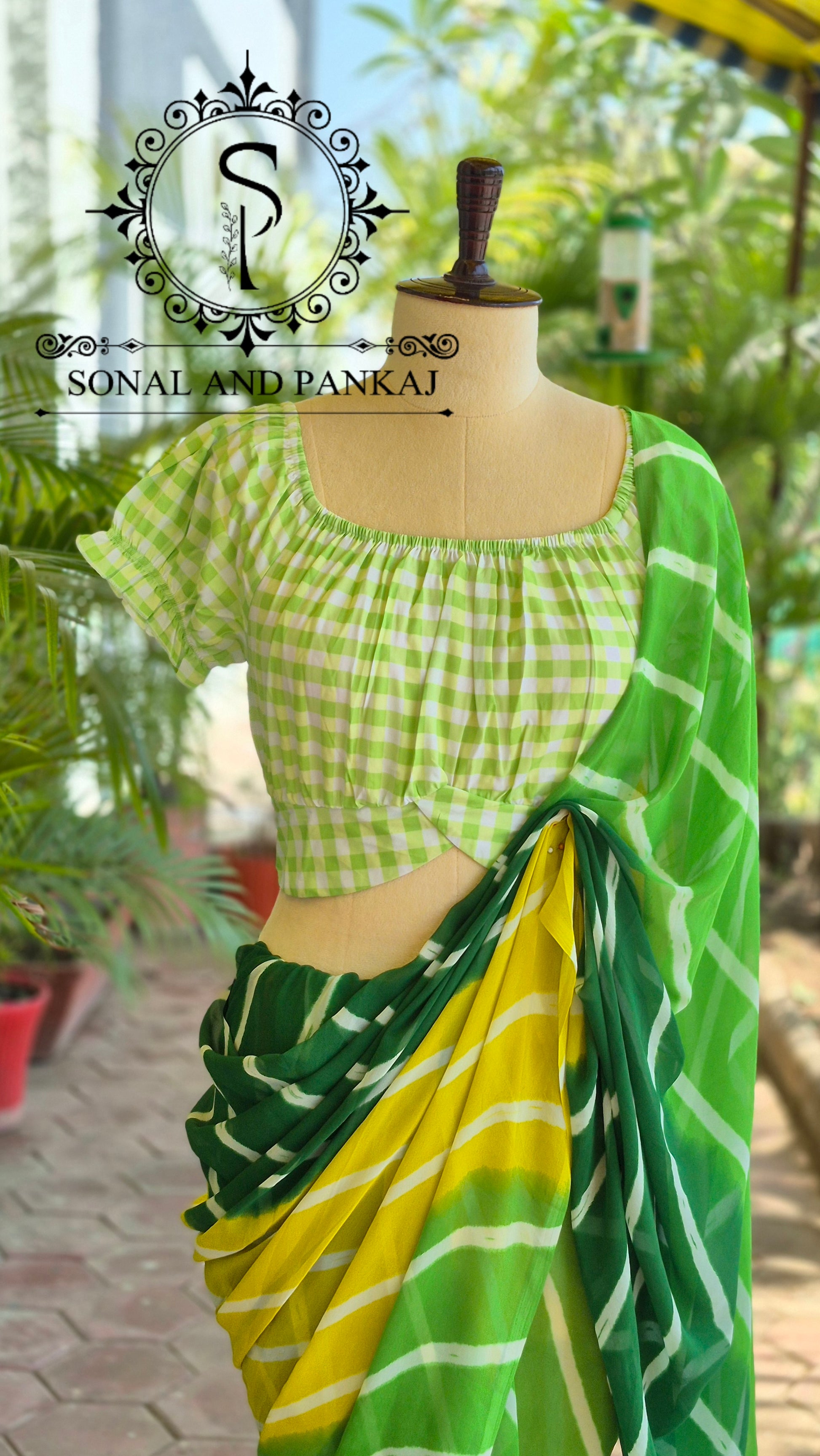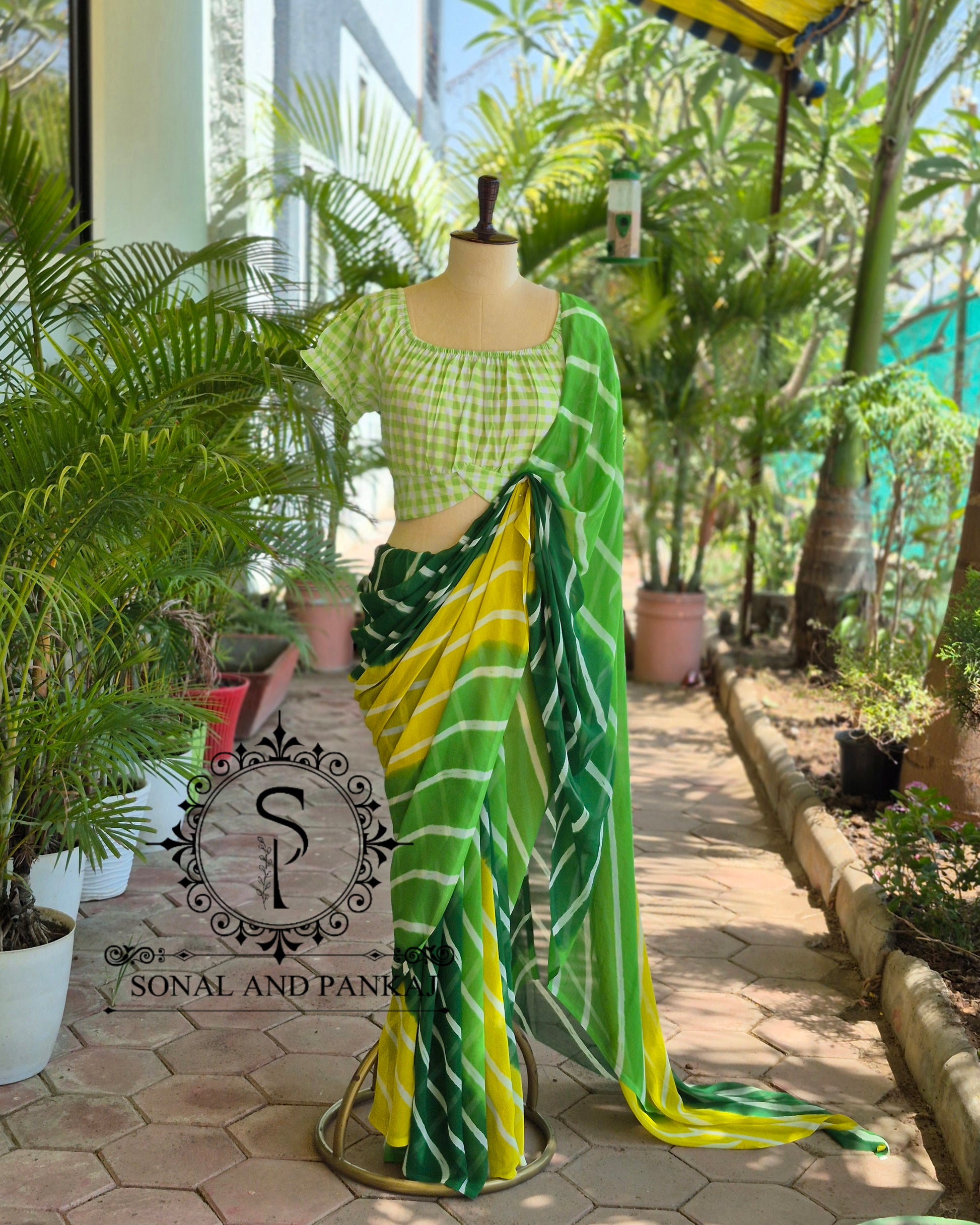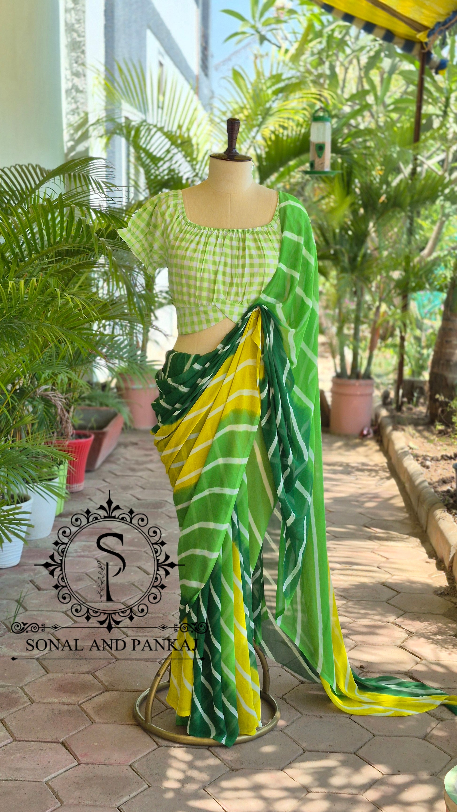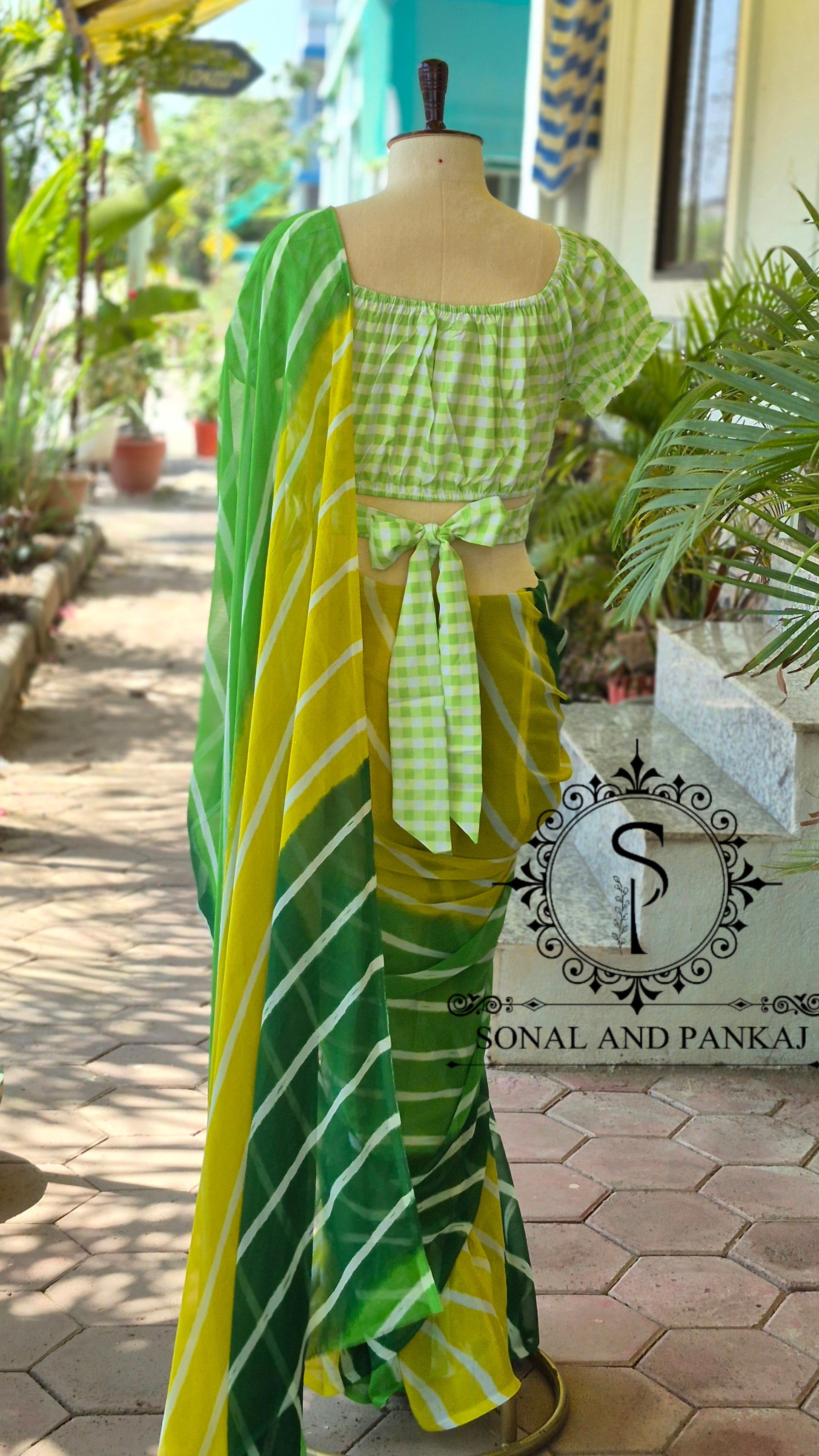 Sari prêt à draper sans Hassel avec un chemisier à paillettes dorées cousues.