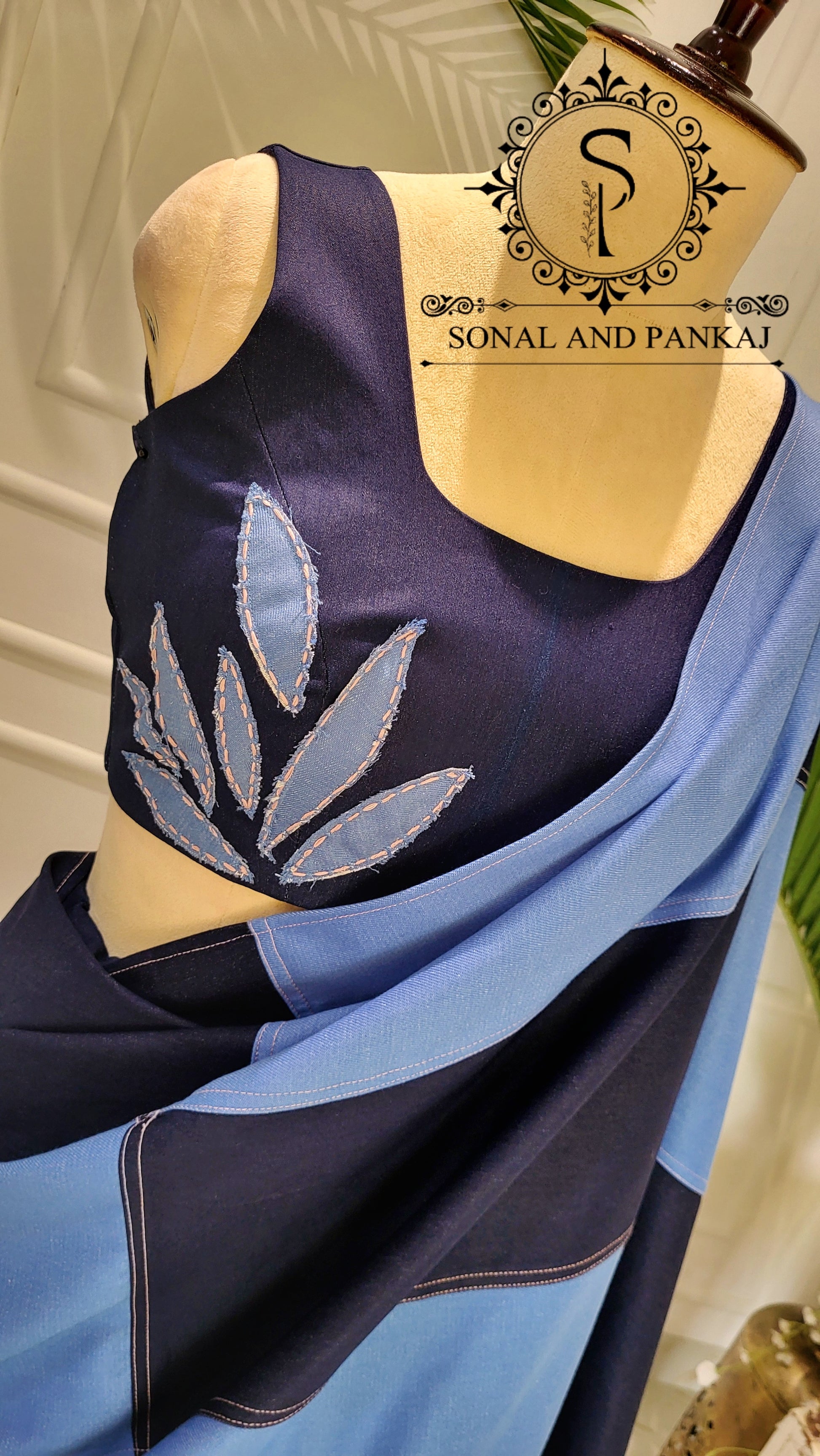Blouse de style veste brodée à la main Paon 3D avec sari à volants superposés prêt-à-porter.