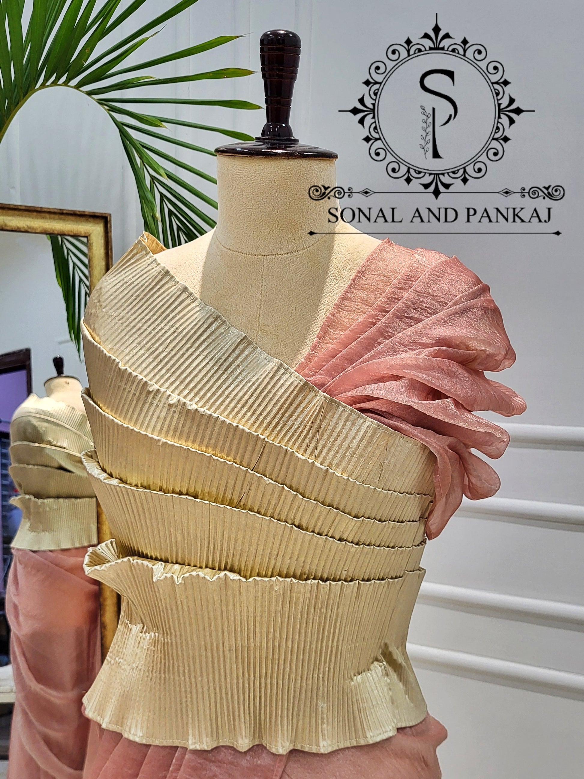 Matières : Blouse en coton Chanderi & sari en crêpe américain.