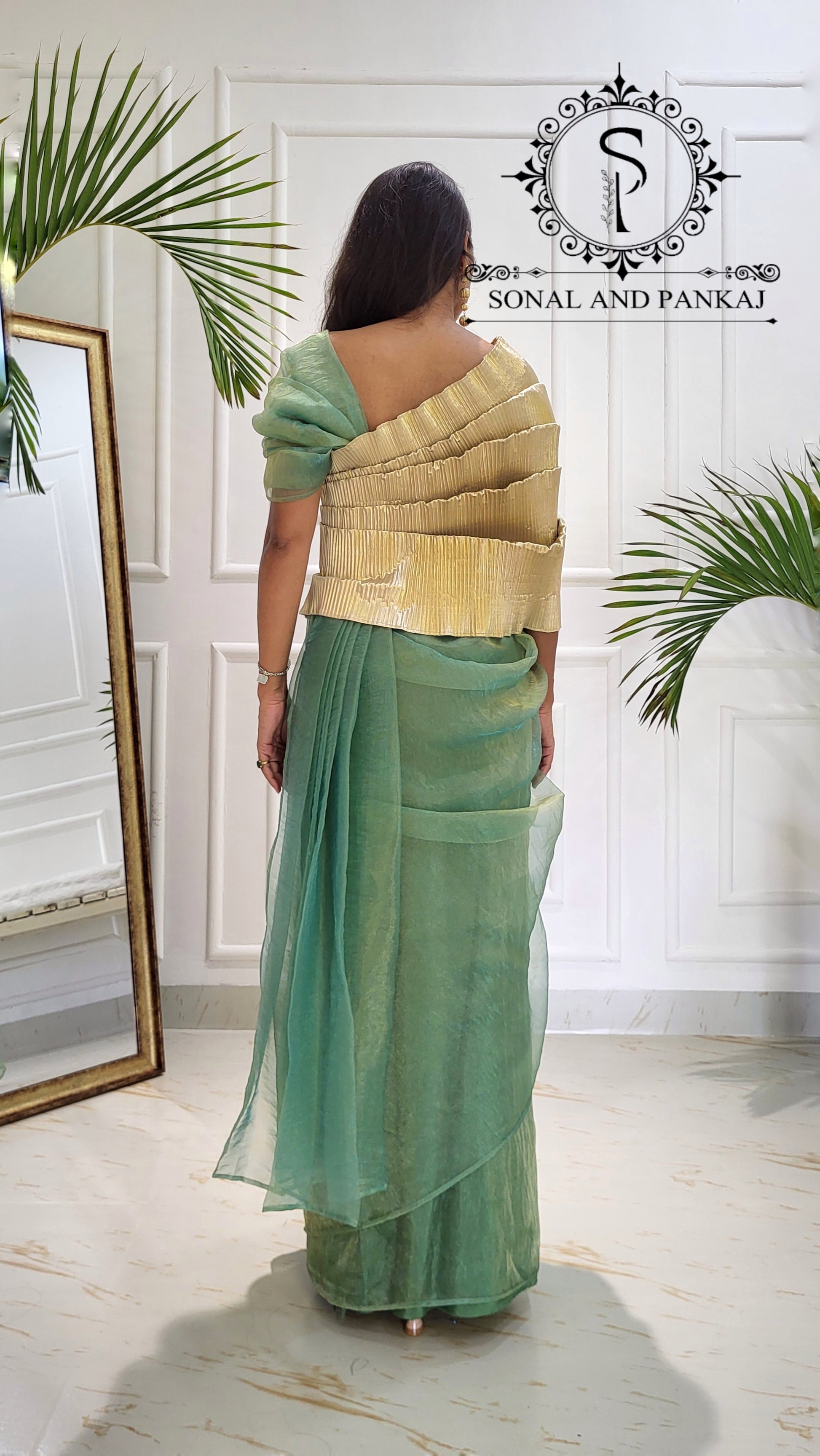 Matières : Blouse en coton Chanderi & sari en crêpe américain.