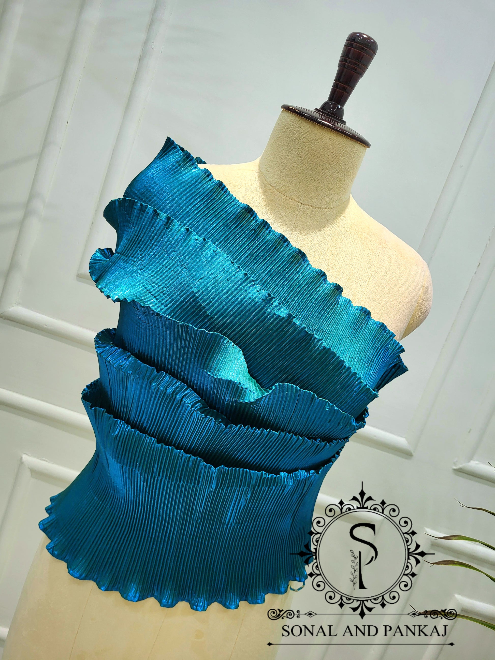 Matières : Blouse en coton Chanderi & sari en crêpe américain.