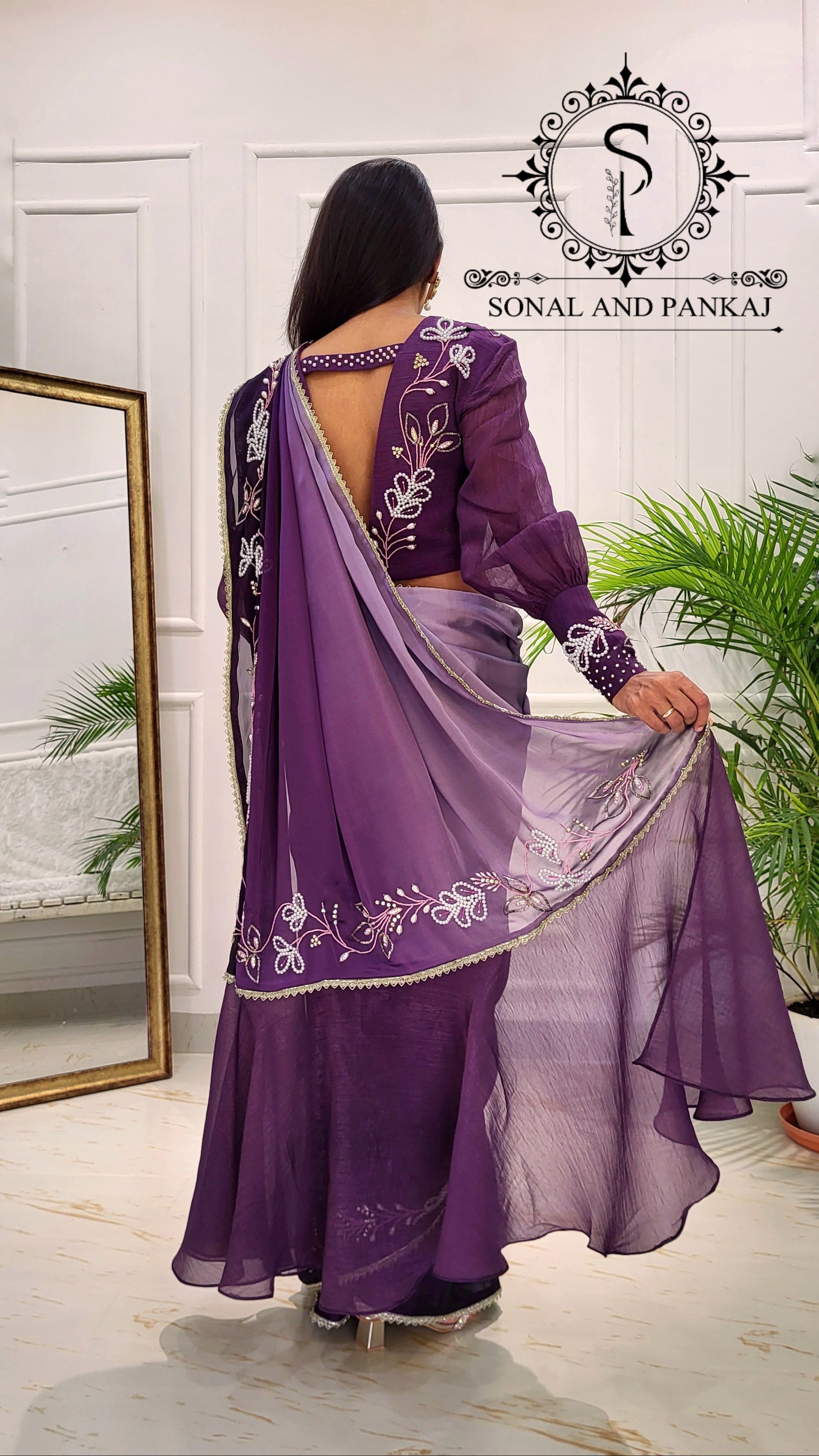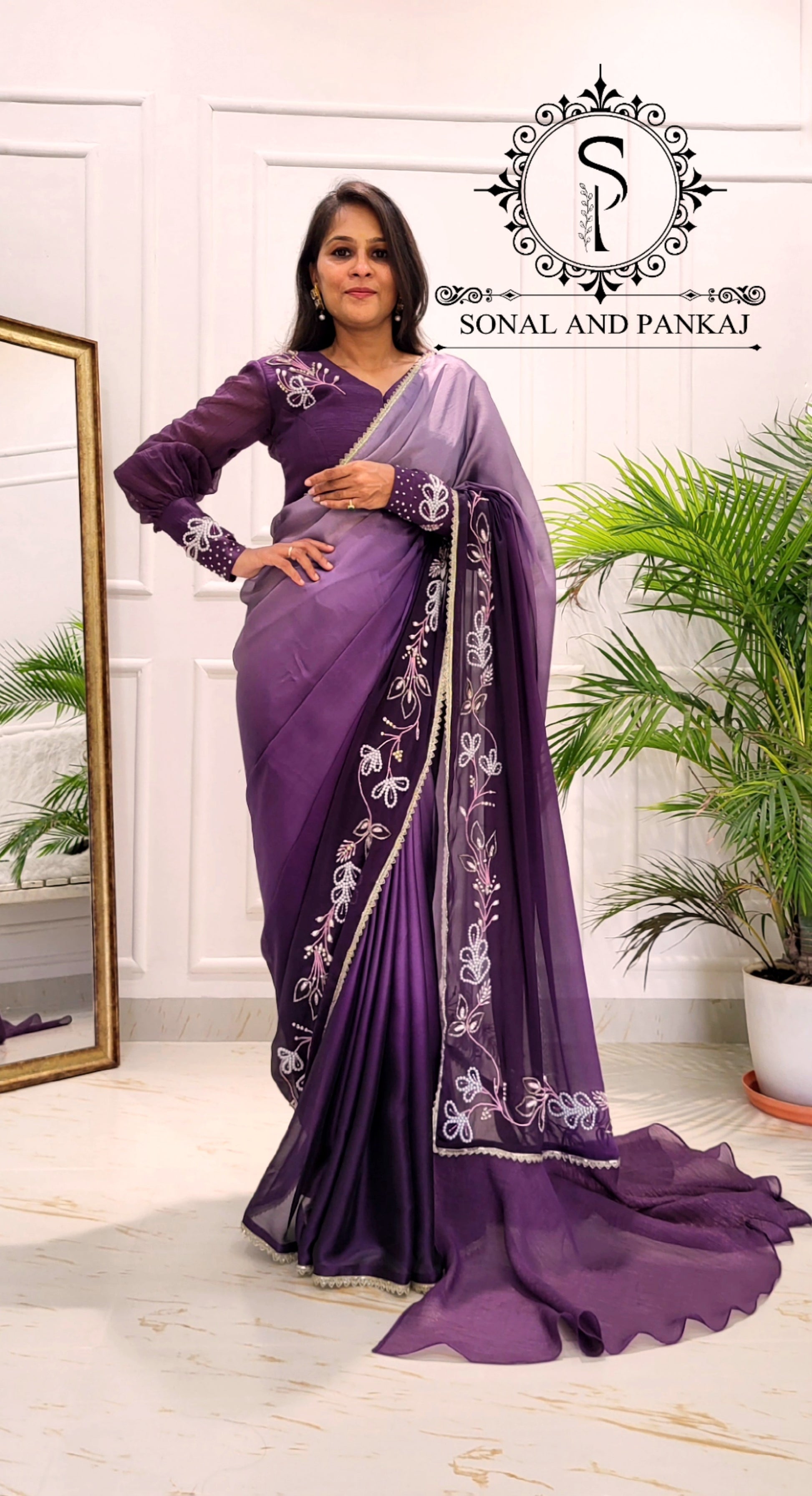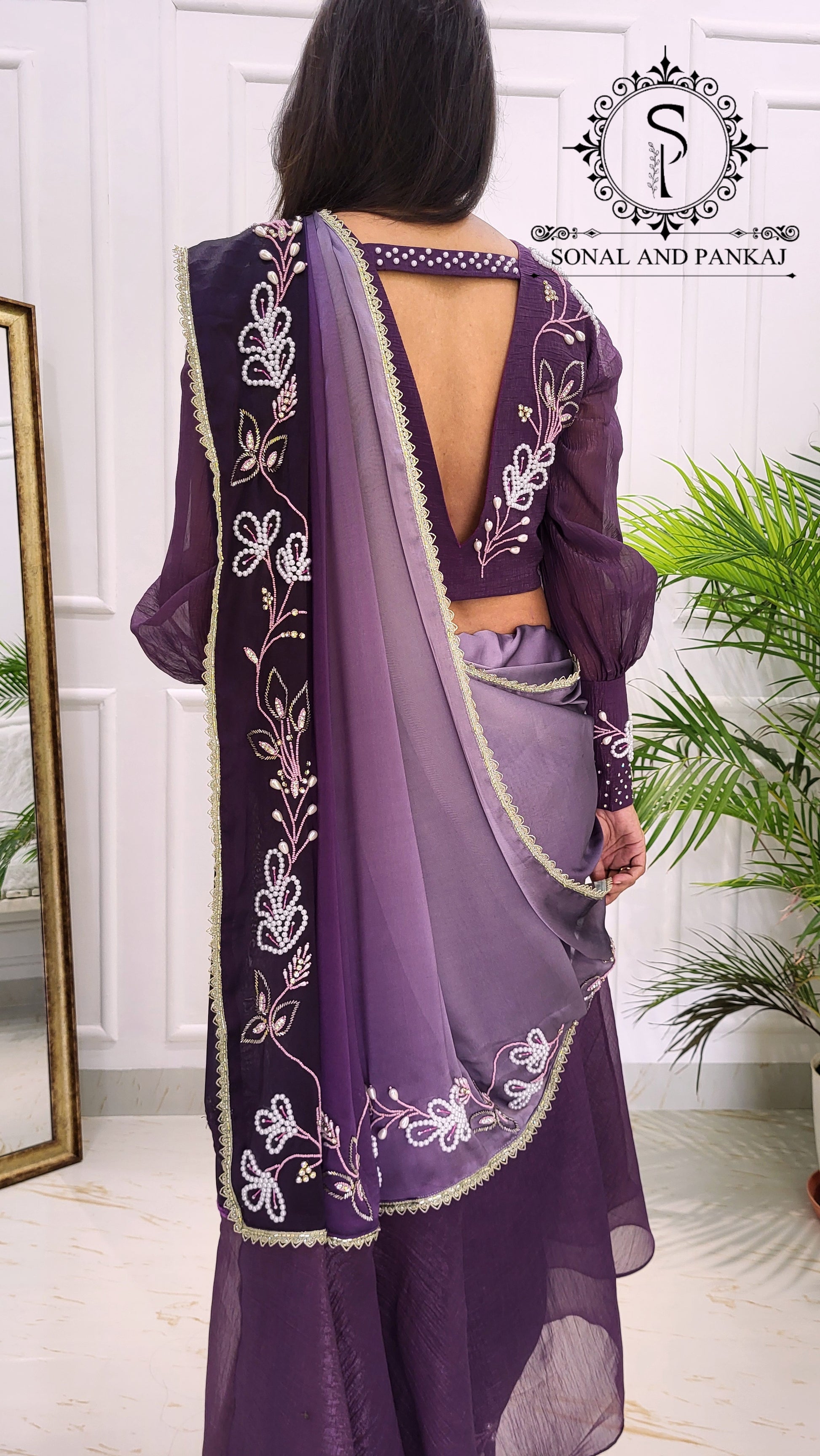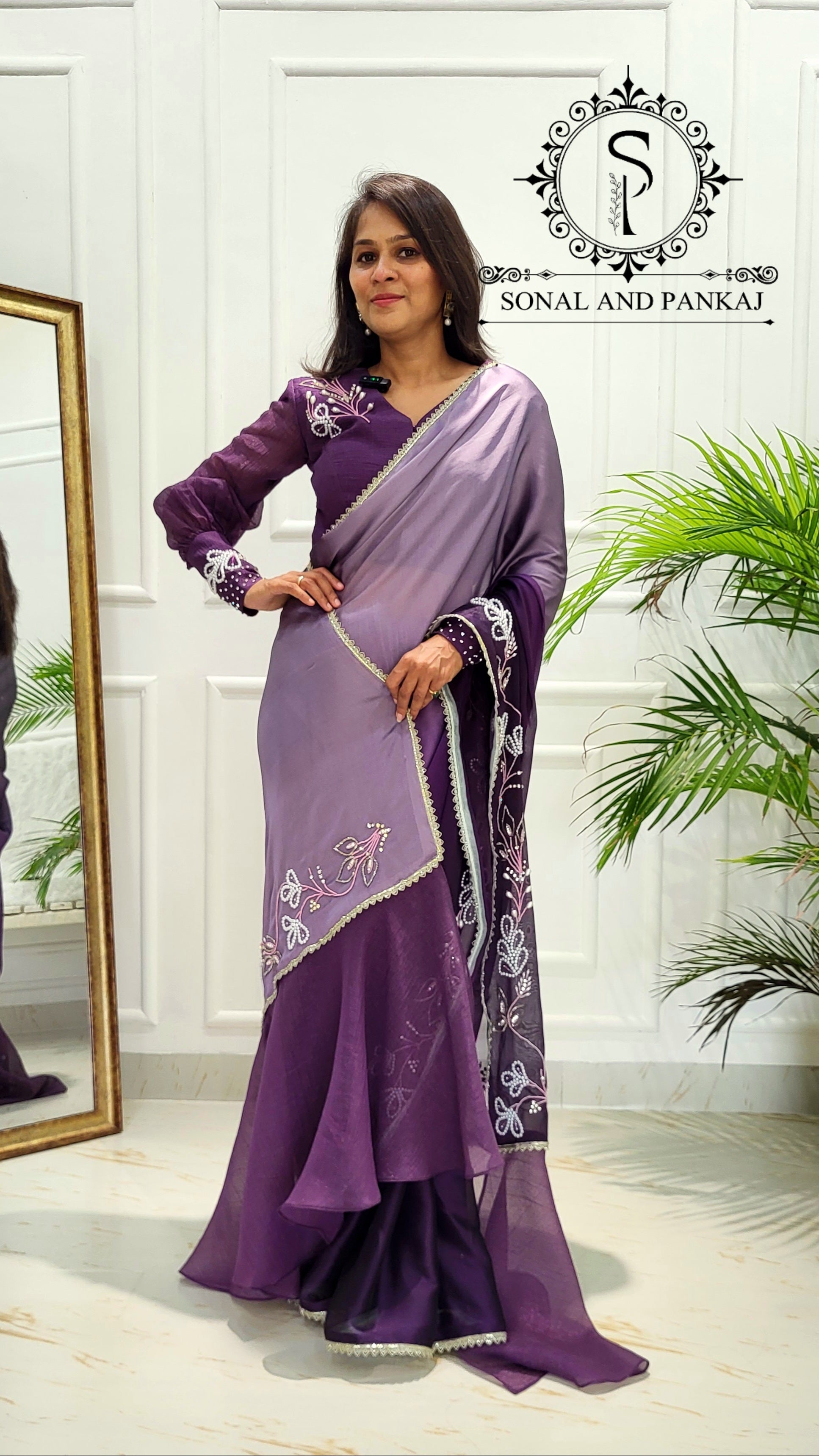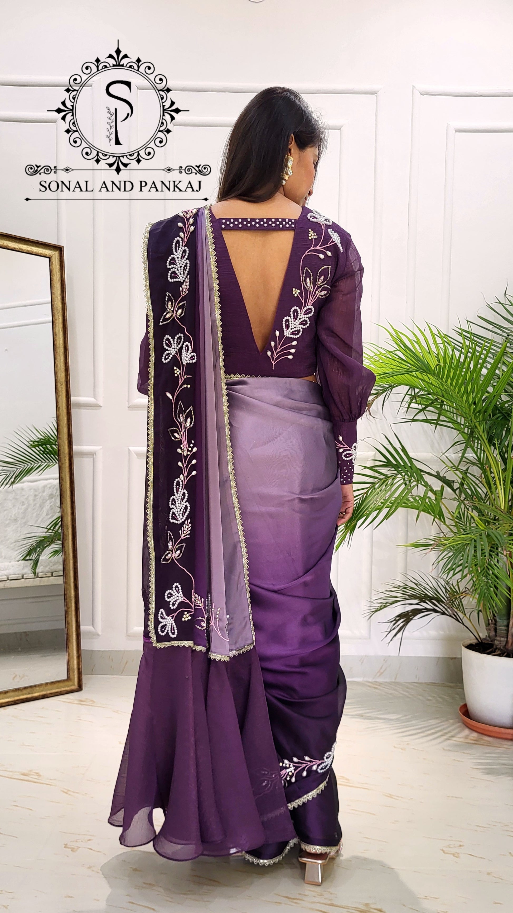 Designer Deep Purple Hand Embroidered Blouse & Ombre Saree - SA01523