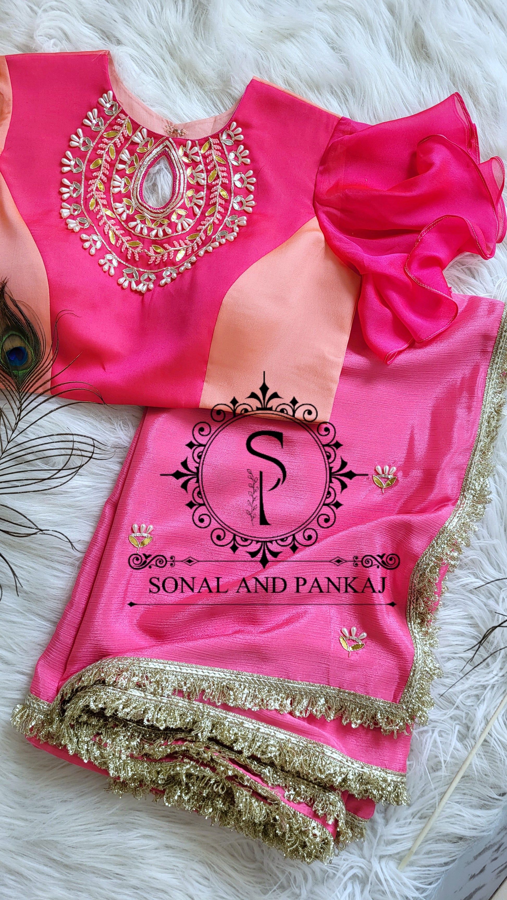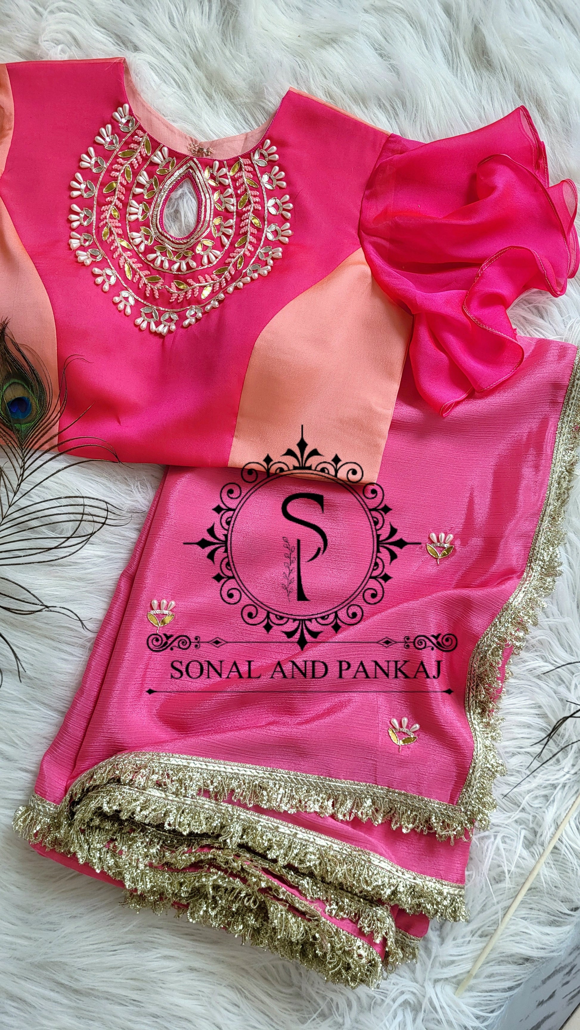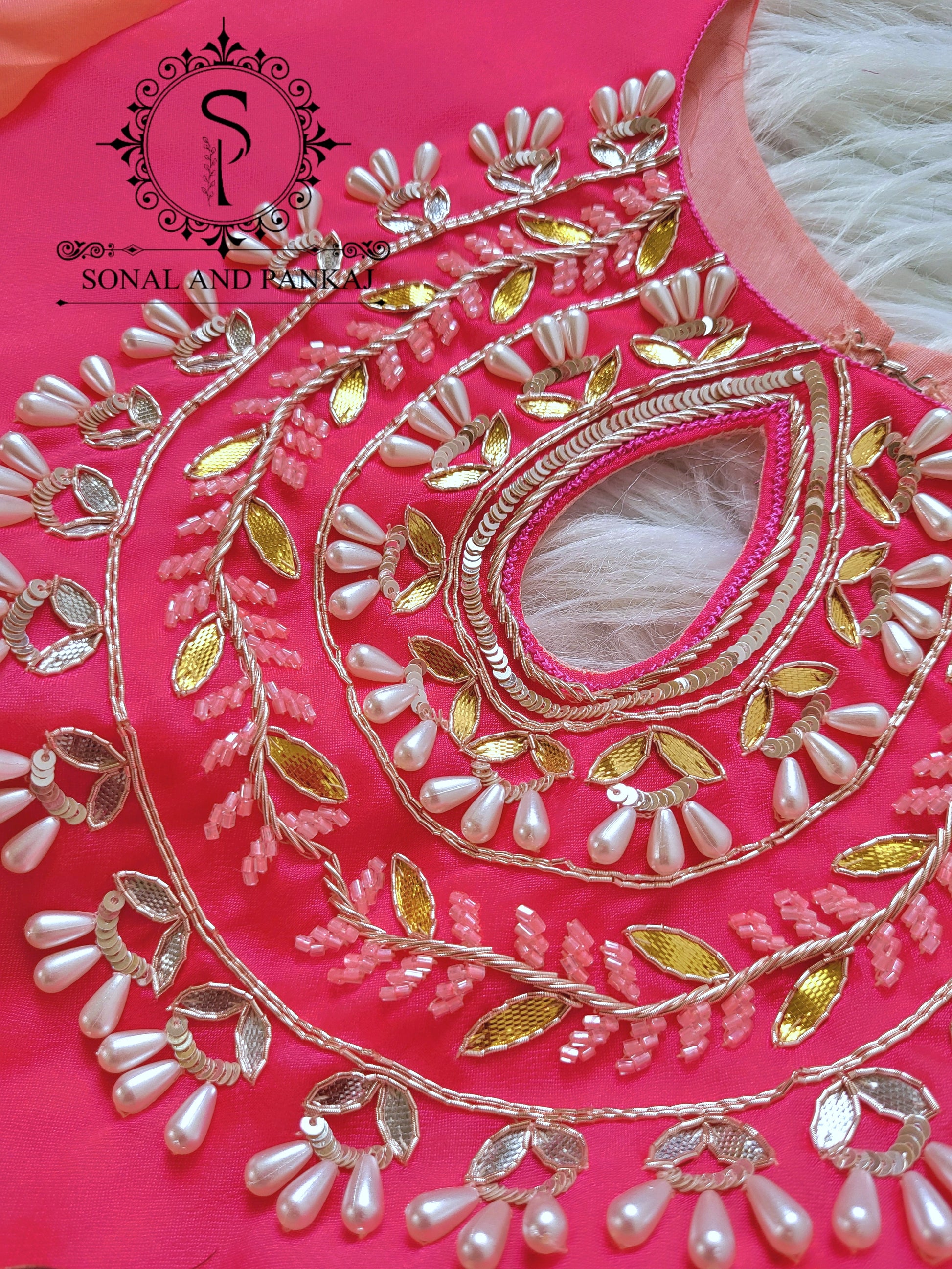 Designer Hand Embroidered Blouse With Pink Saree - SA01506