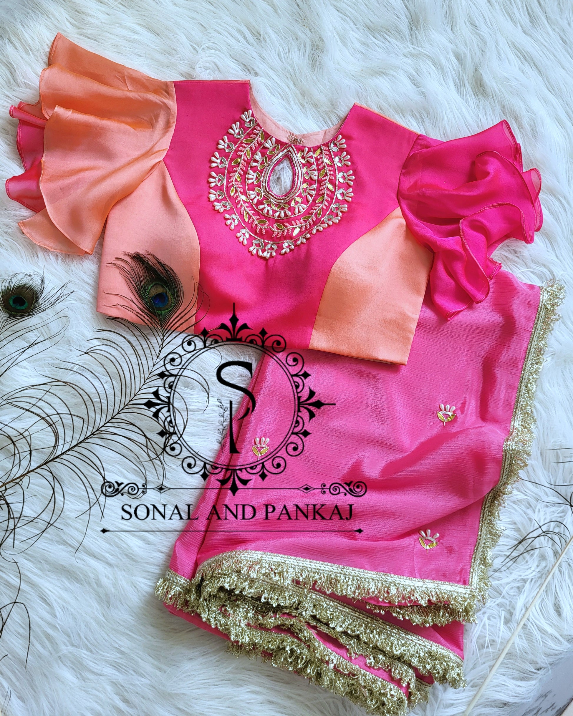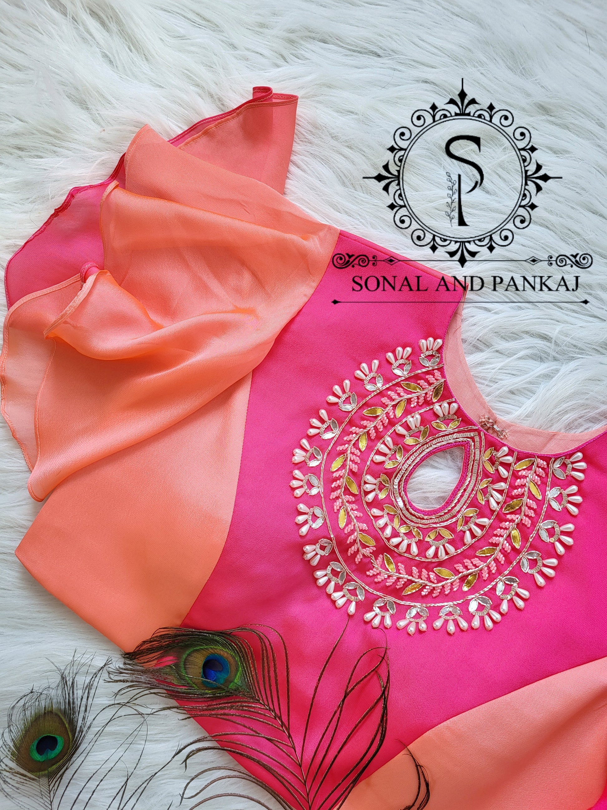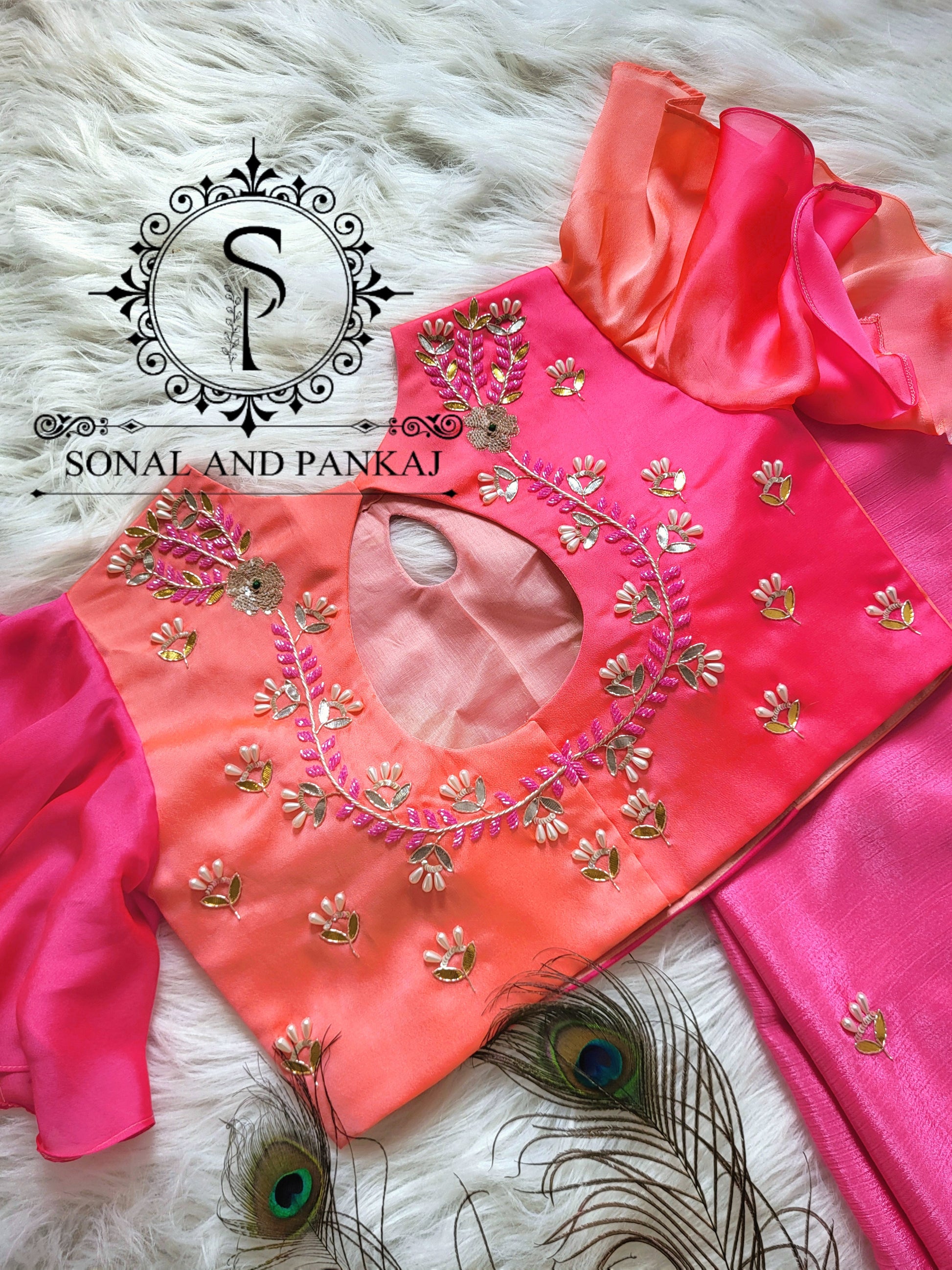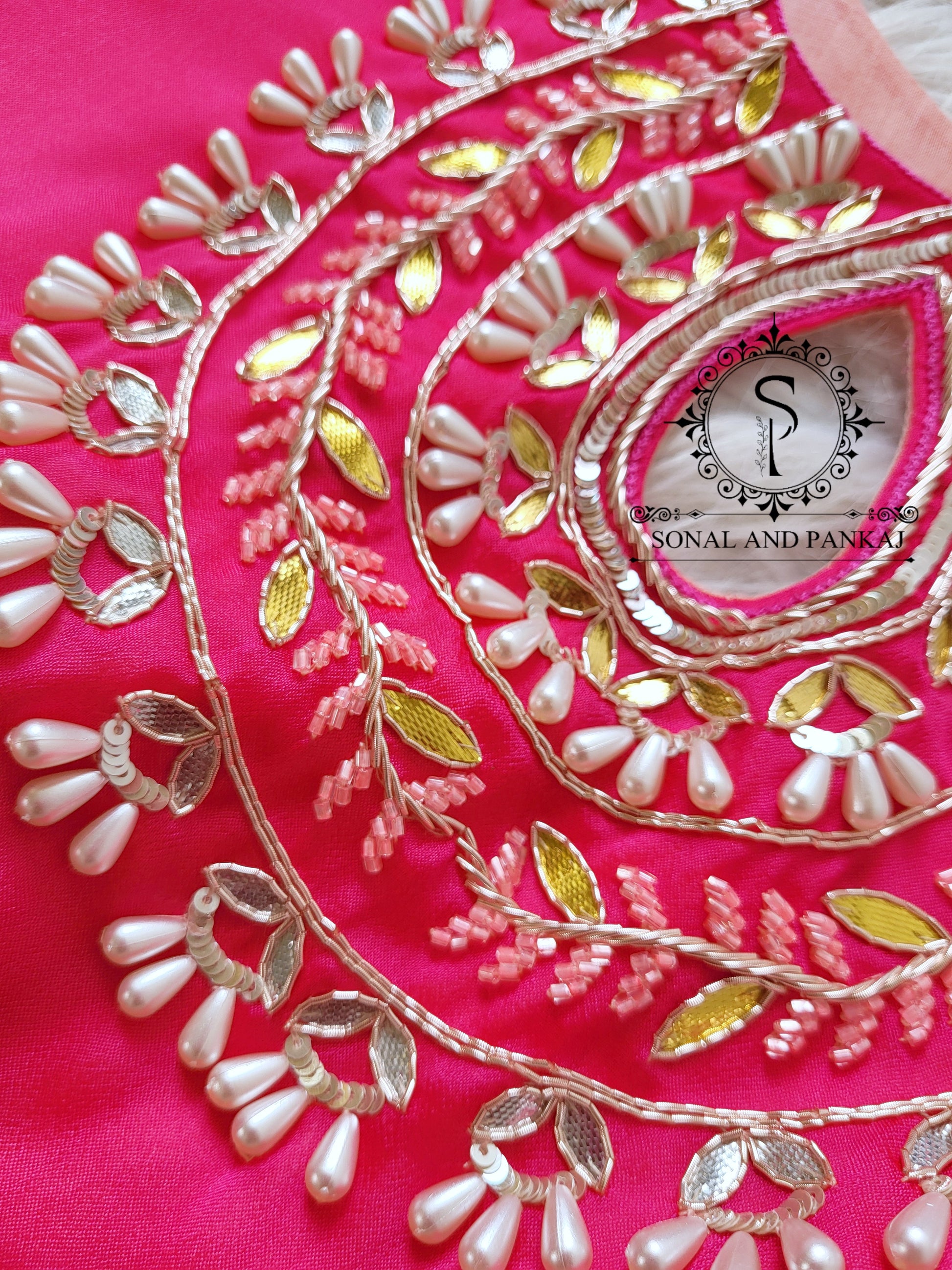 WORK DETAILS: Gotta patti, pearl & zardozi hand embroidered.