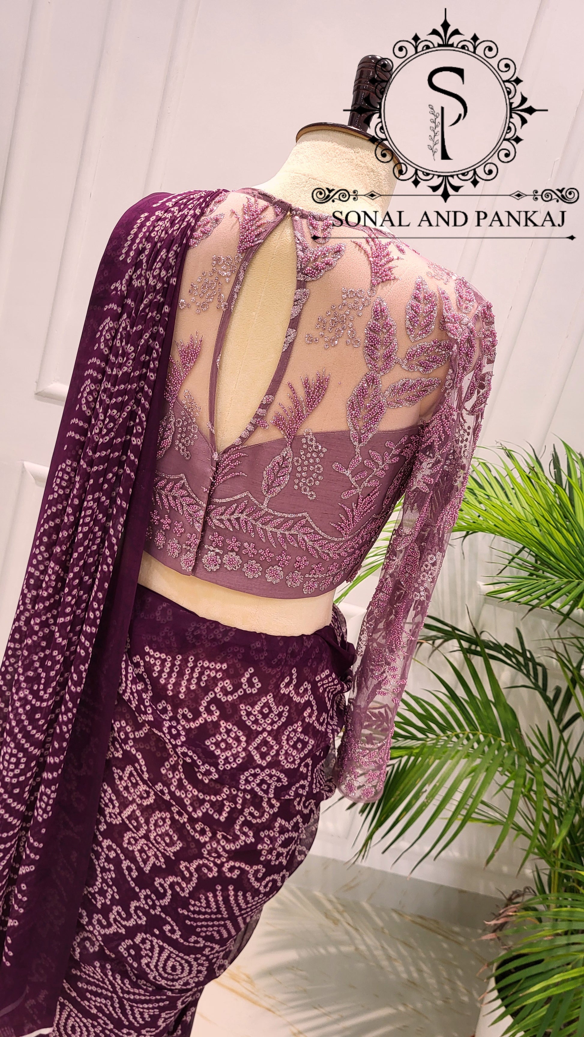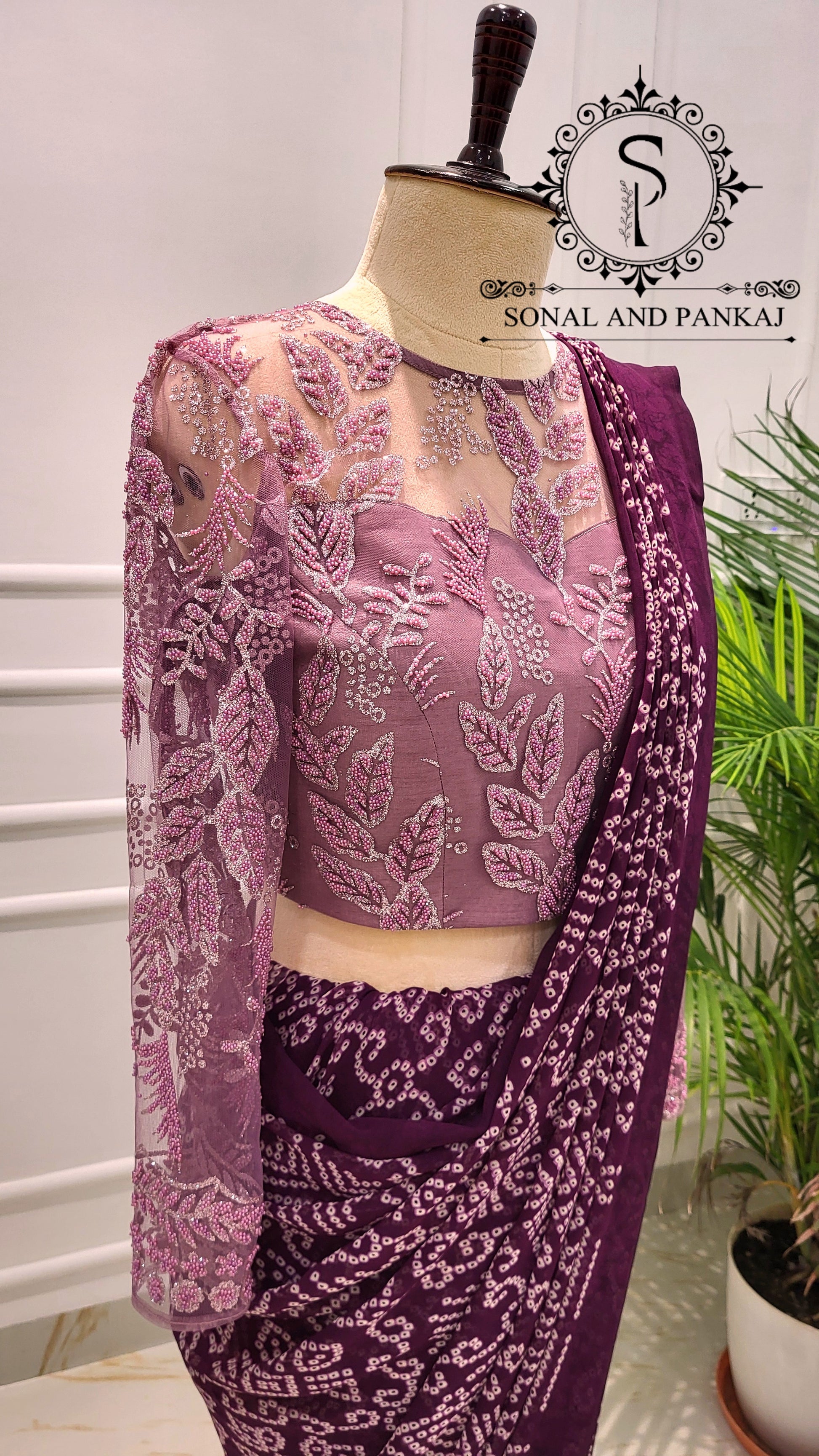 Sari prêt à draper sans Hassel avec un chemisier à paillettes dorées cousues.