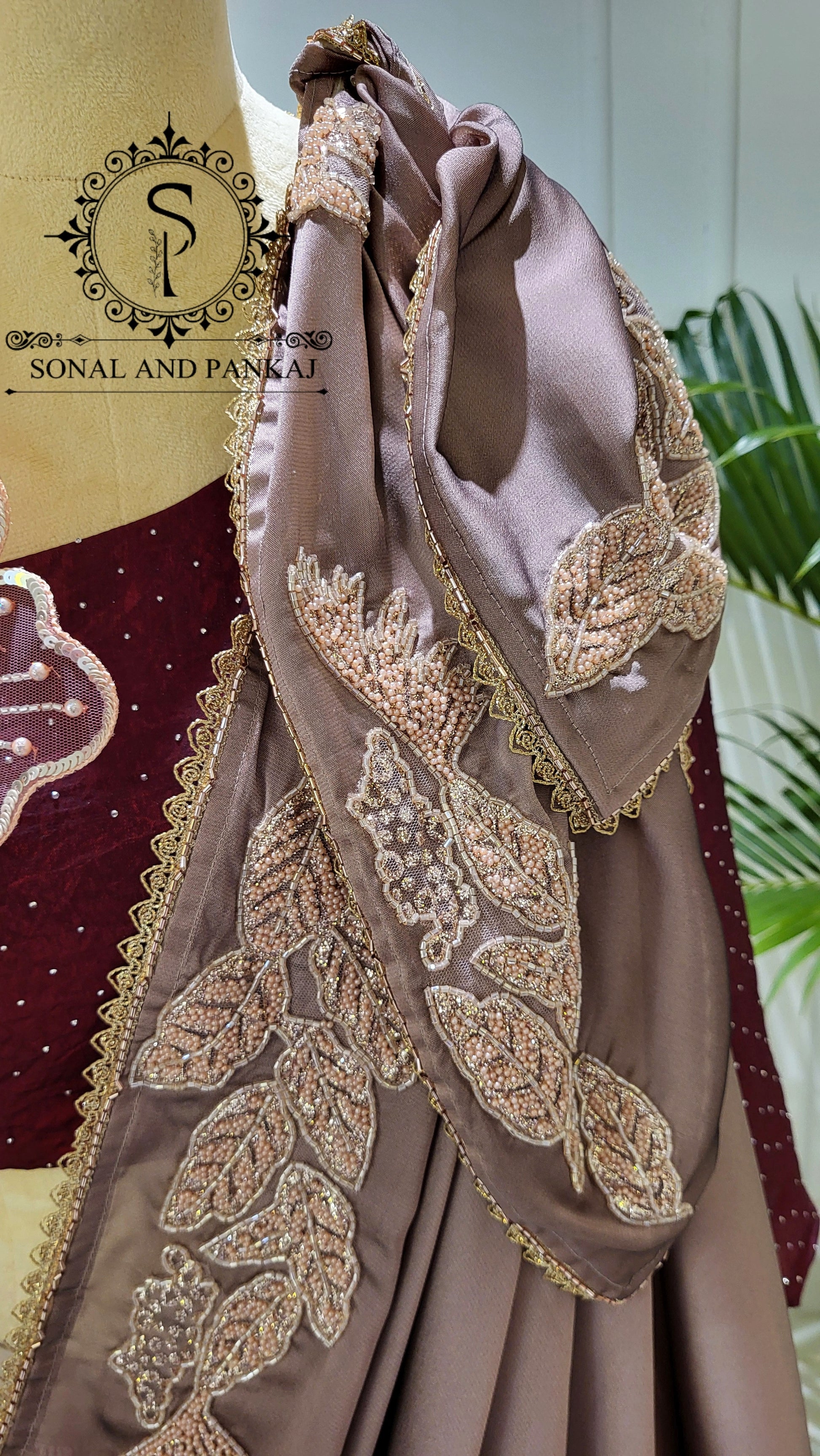 Blouse de style veste brodée à la main Paon 3D avec sari à volants superposés prêt-à-porter.