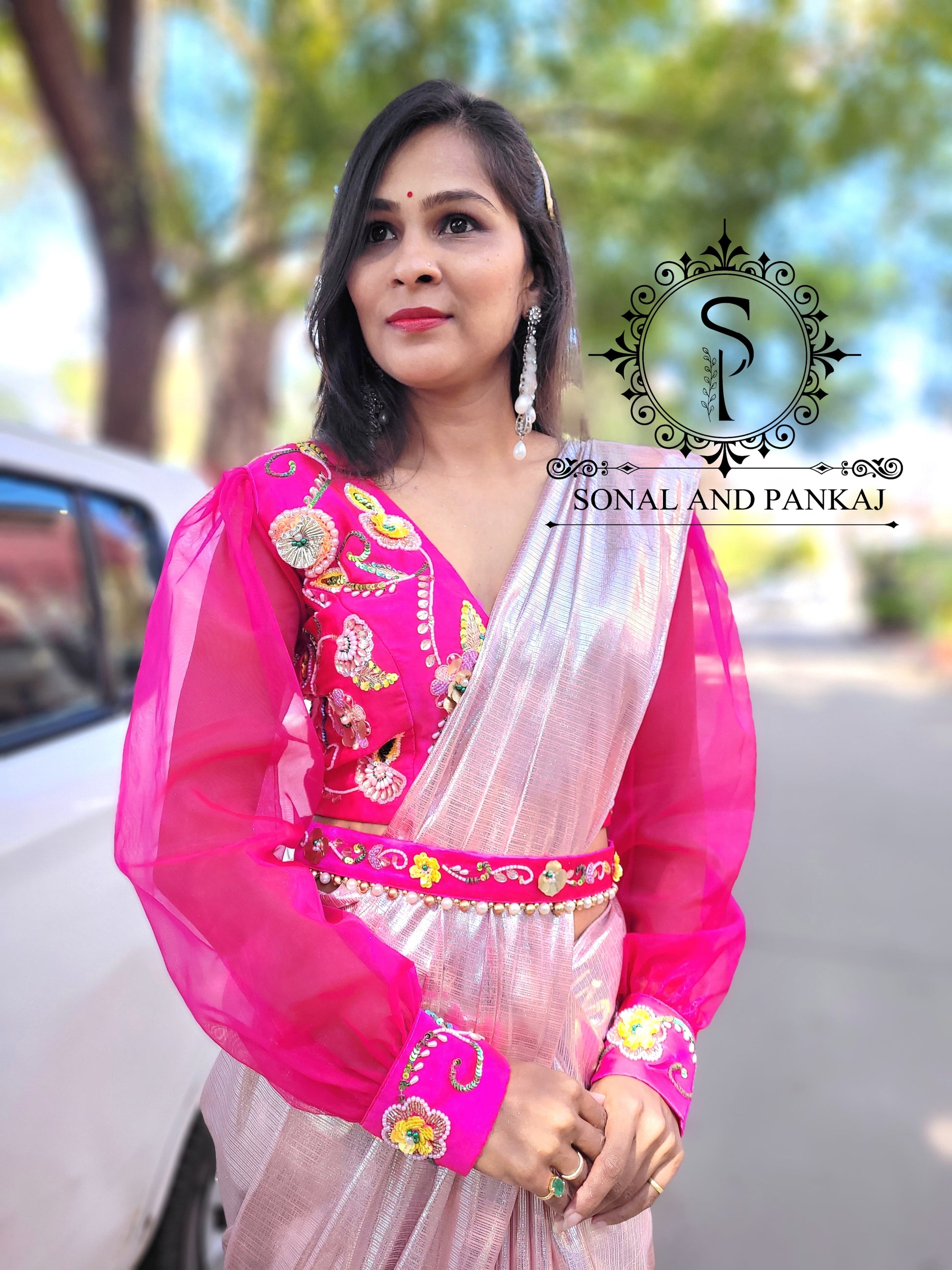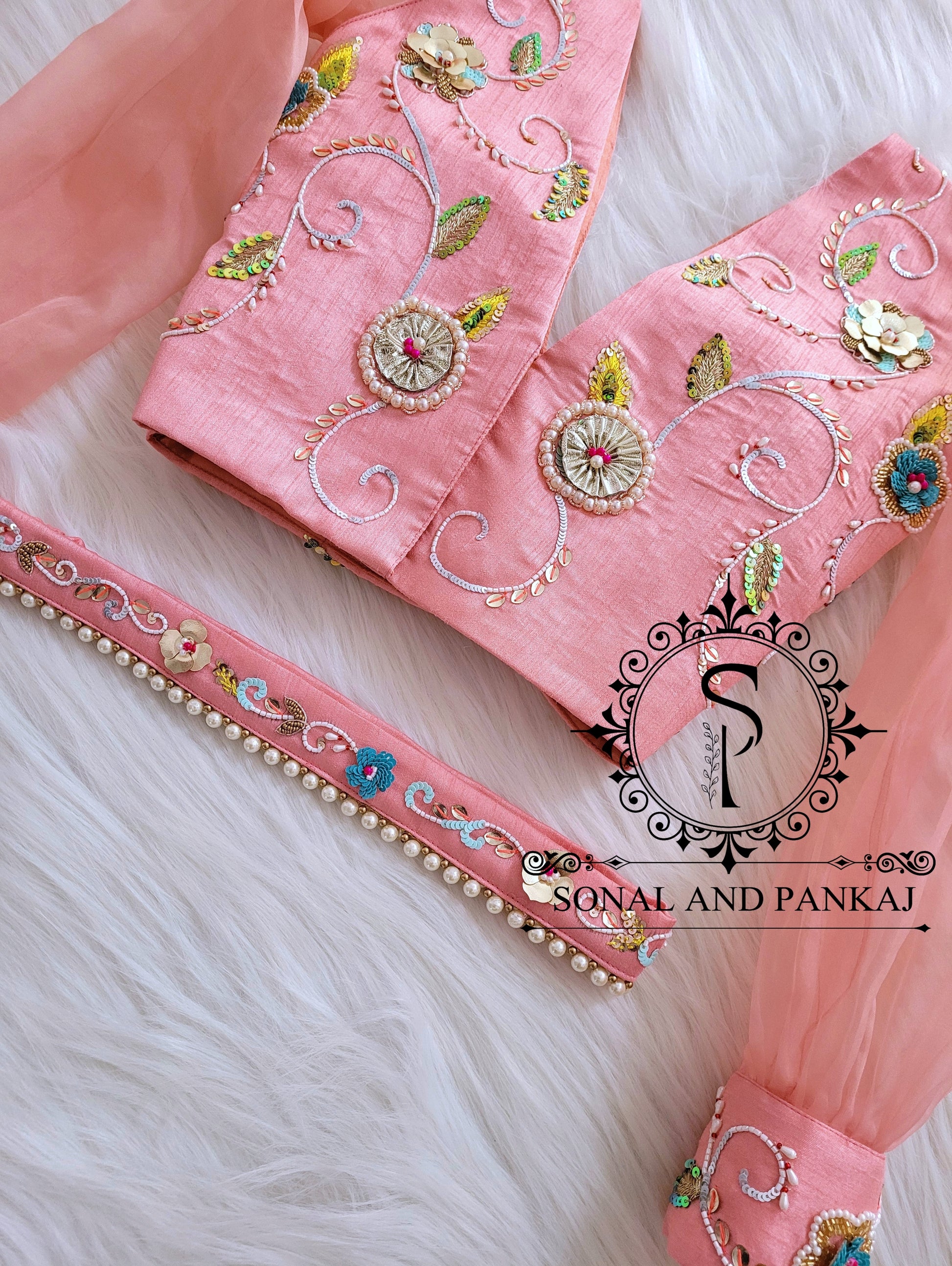 Rose Bandhani Gotta Patti Blouse brodée à la main - BL01044