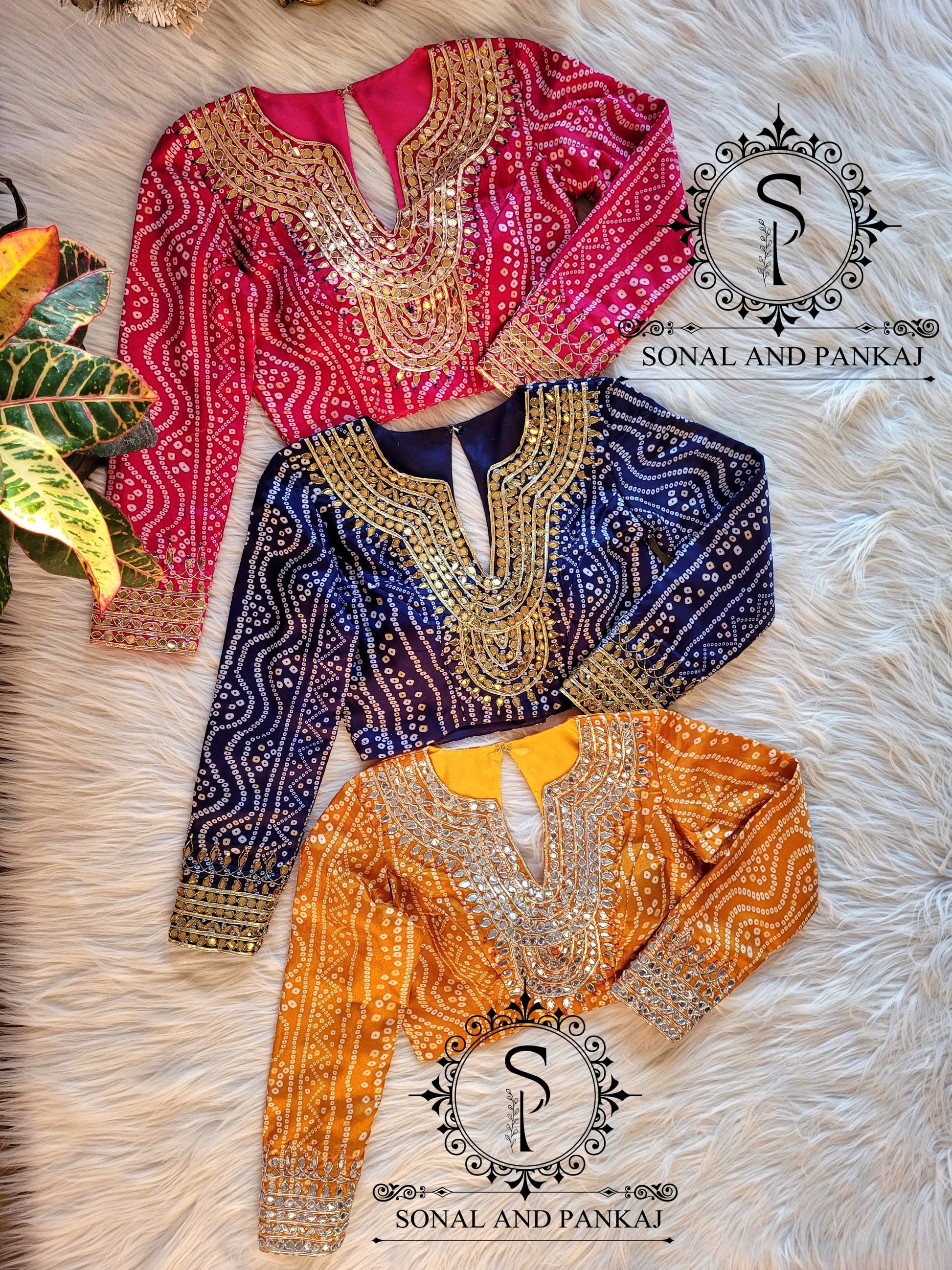 Imprimé Bandhani gotta patti chemisier brodé à la main.