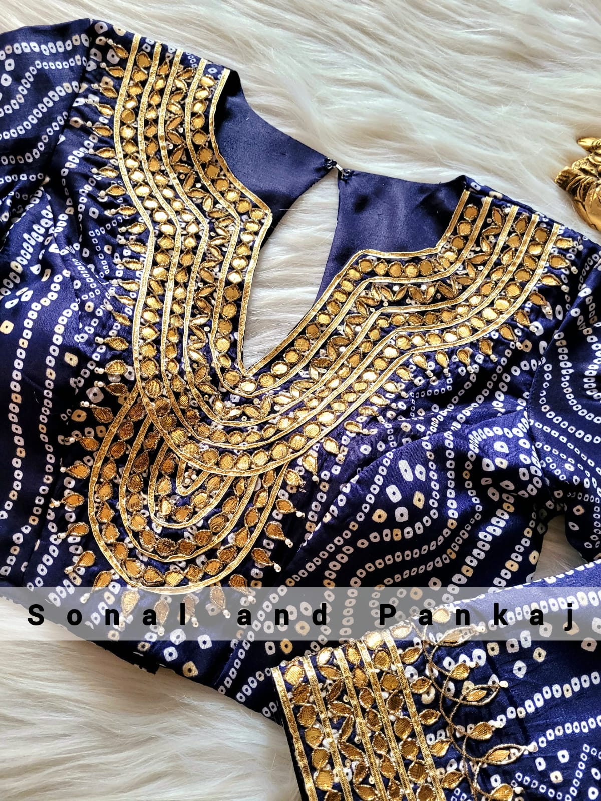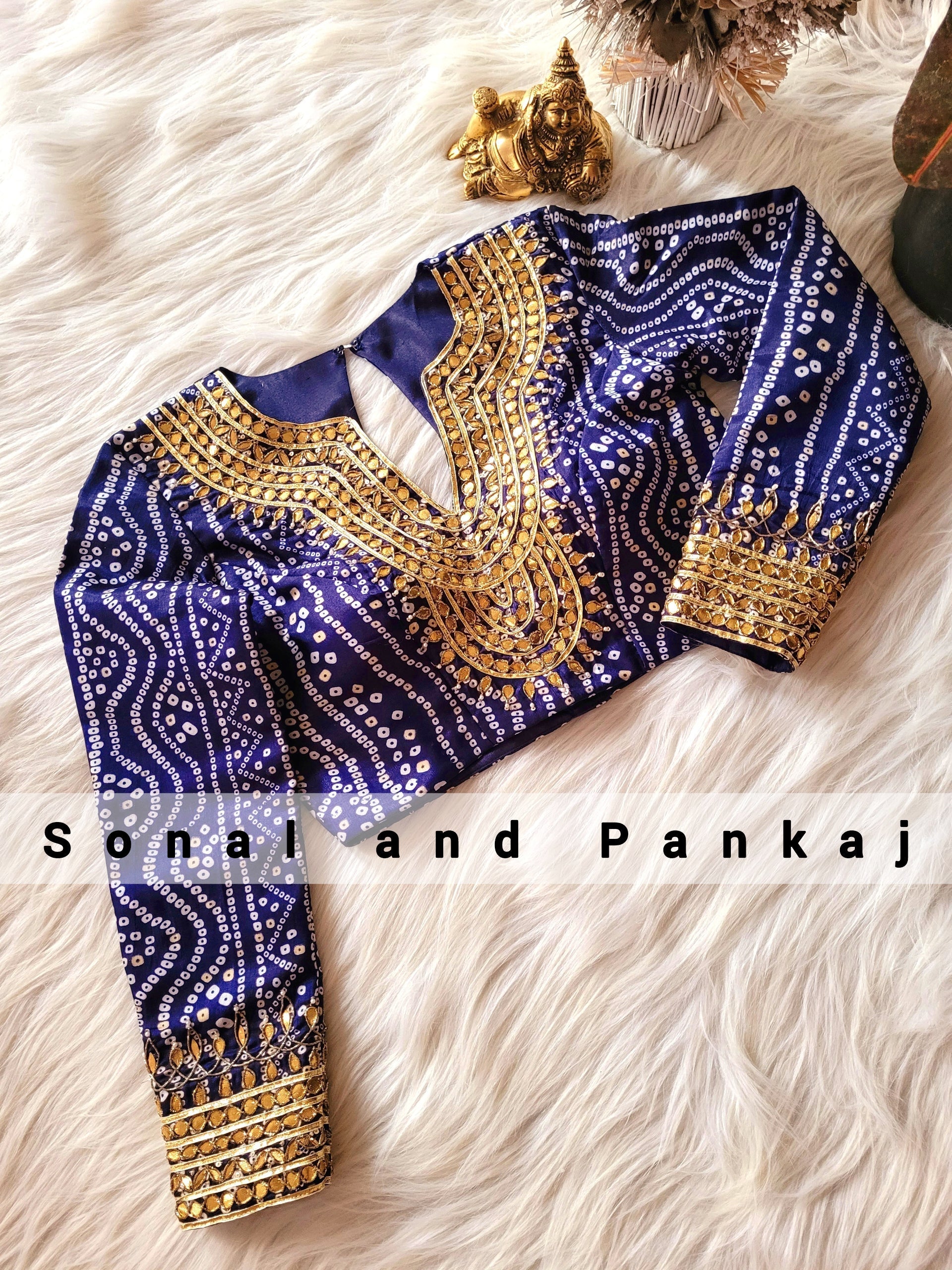 Blouse brodée à la main Bandhani Gotta Patti bleu marine - BL01045