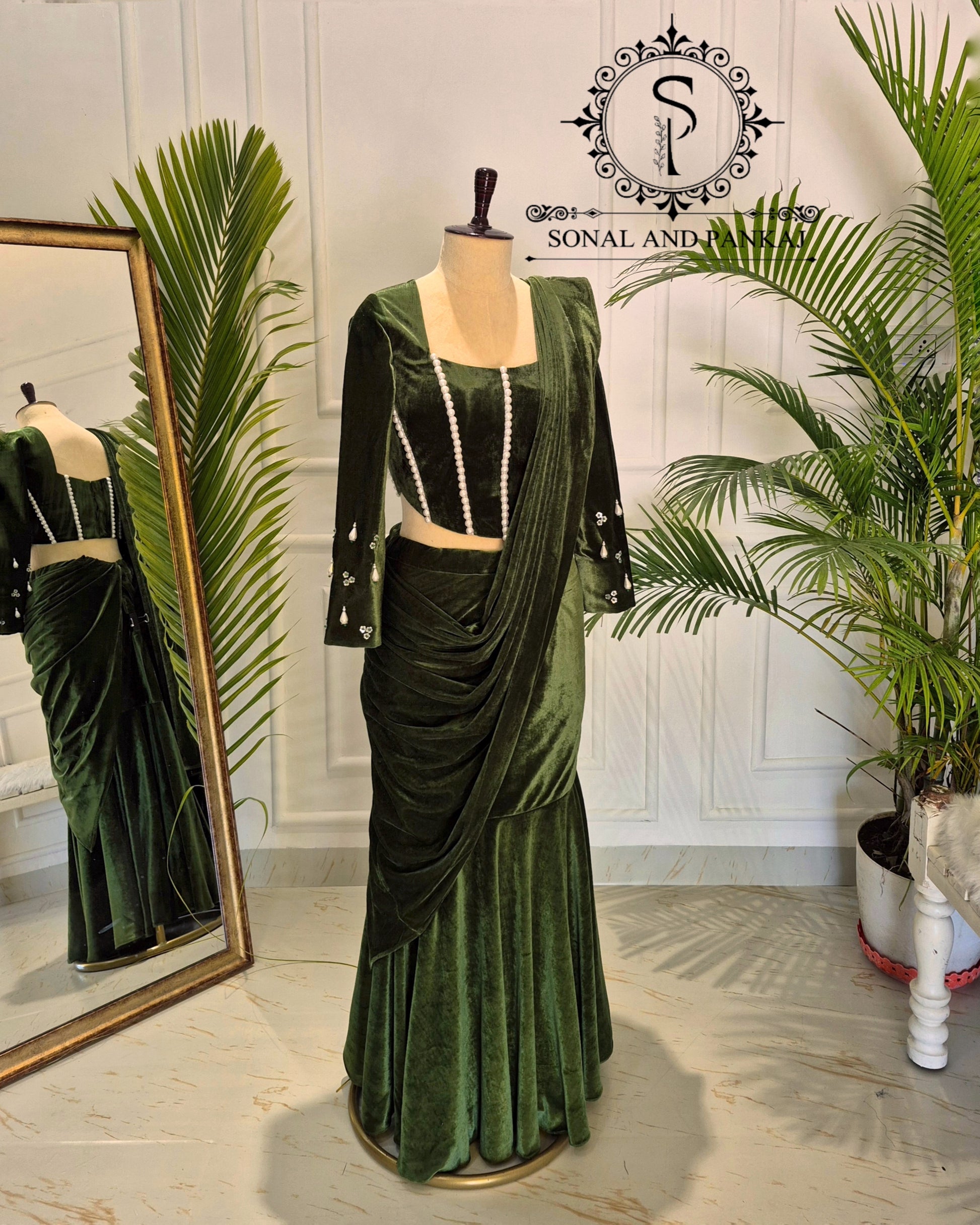 Tissus : sari georgette 60 grammes et chemisier en velours.