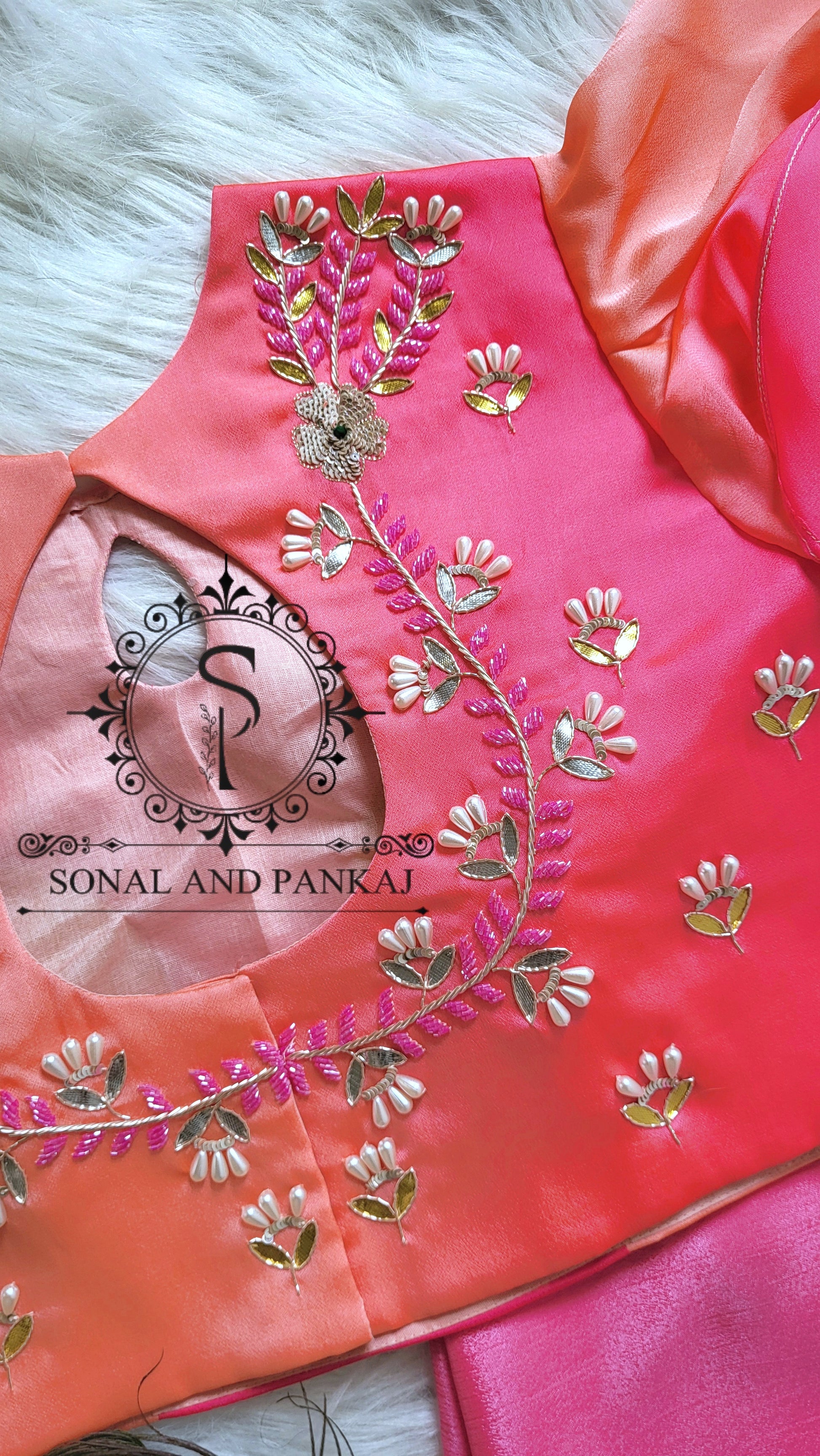 Rose Bandhani Gotta Patti Blouse brodée à la main - BL01044