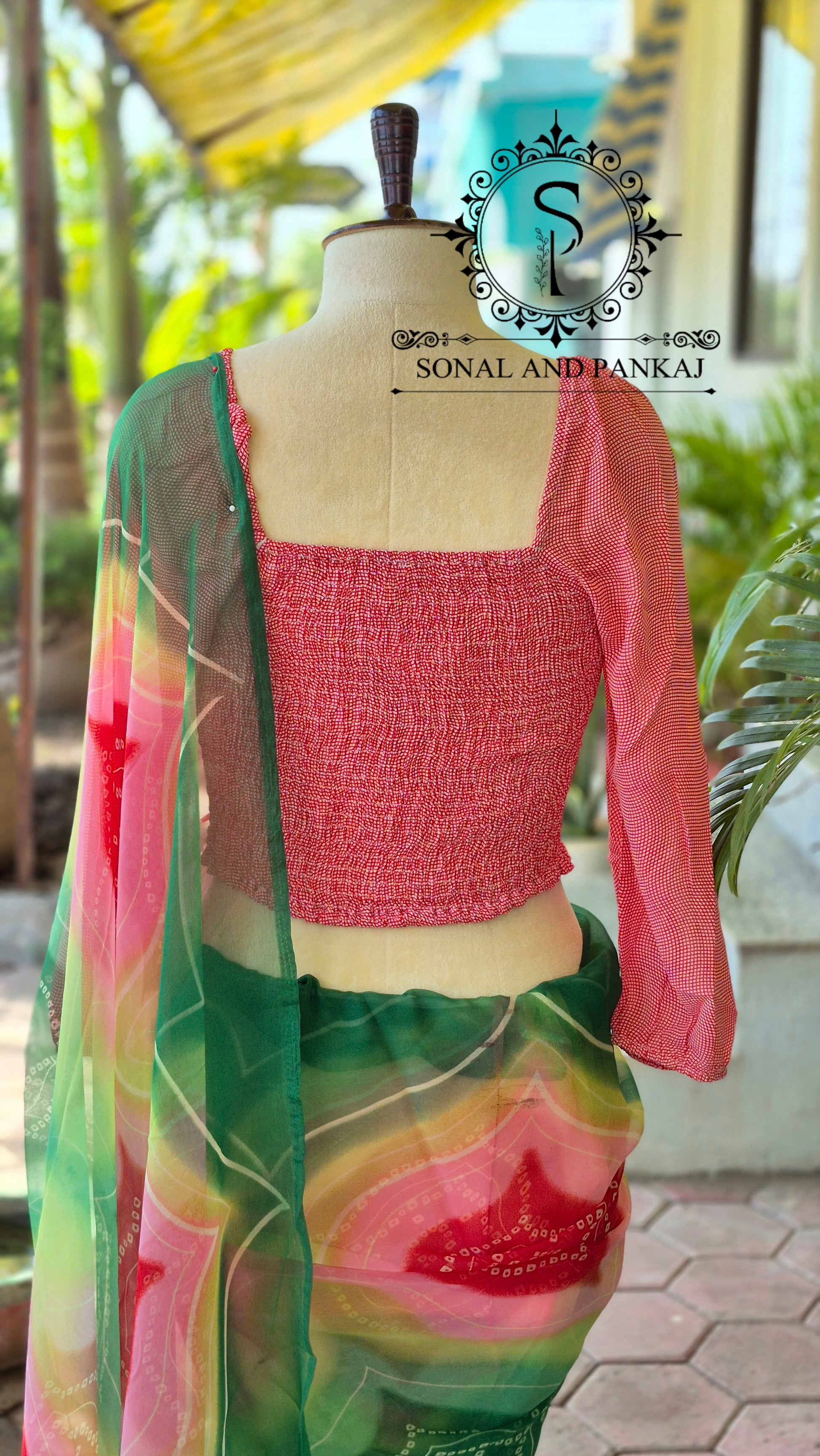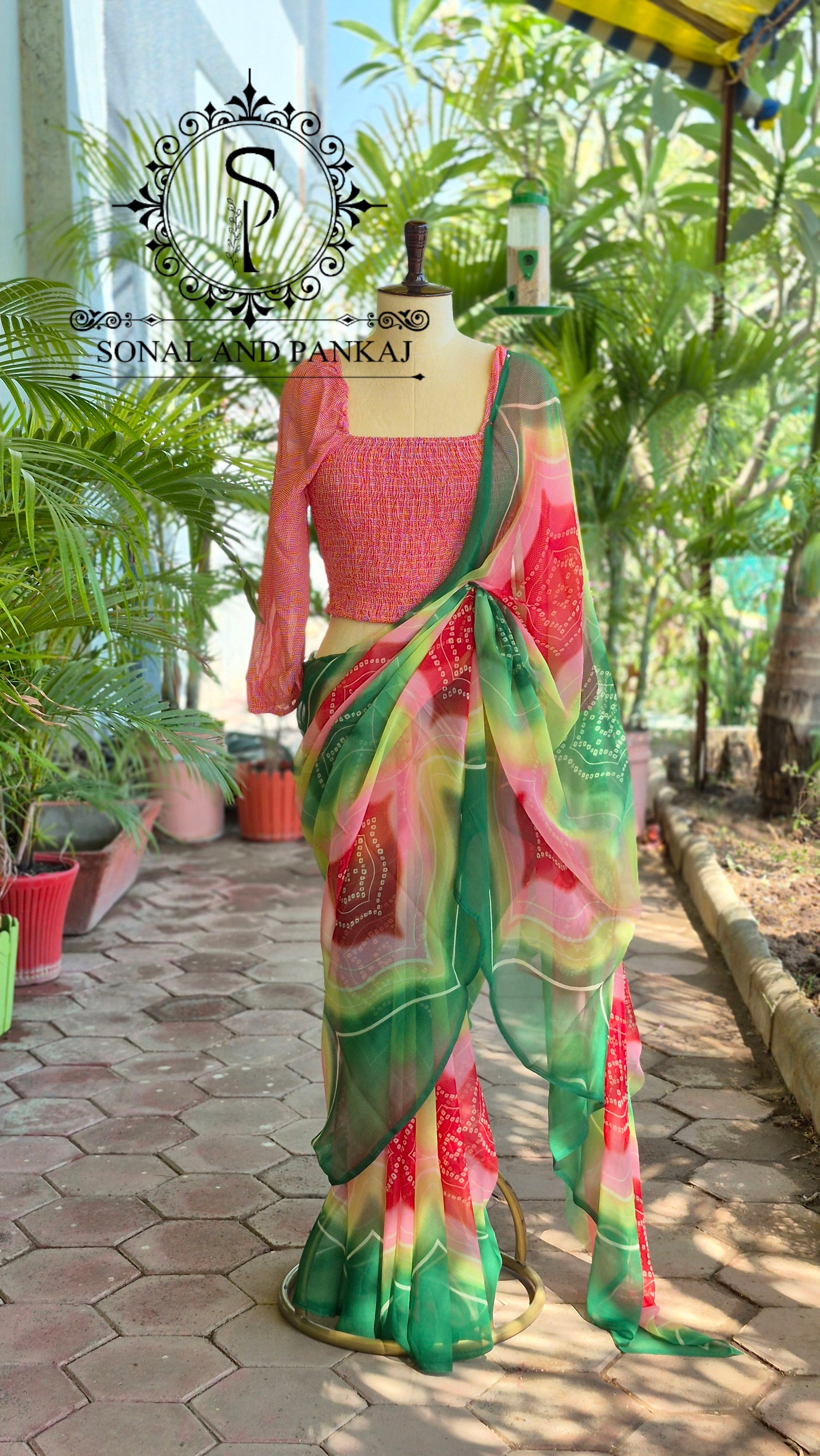 Sari prêt à draper sans Hassel avec un chemisier à paillettes dorées cousues.