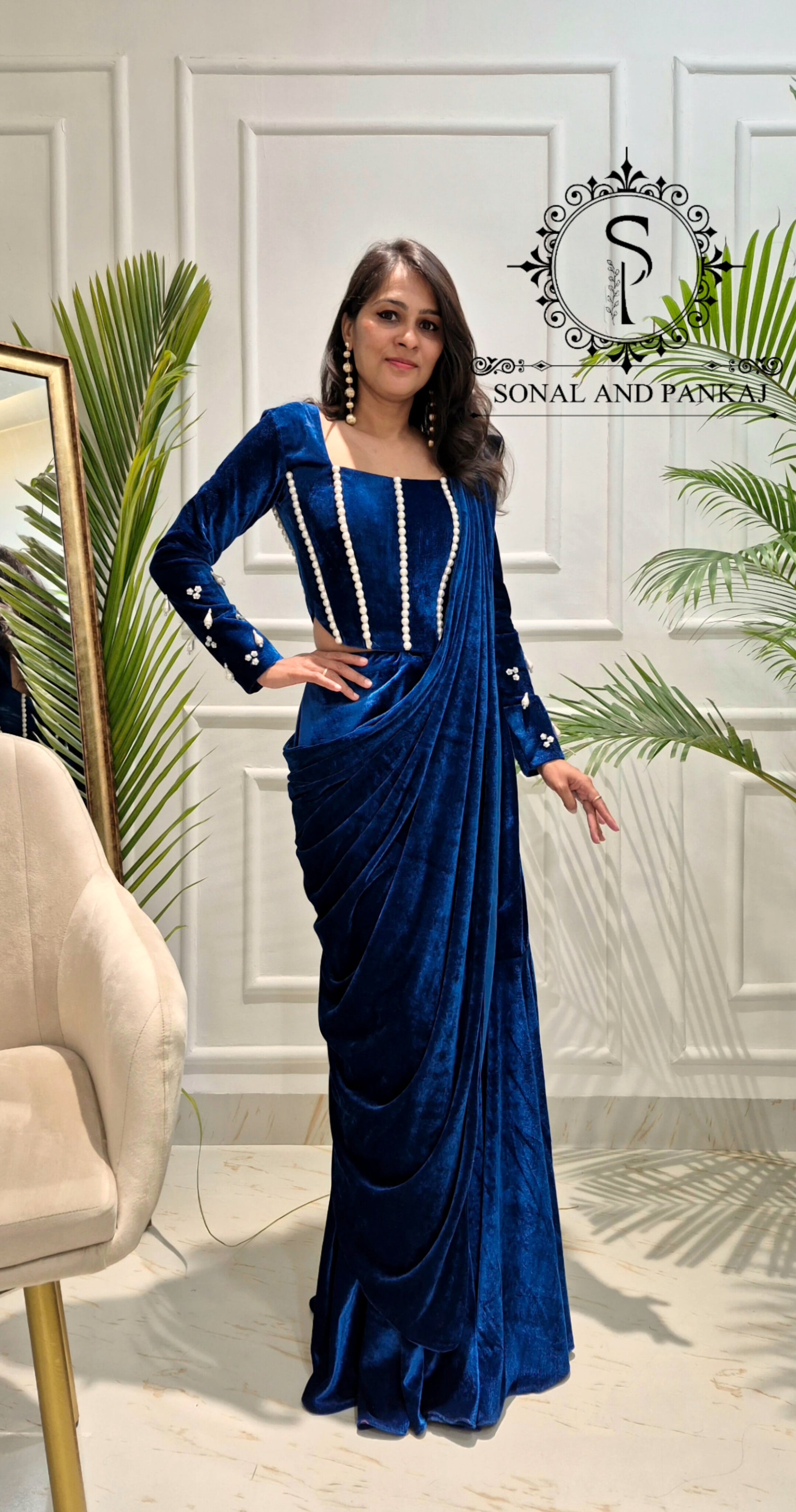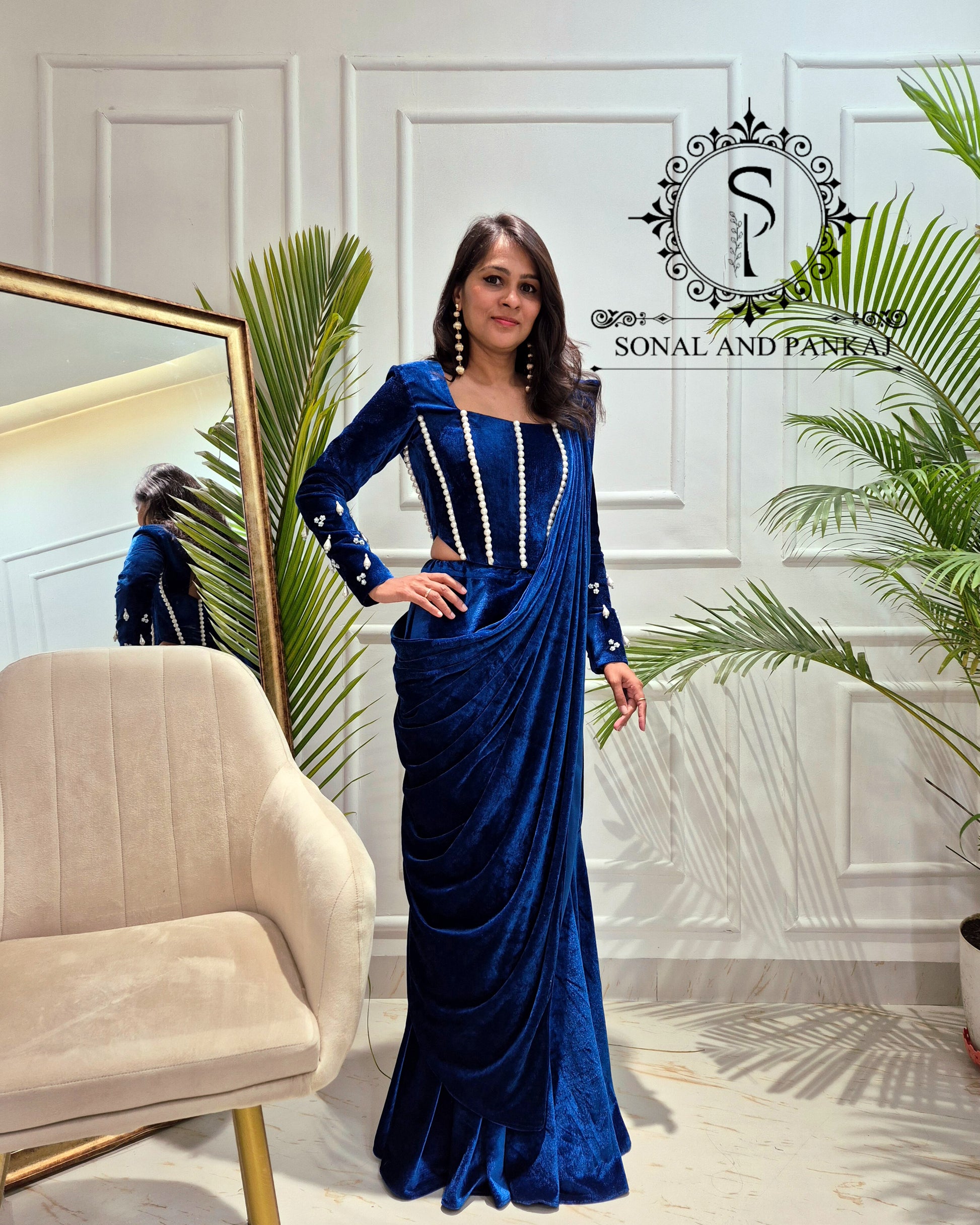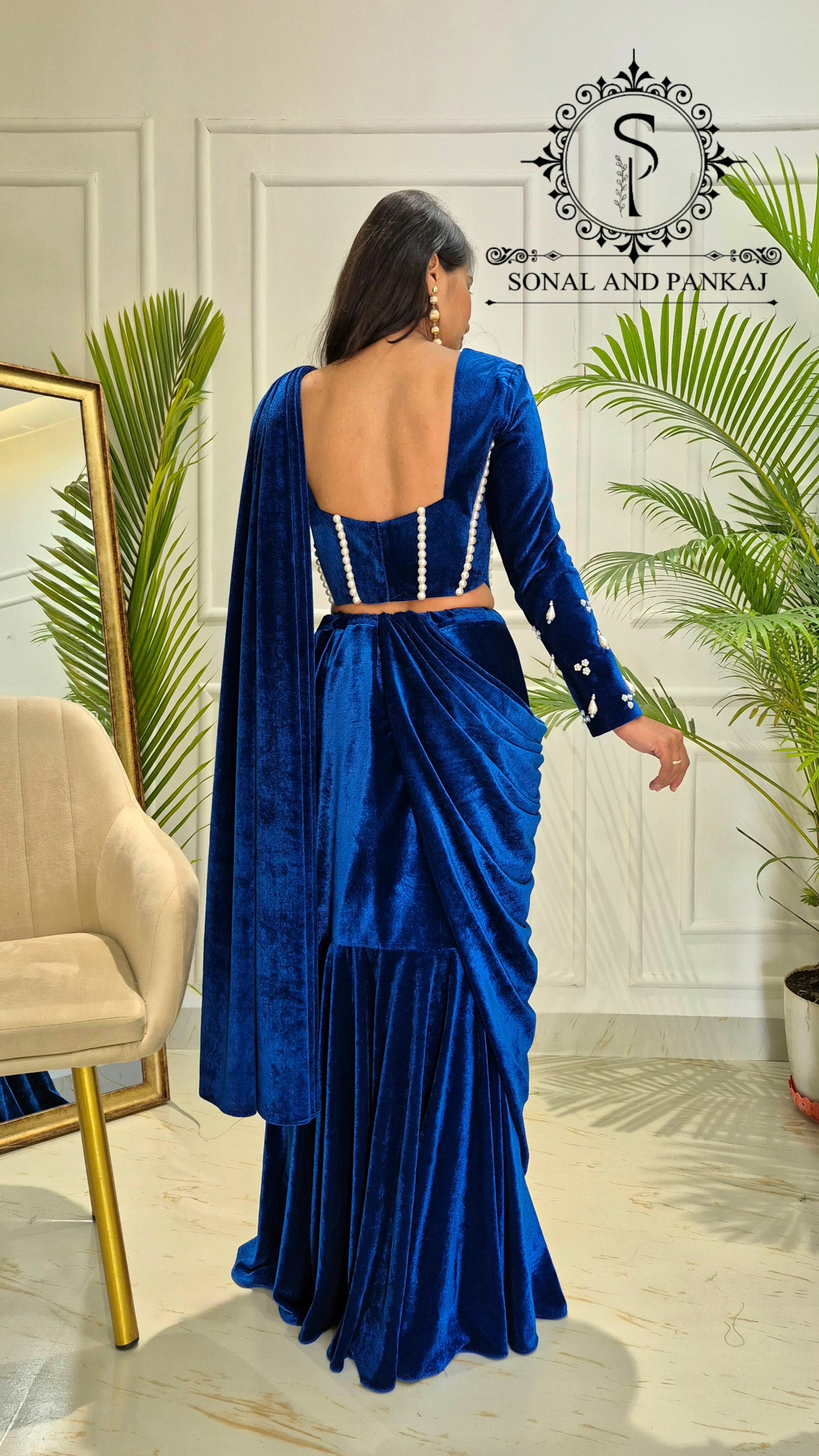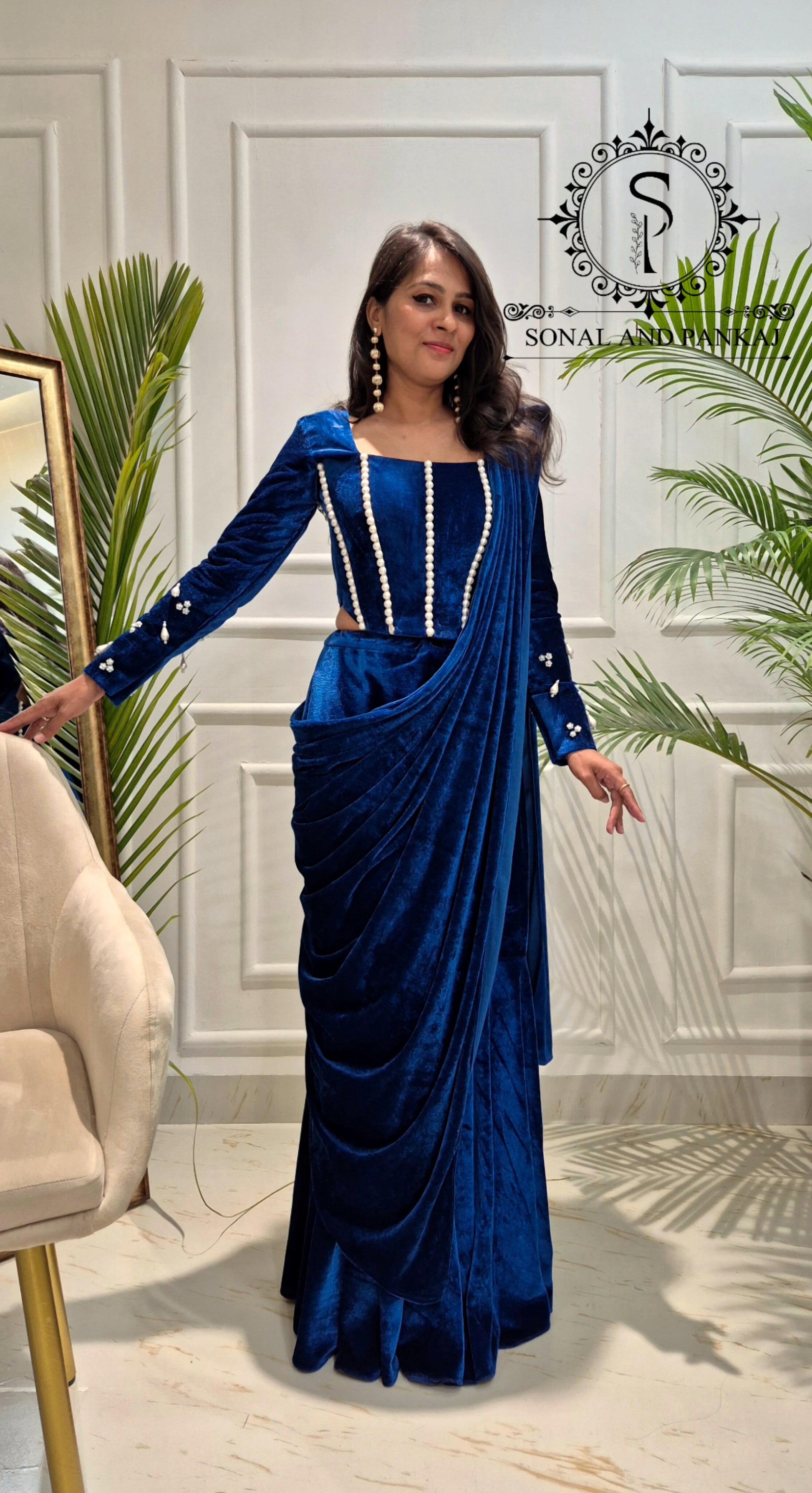Tissus : sari georgette 60 grammes et chemisier en velours.