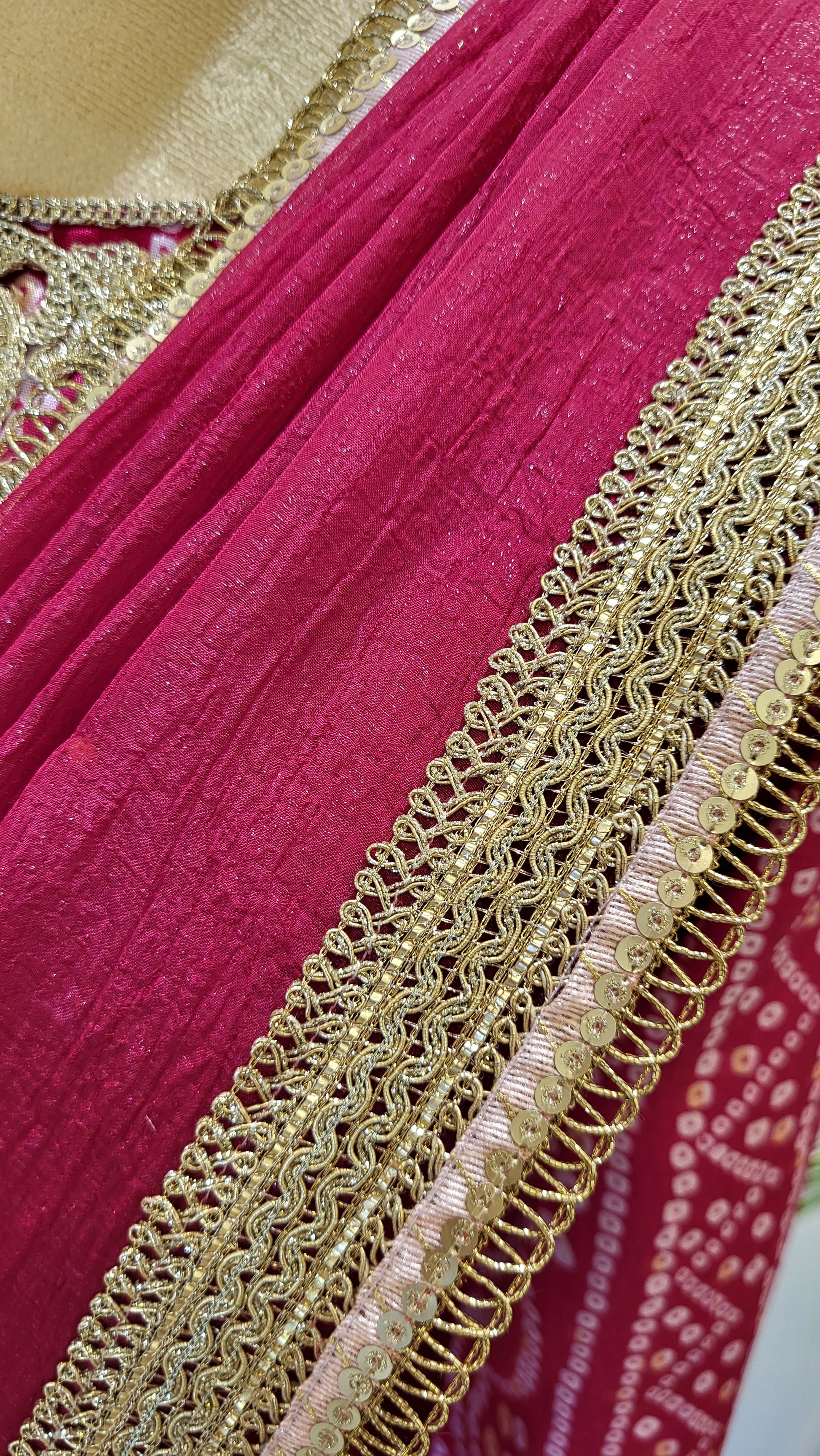Pink Bandhani Yoke Style Blouse With Magenta Pink Saree - SA01533