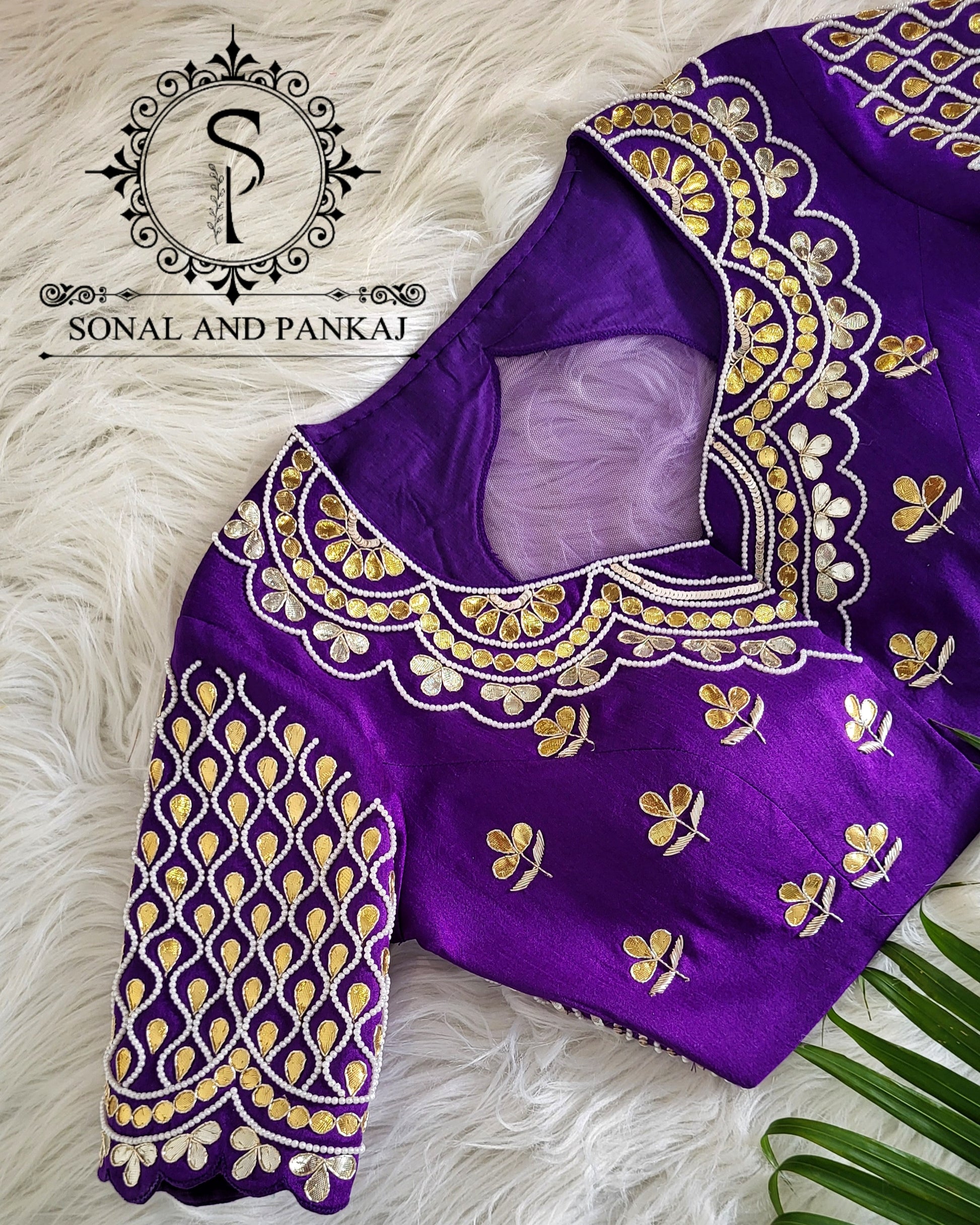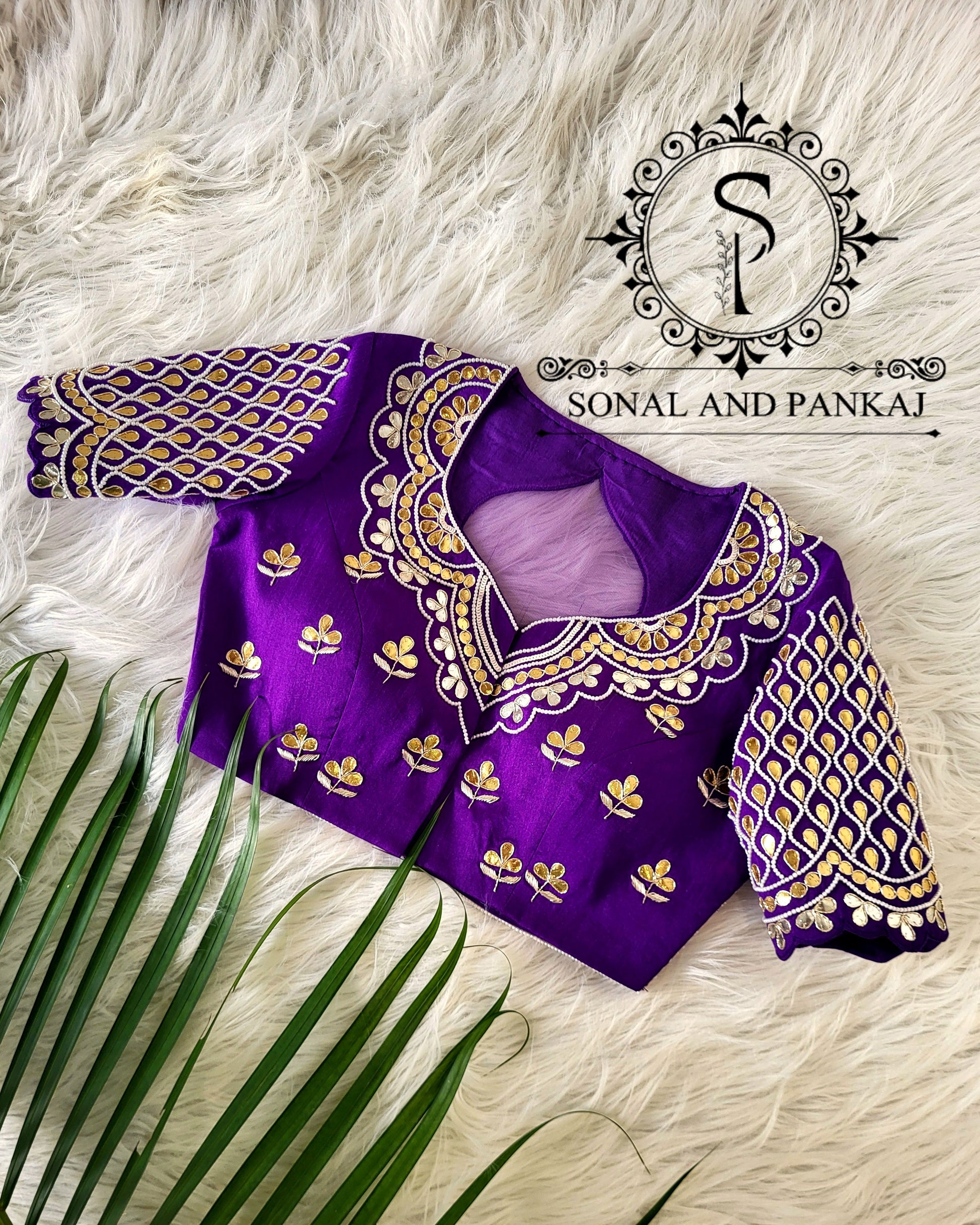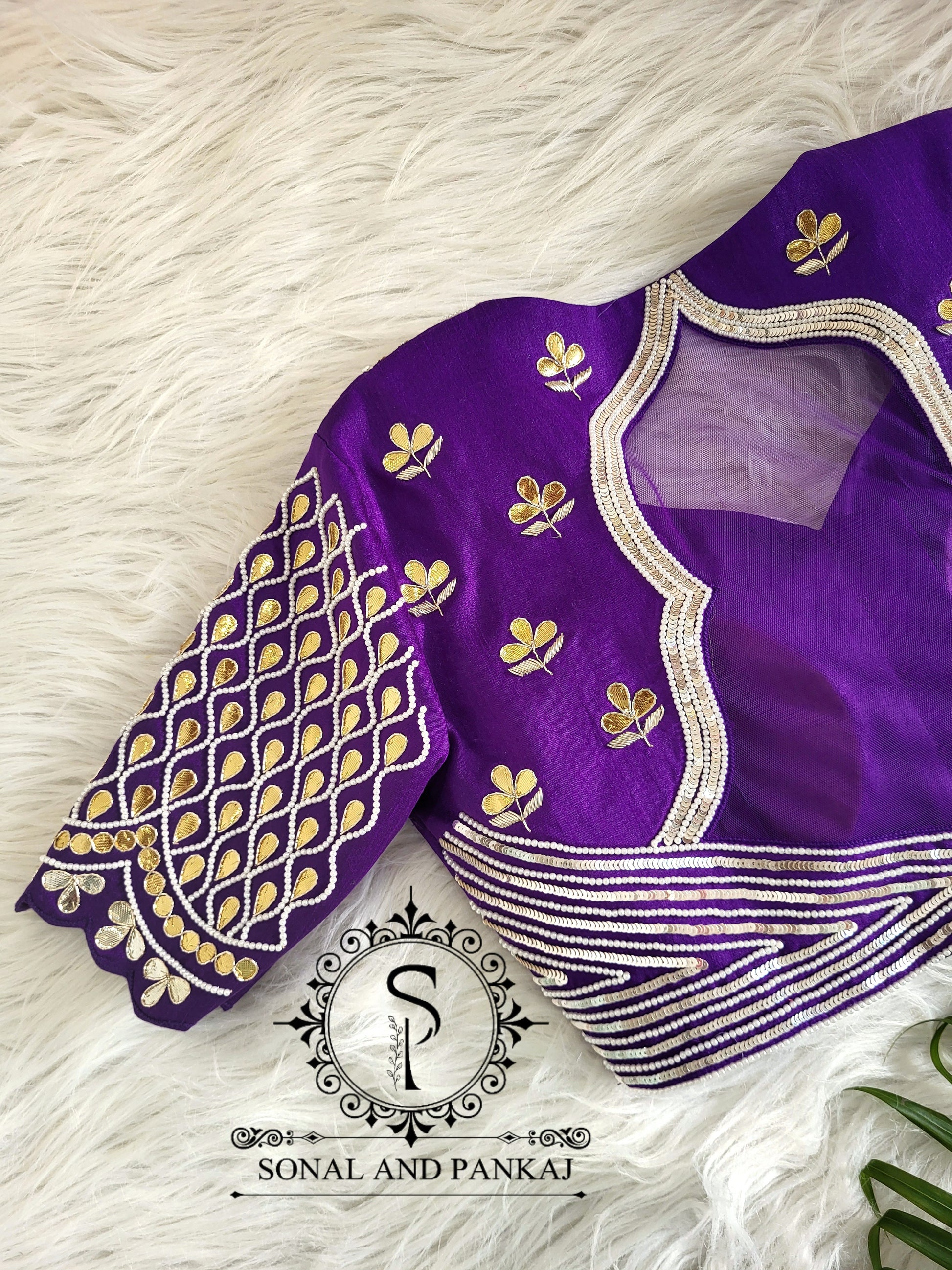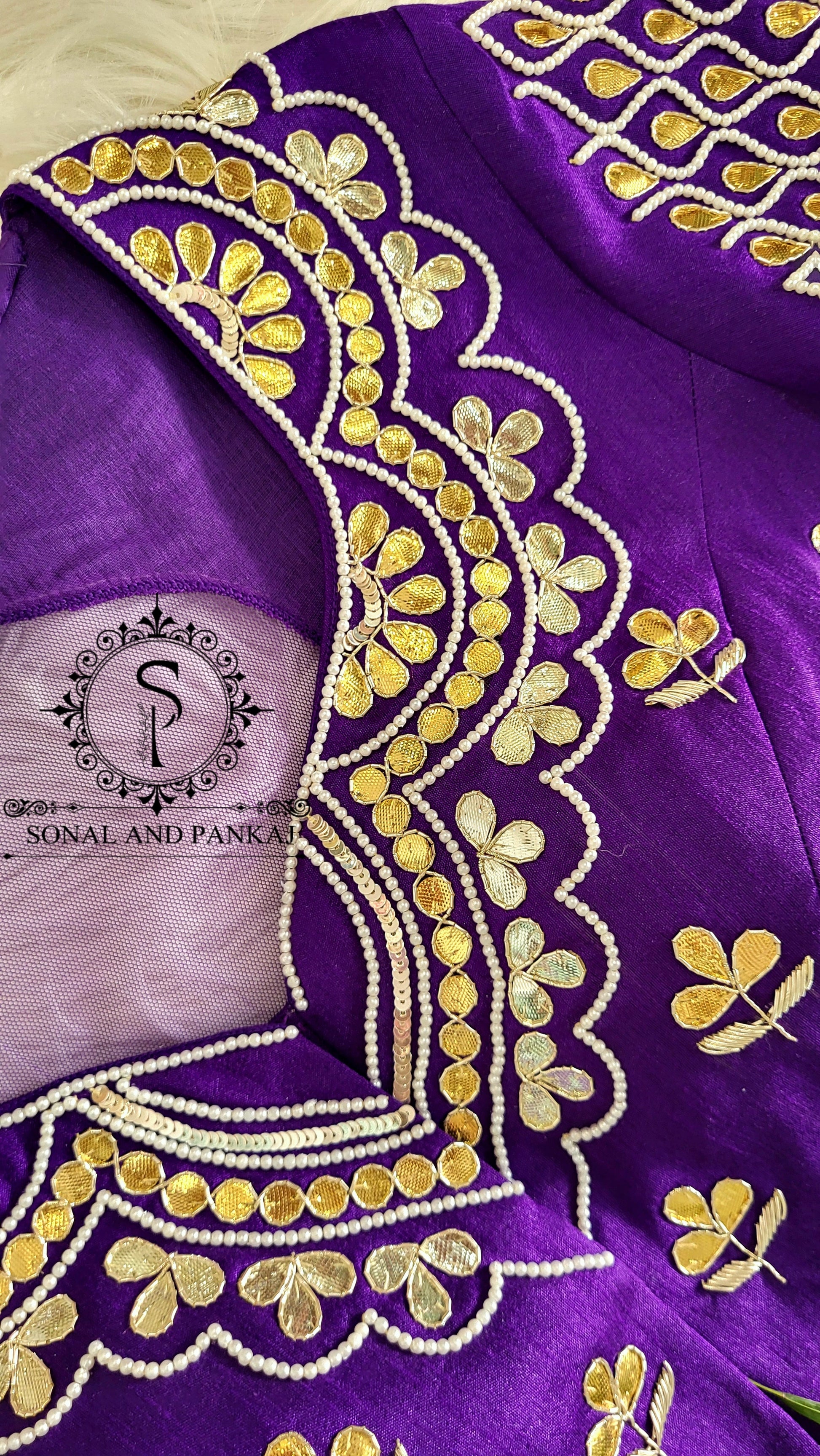 Chemisier à paillettes dorées avec sari prêt à draper - SA00929