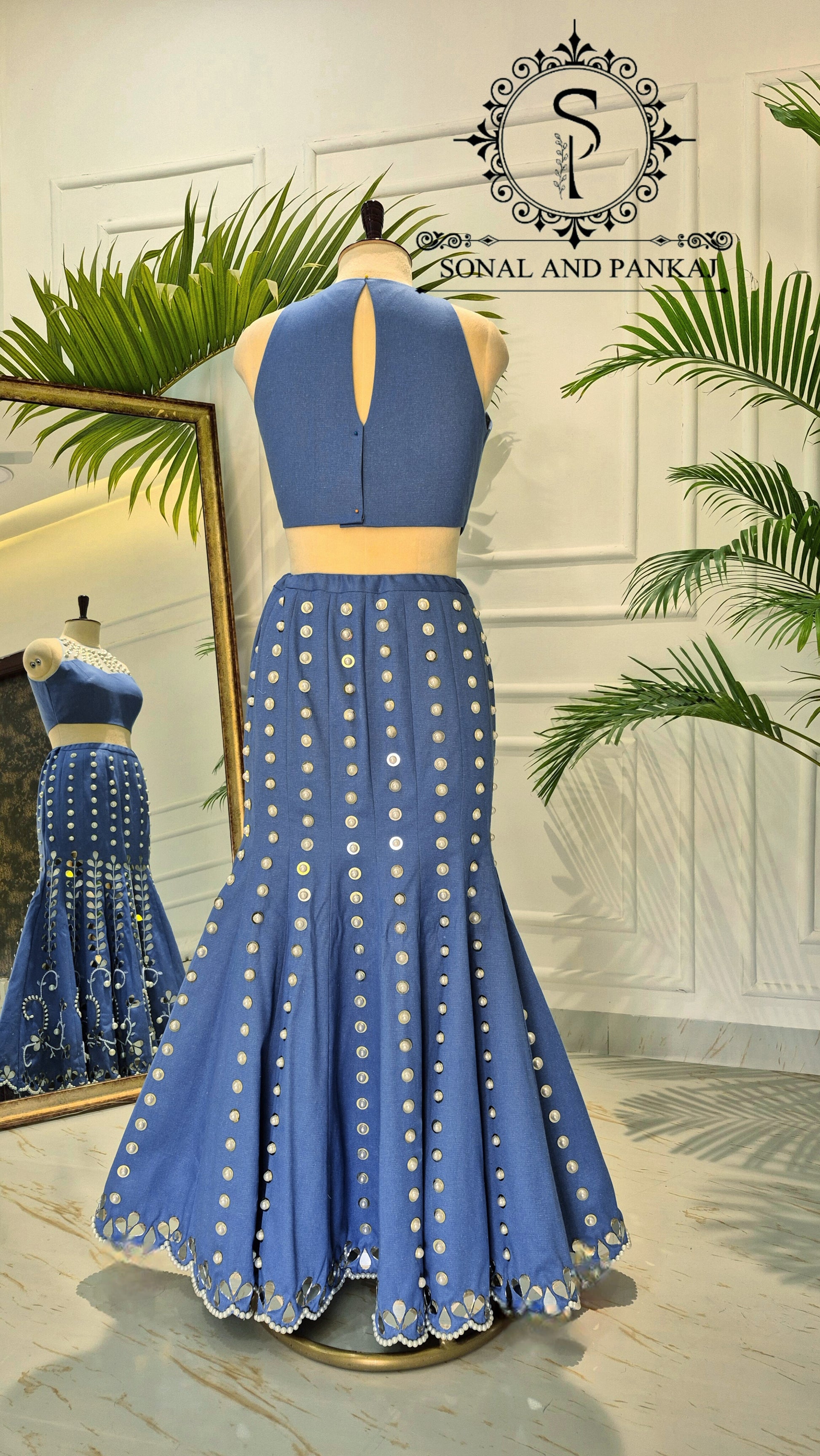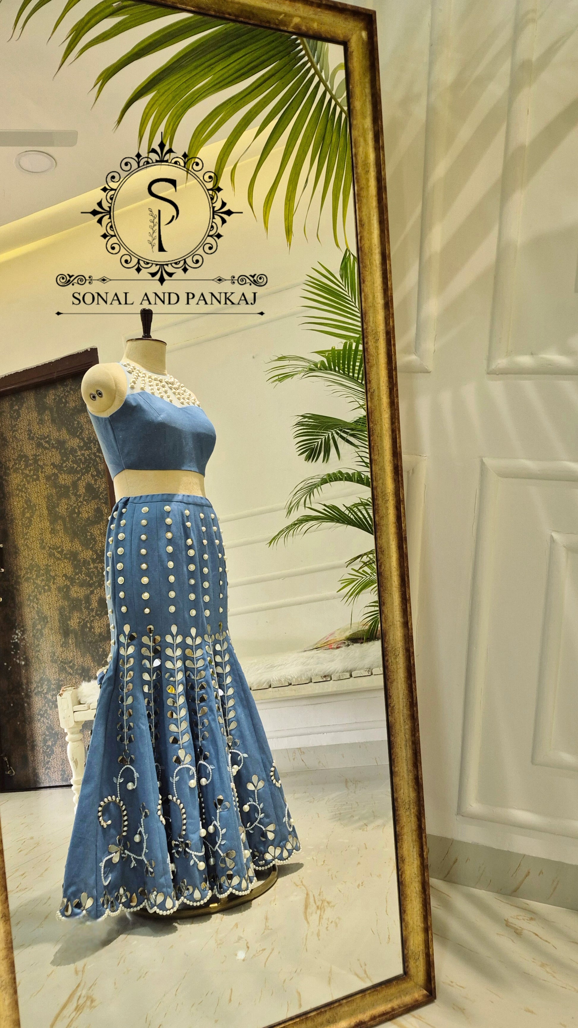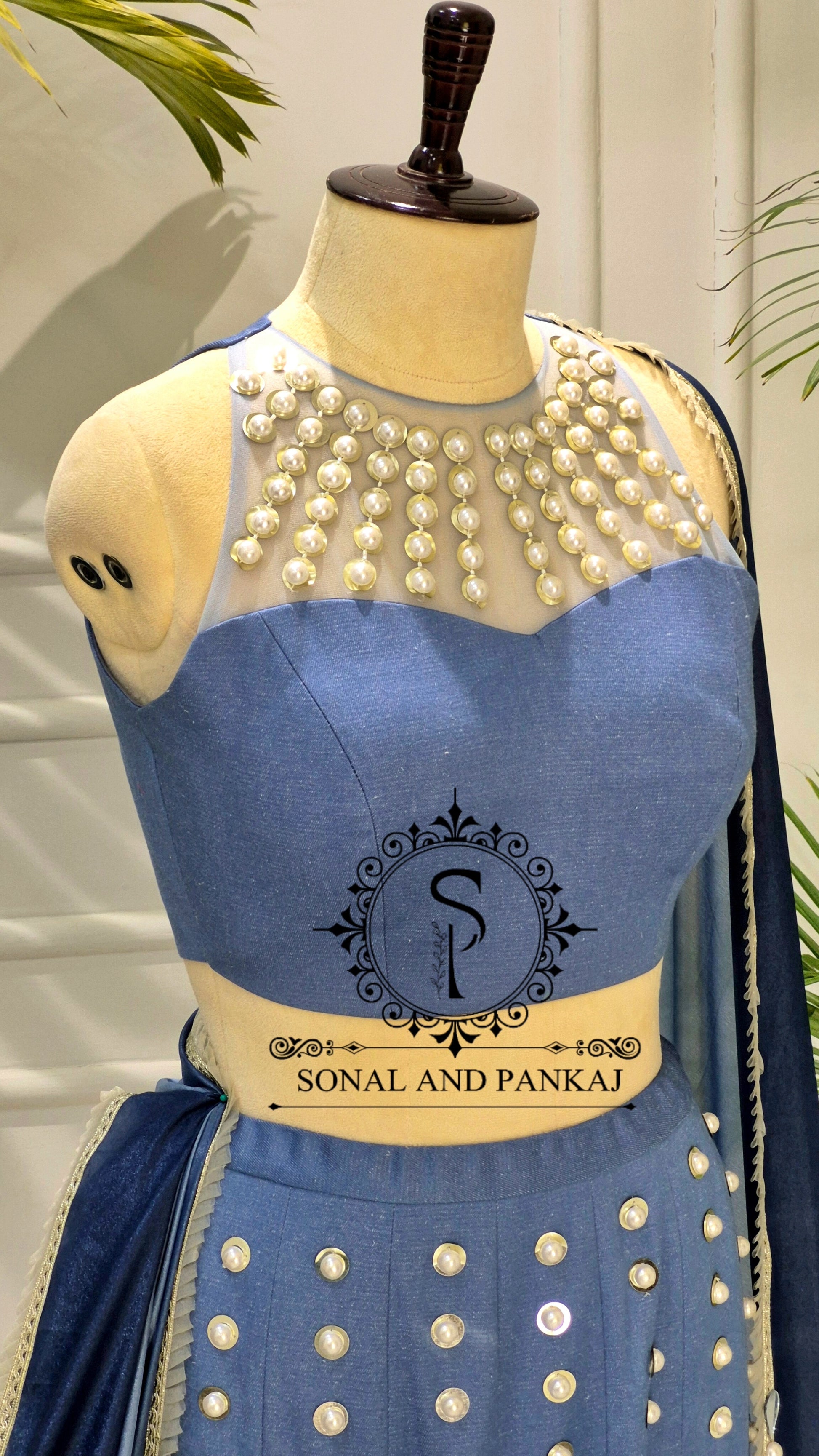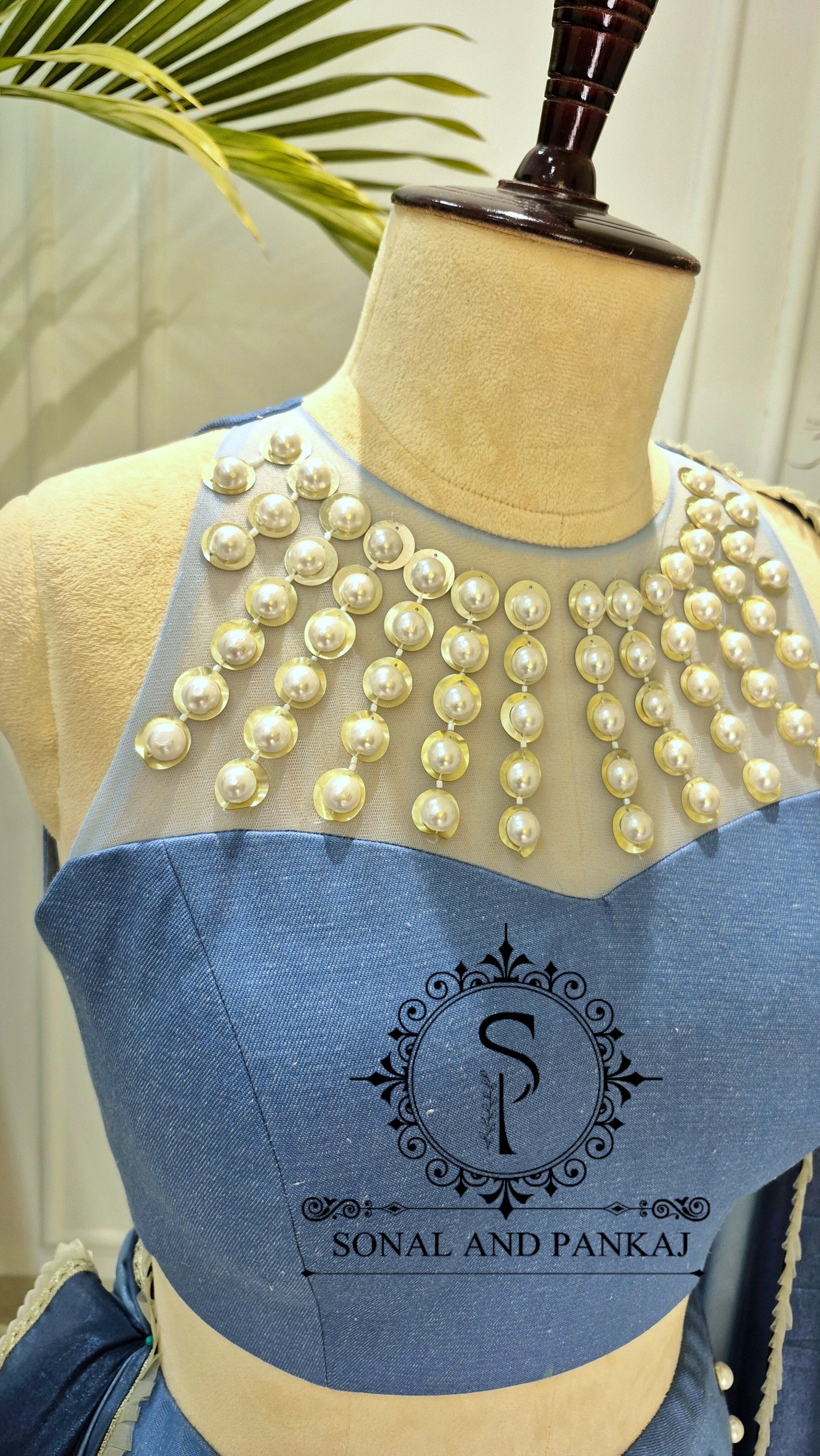 Blouse de style veste brodée à la main Paon 3D avec sari à volants superposés prêt-à-porter.