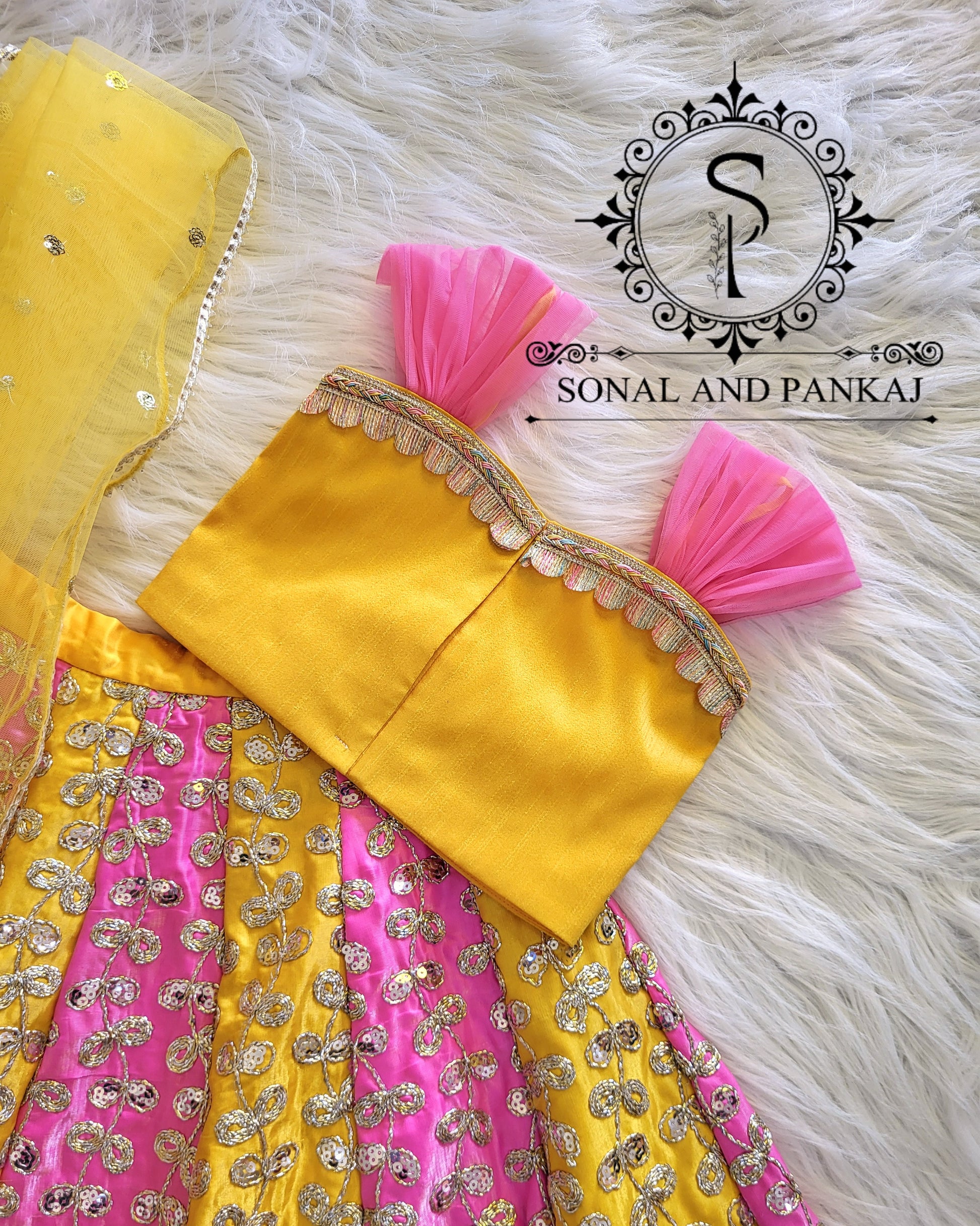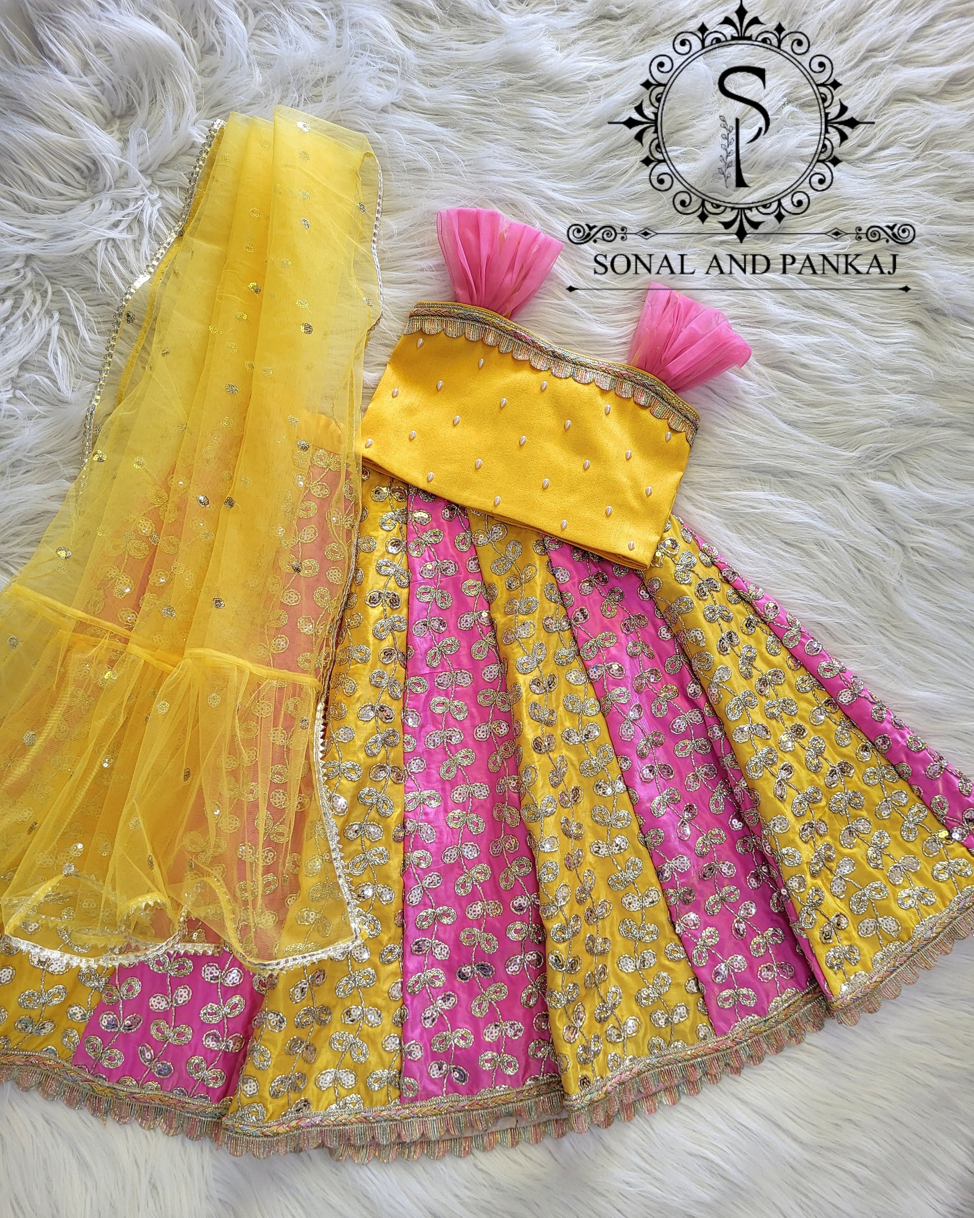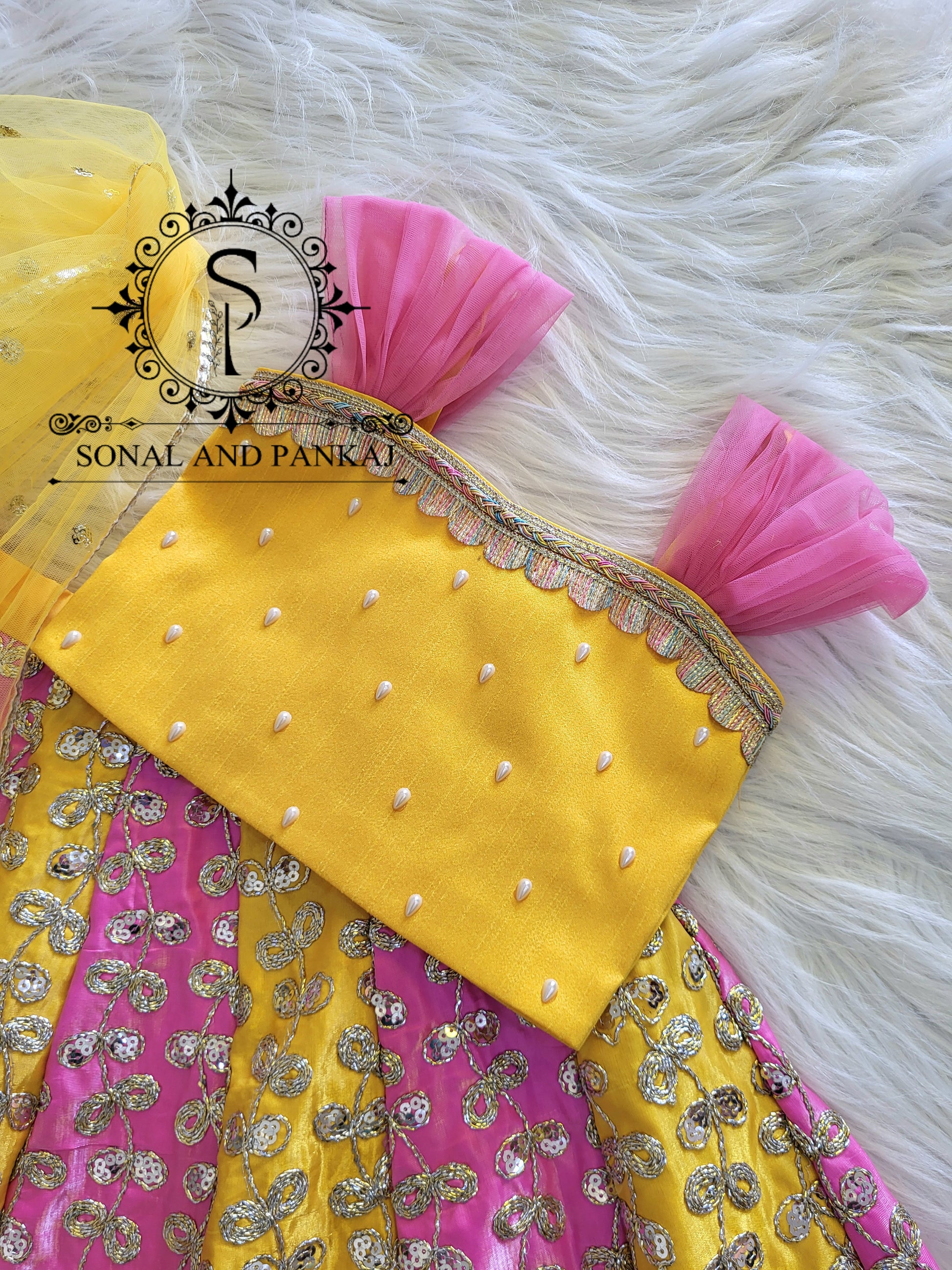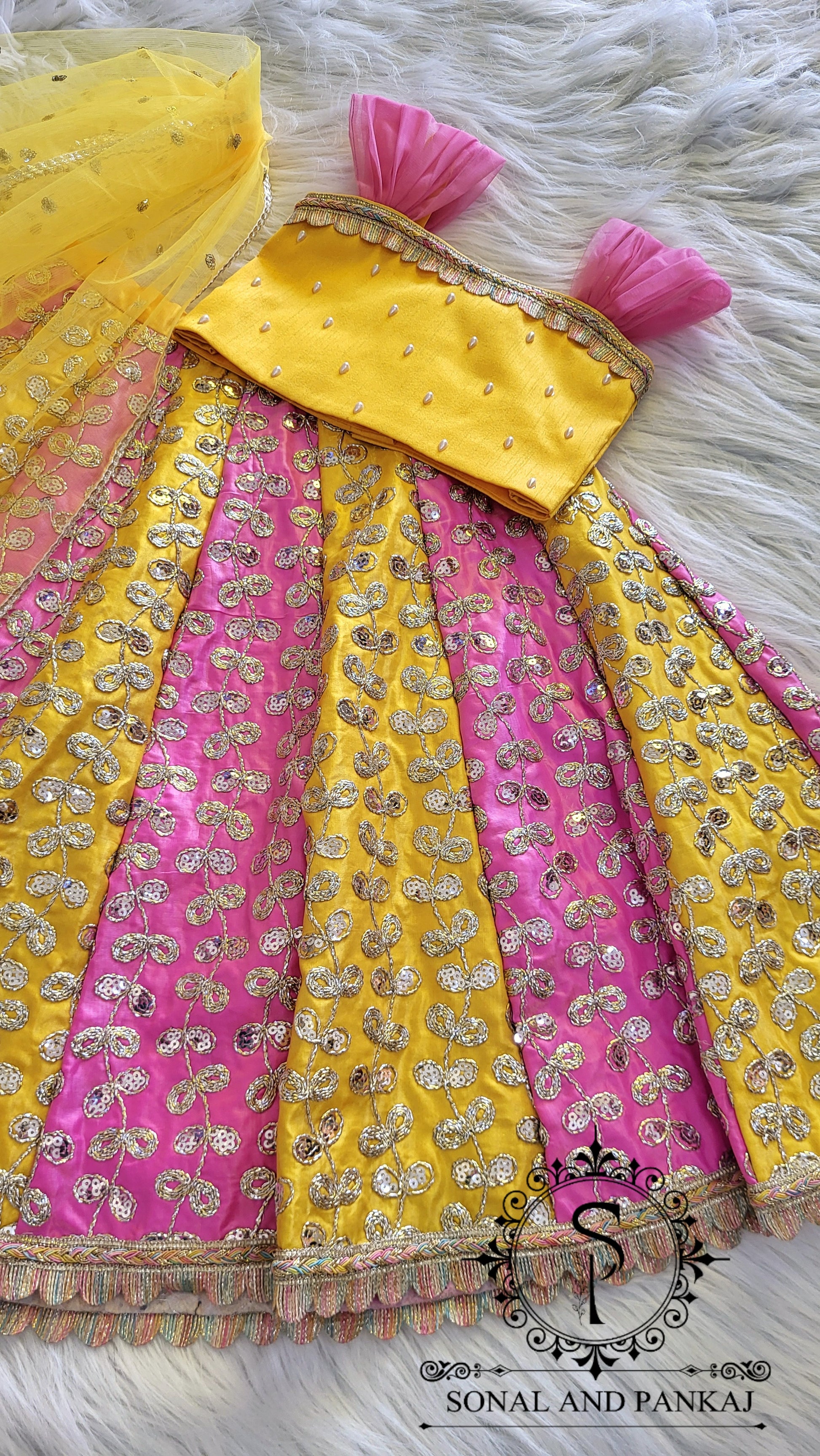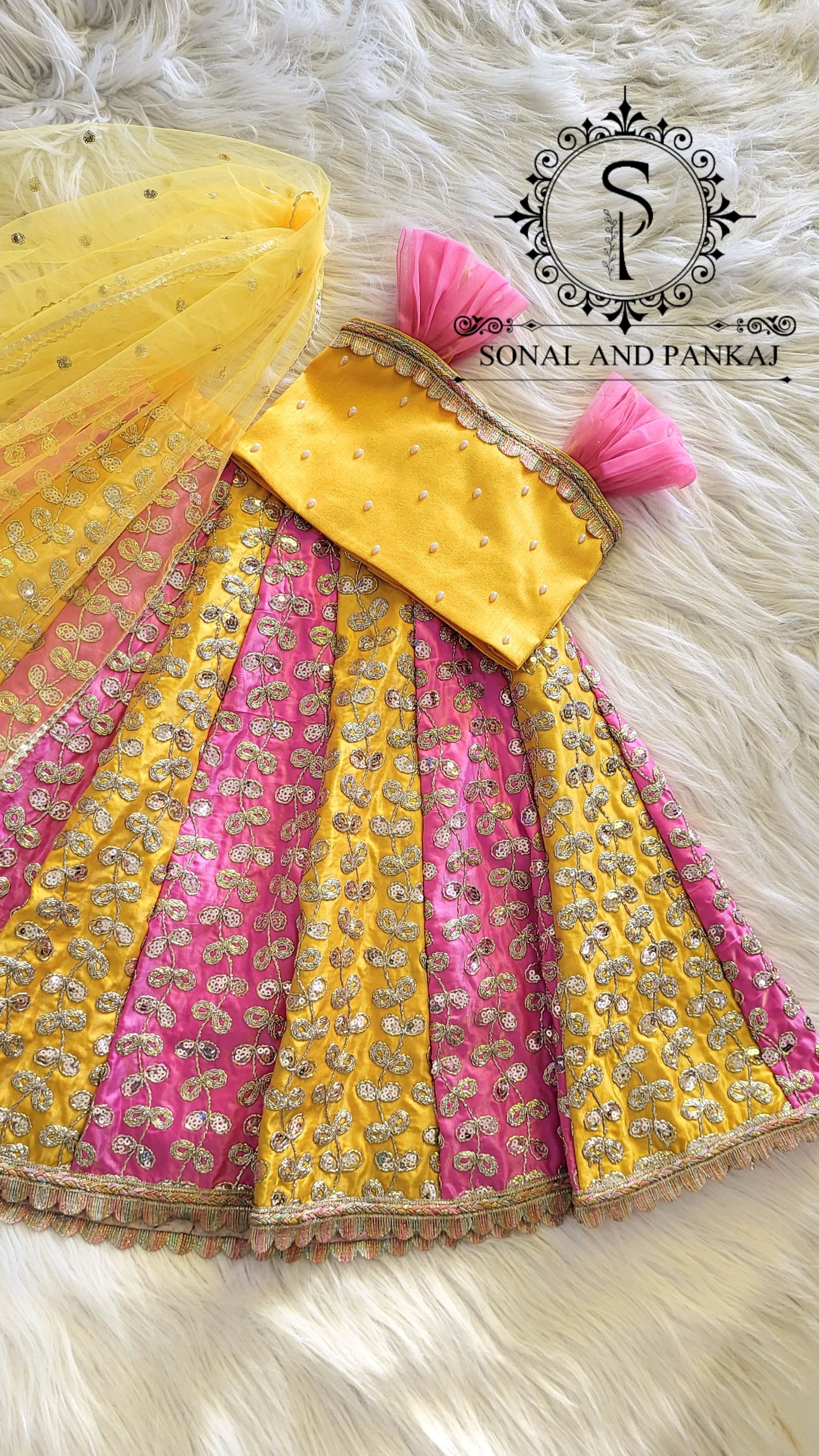 Pink & yellow kids lehenga choli with beautiful duppatta.