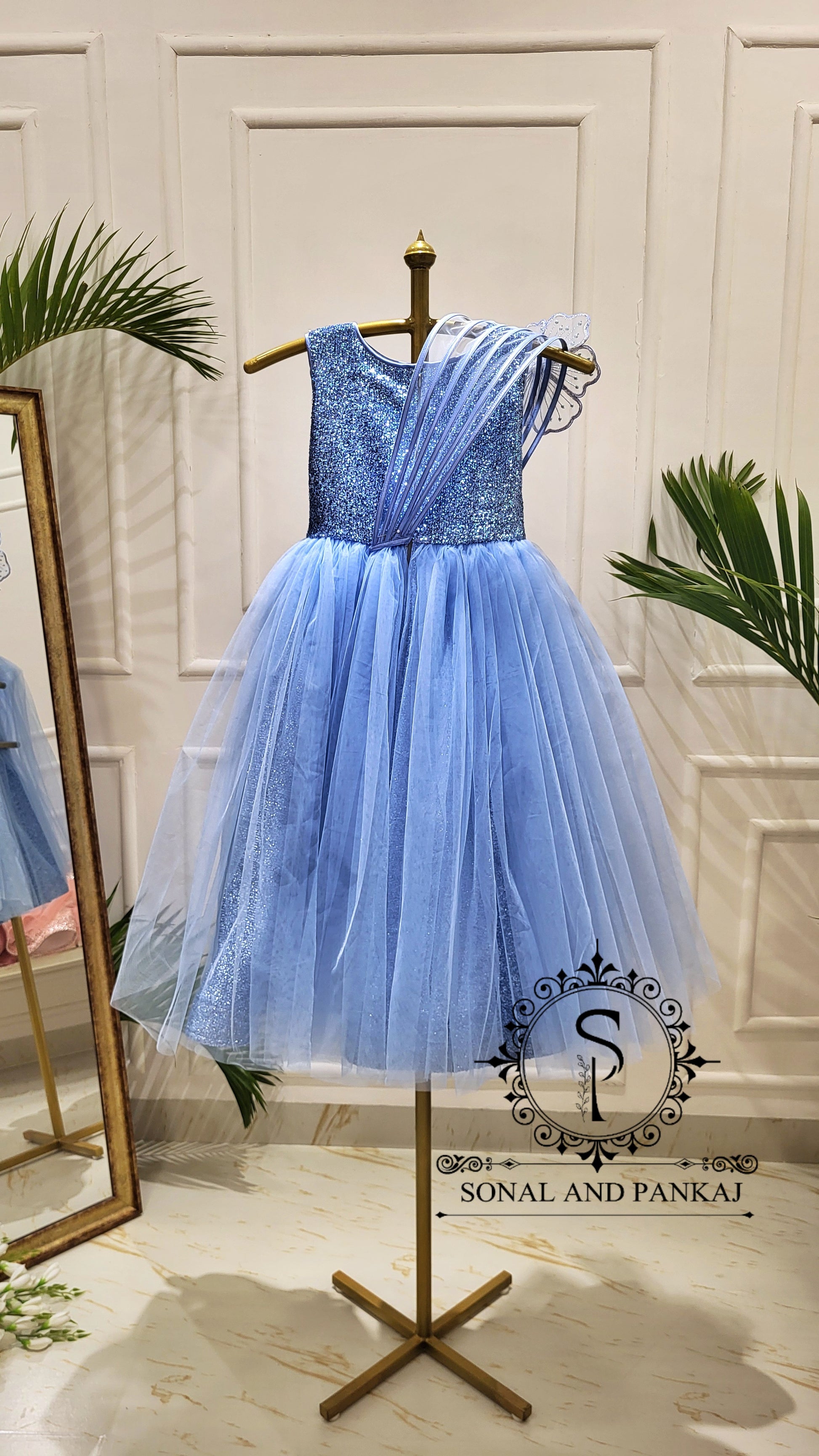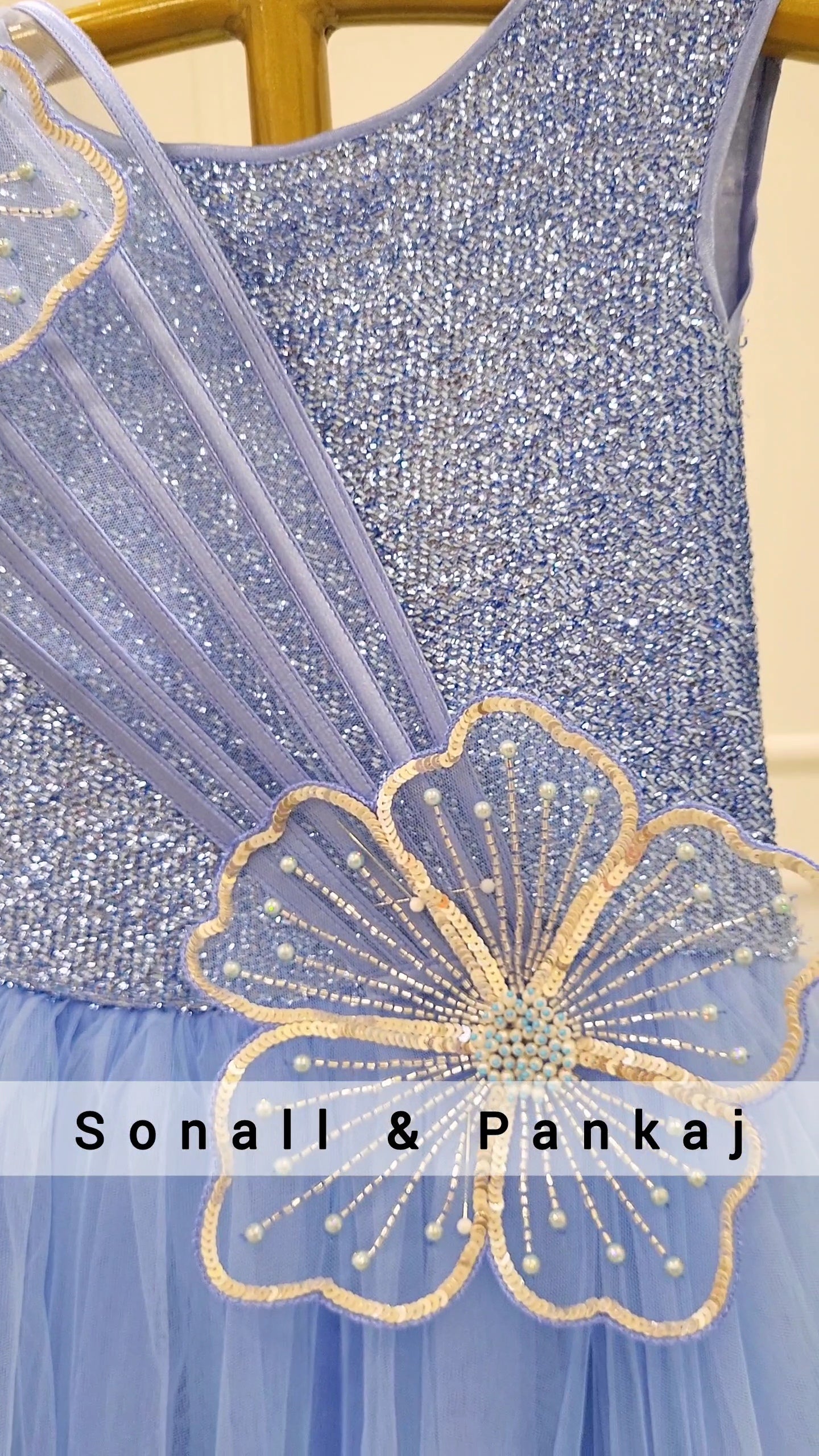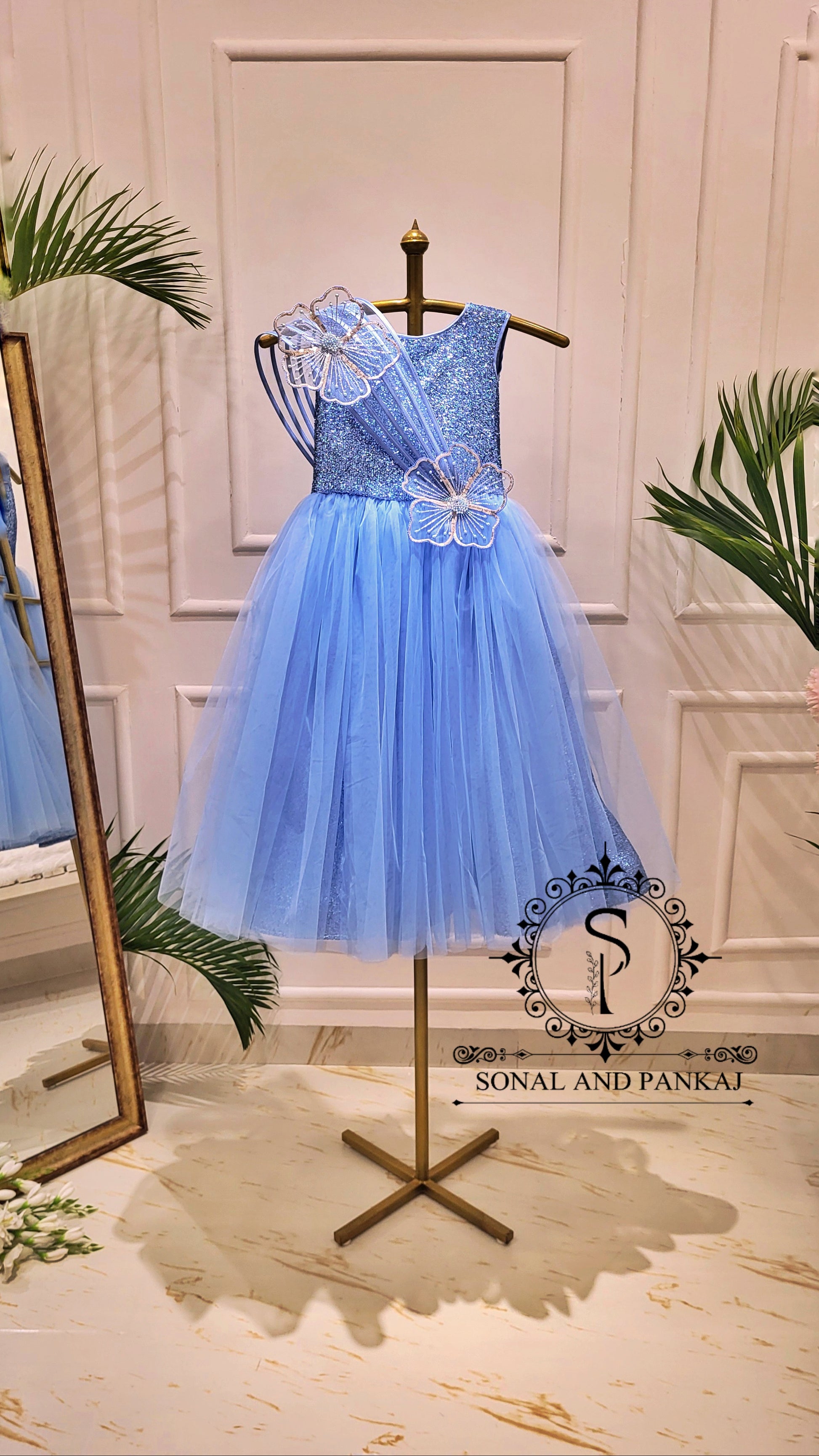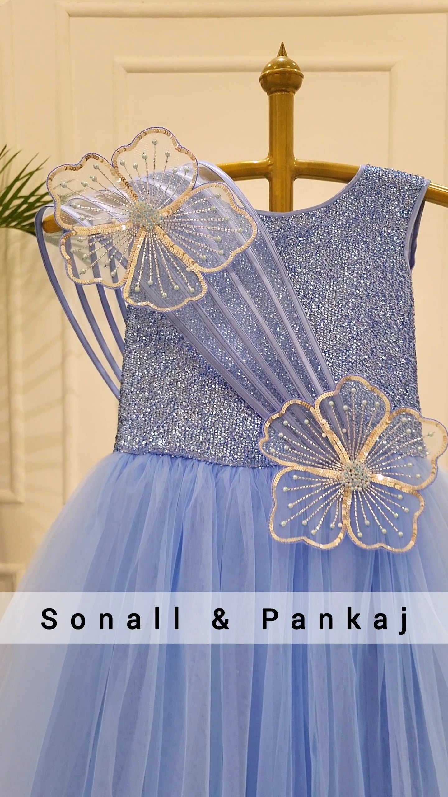 Designed to turn special occasions into storybook moments, the ice blue floral blossom gown blends whimsical charm with refined detailing. Let your child shine in a creation where artistry and imagination come together.
