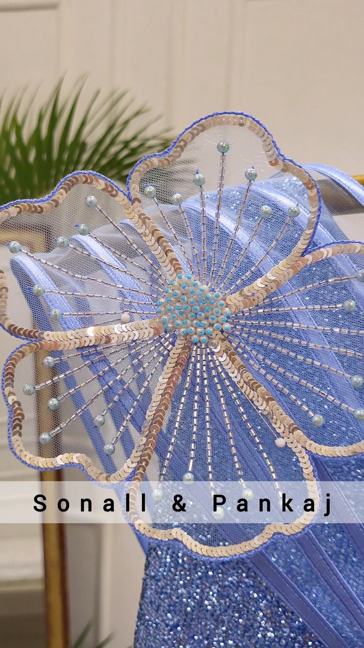 Work Details: 3d hand made flowers with cutdana, pearls & sequins hand embroidery.