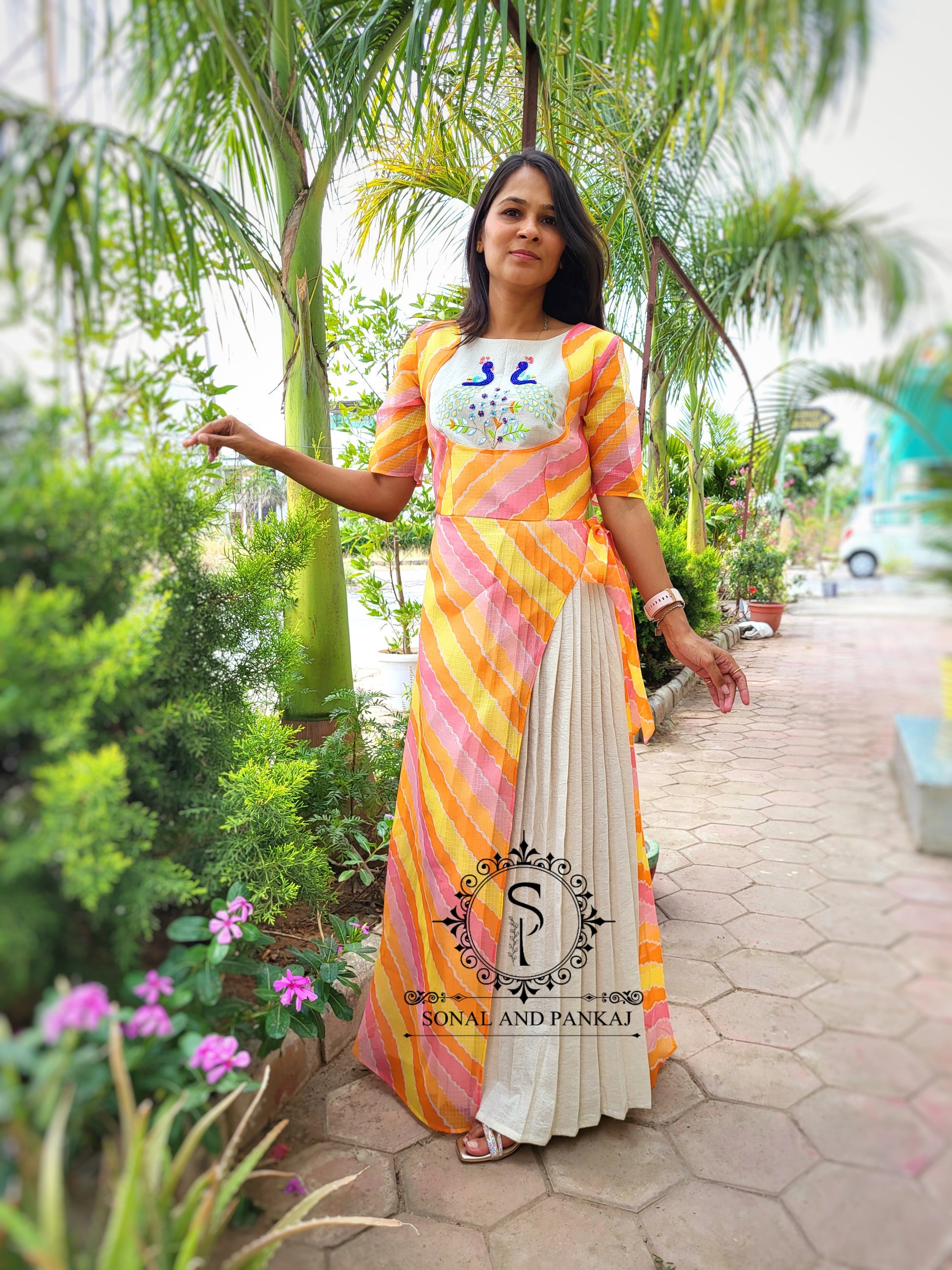 Gotta Patti Hand Embroidered Leheriya Floor Length Dress.