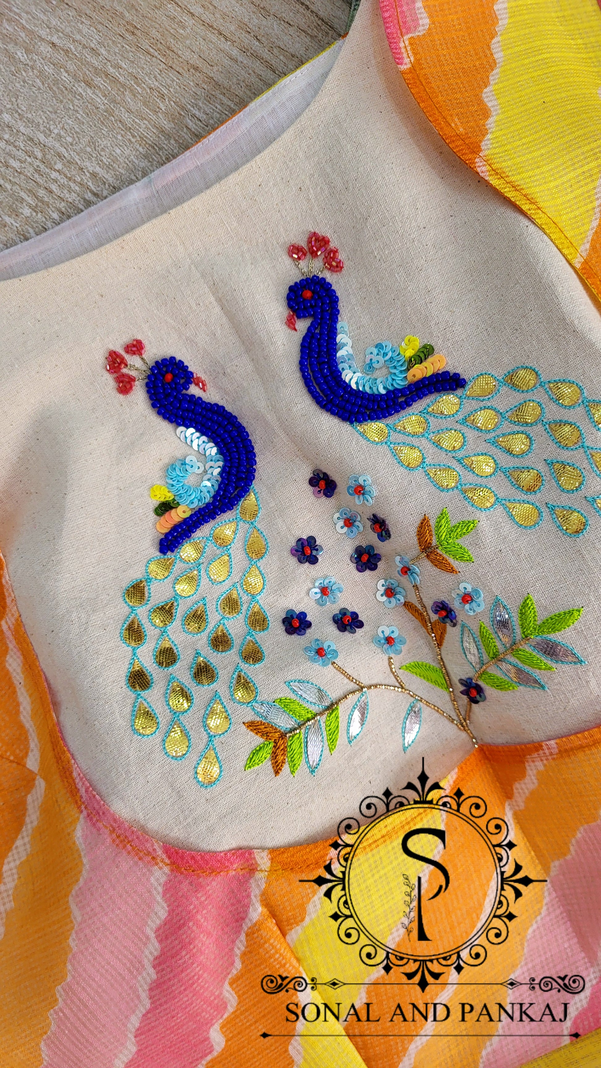 Gotta Patti Hand Embroidered Leheriya Floor Length - KT01485 (Peach)