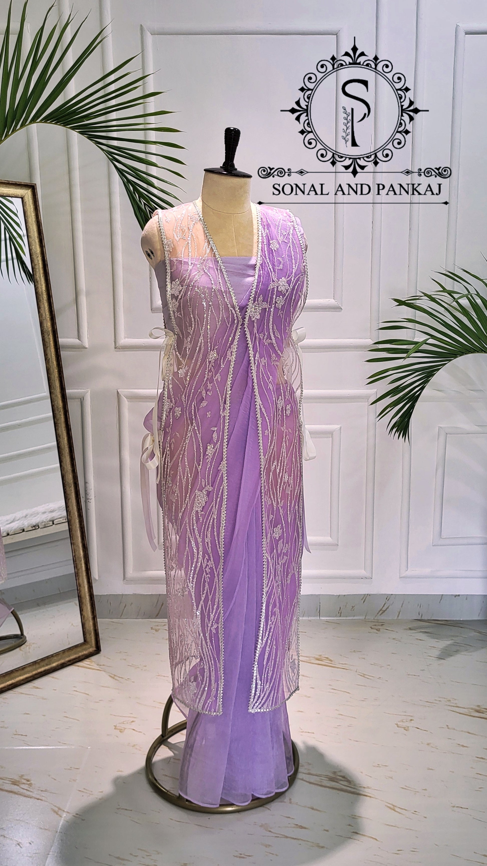 Galaxy - Pre-pleated Jacket Saree - SA01597 (Lavender)