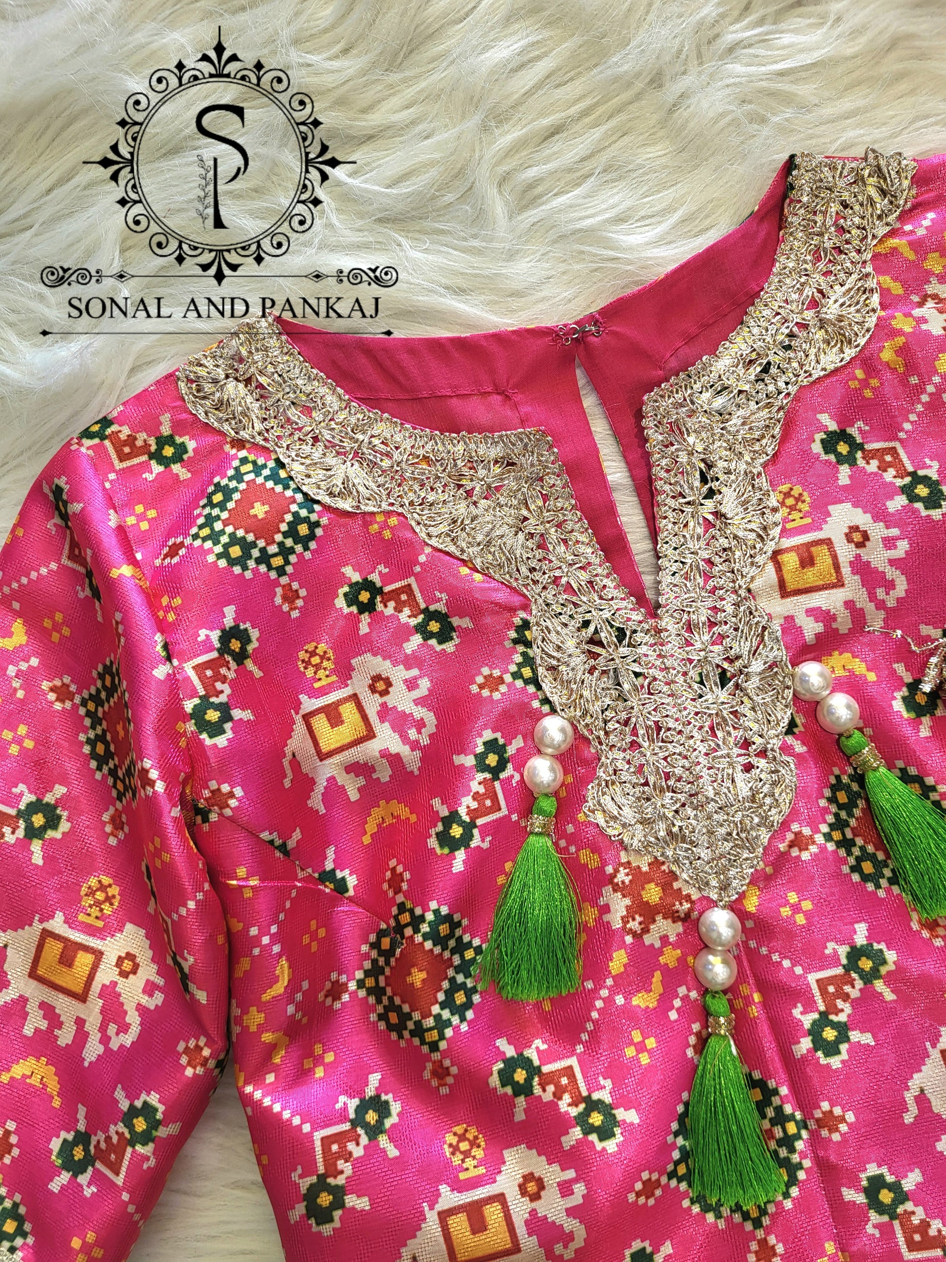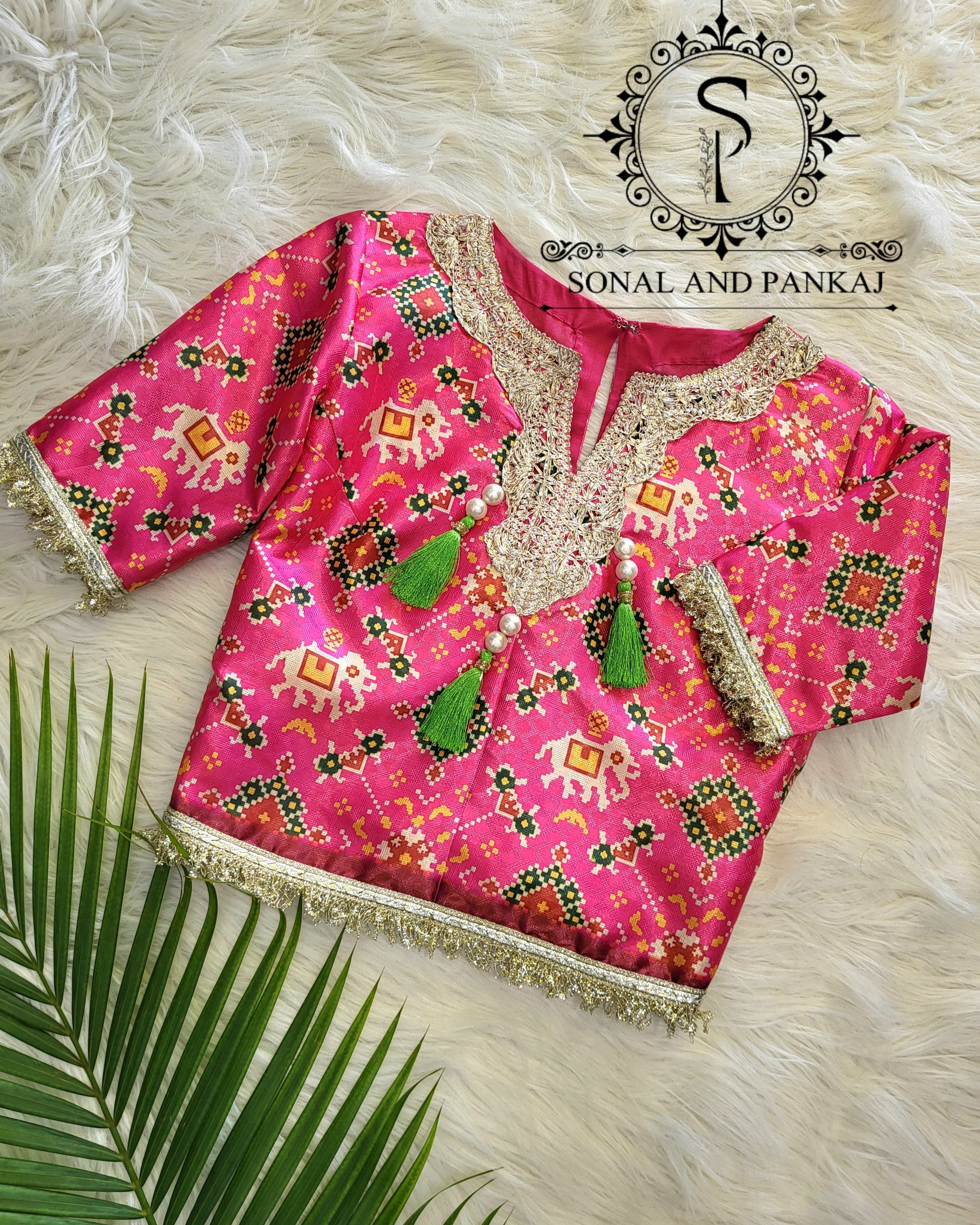 Long Top Style Patola Blouse - BL01546 (Pink)