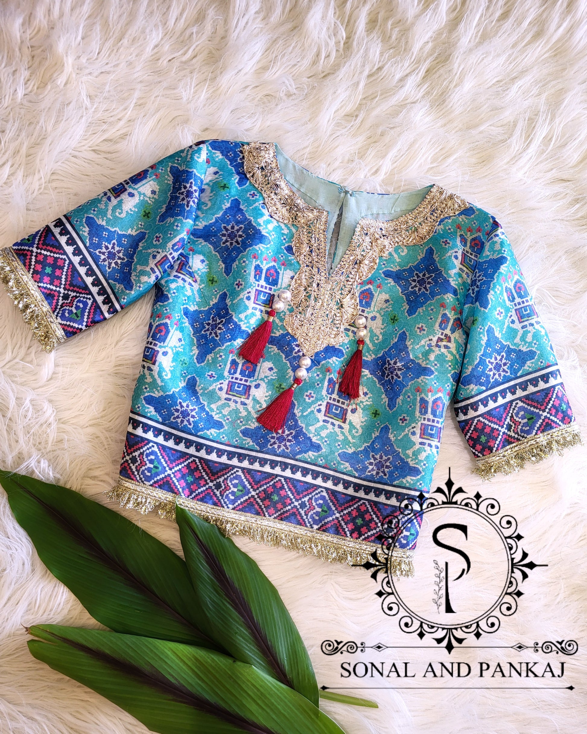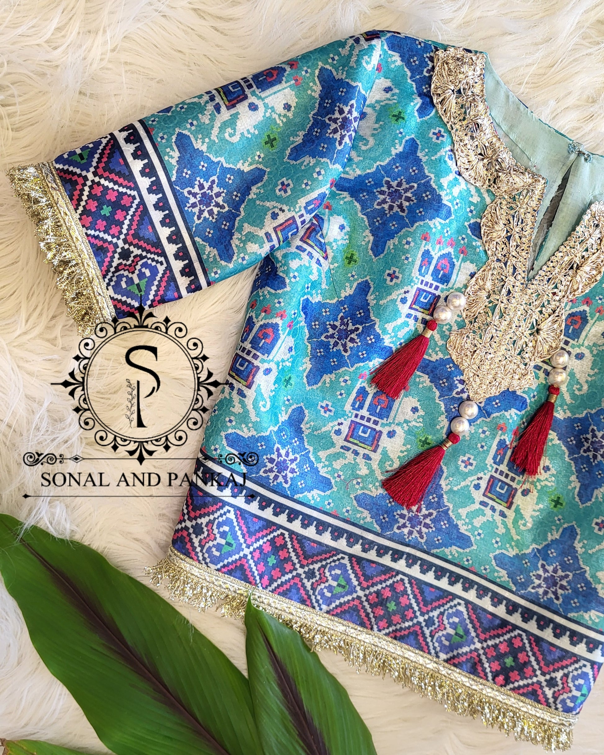 Long Top Style Patola Blouse - BL01547 (Aqua)