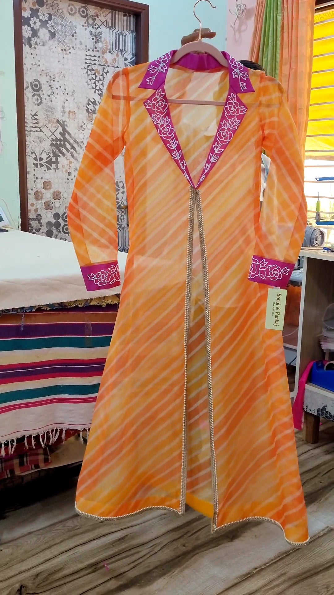 Mauve Coord Set With Organza Leheriya Hand Embroidered Jacket.
