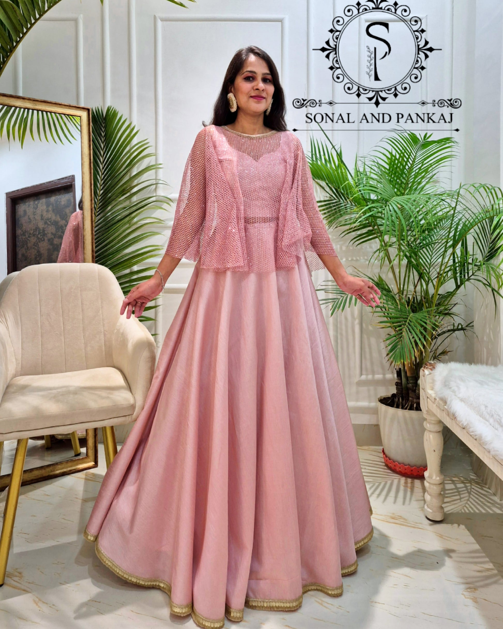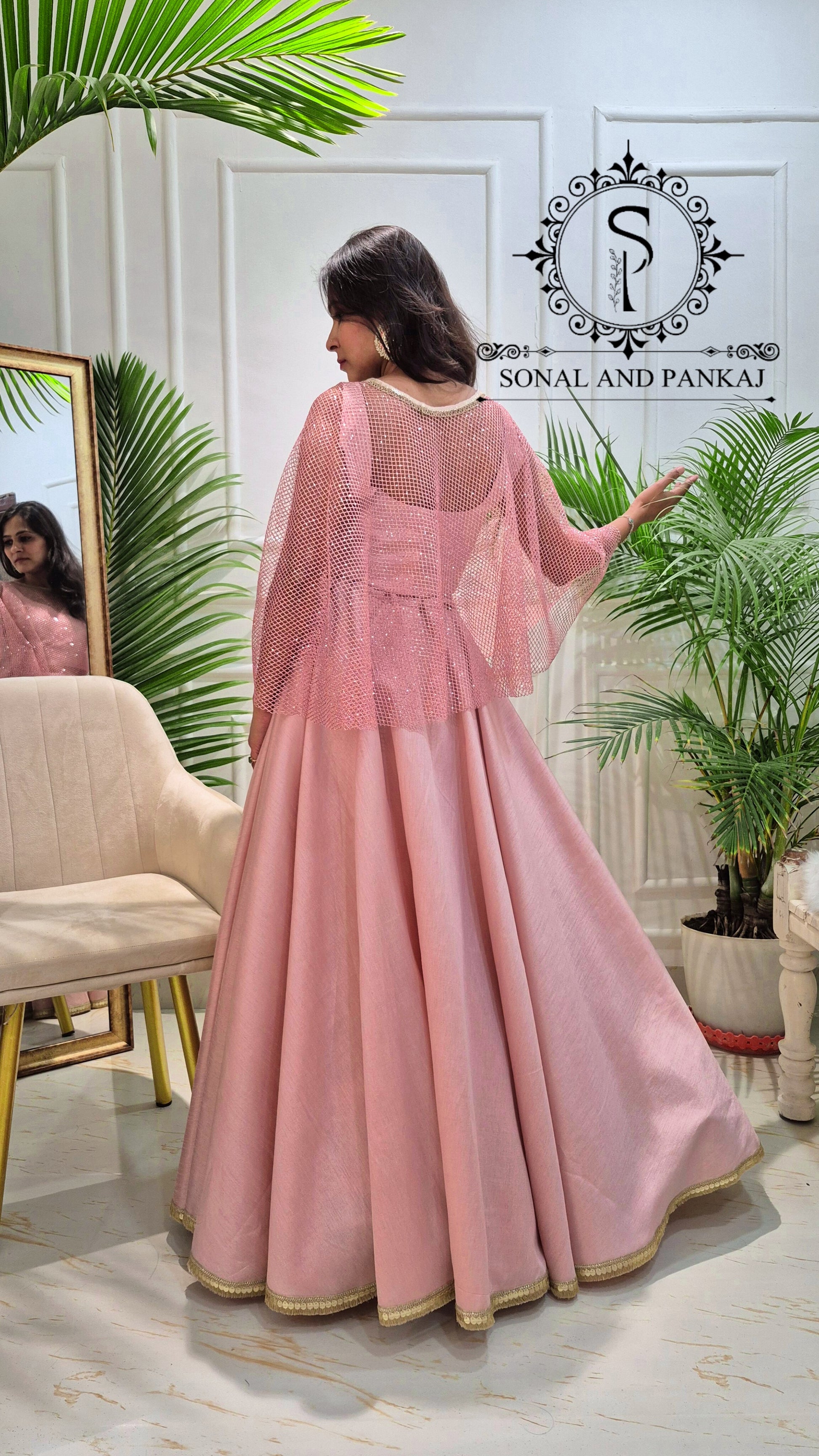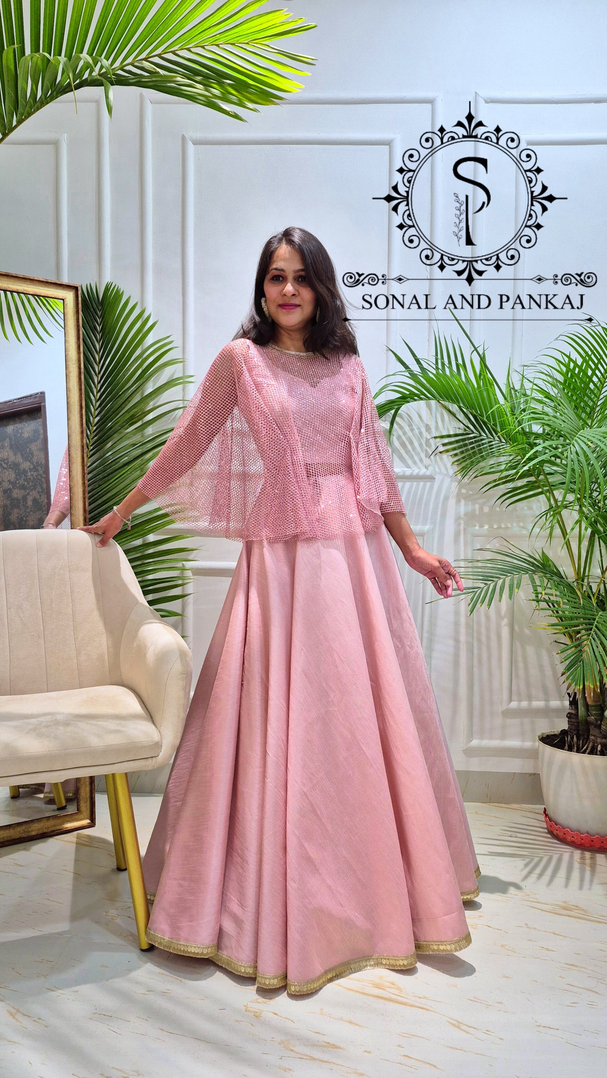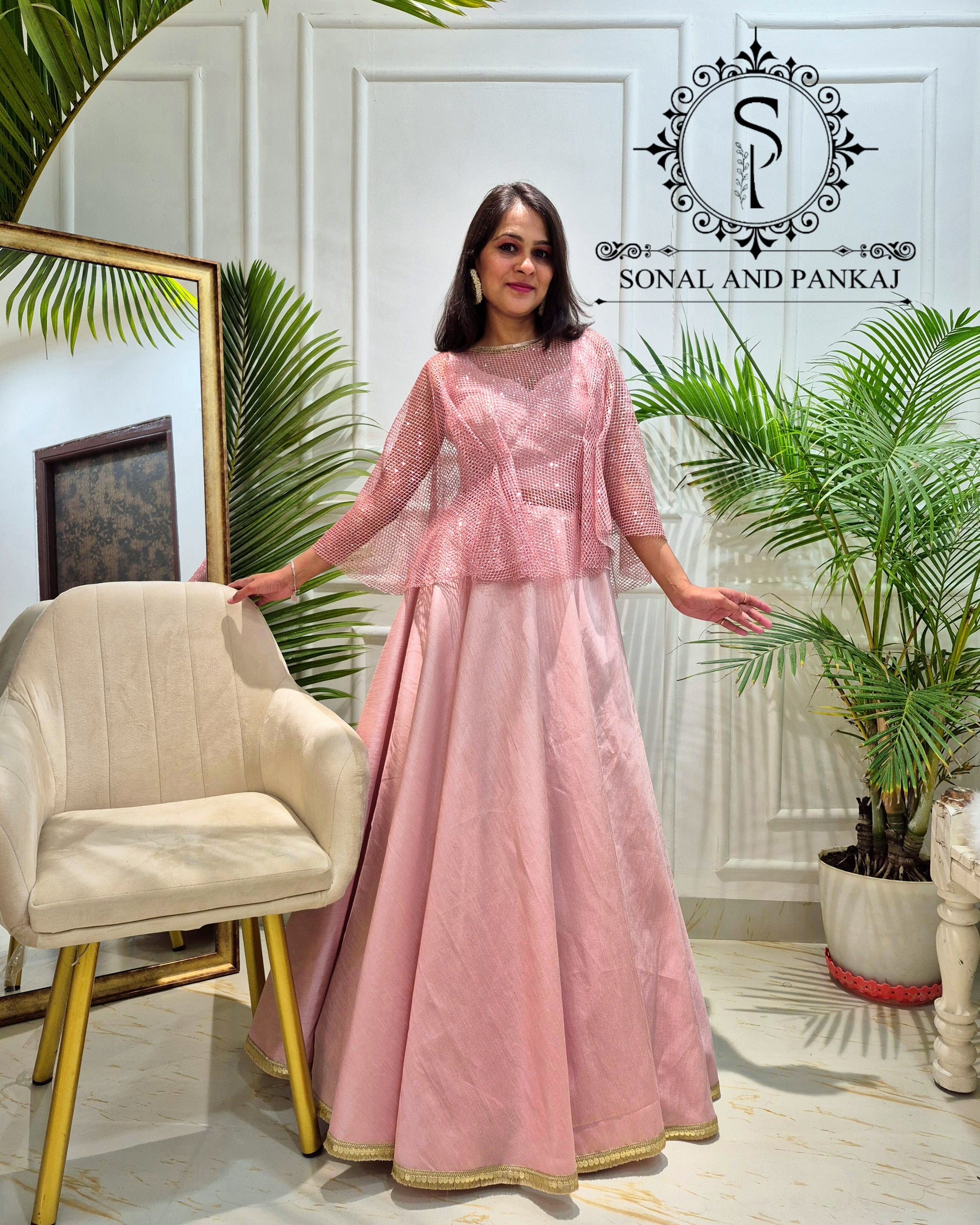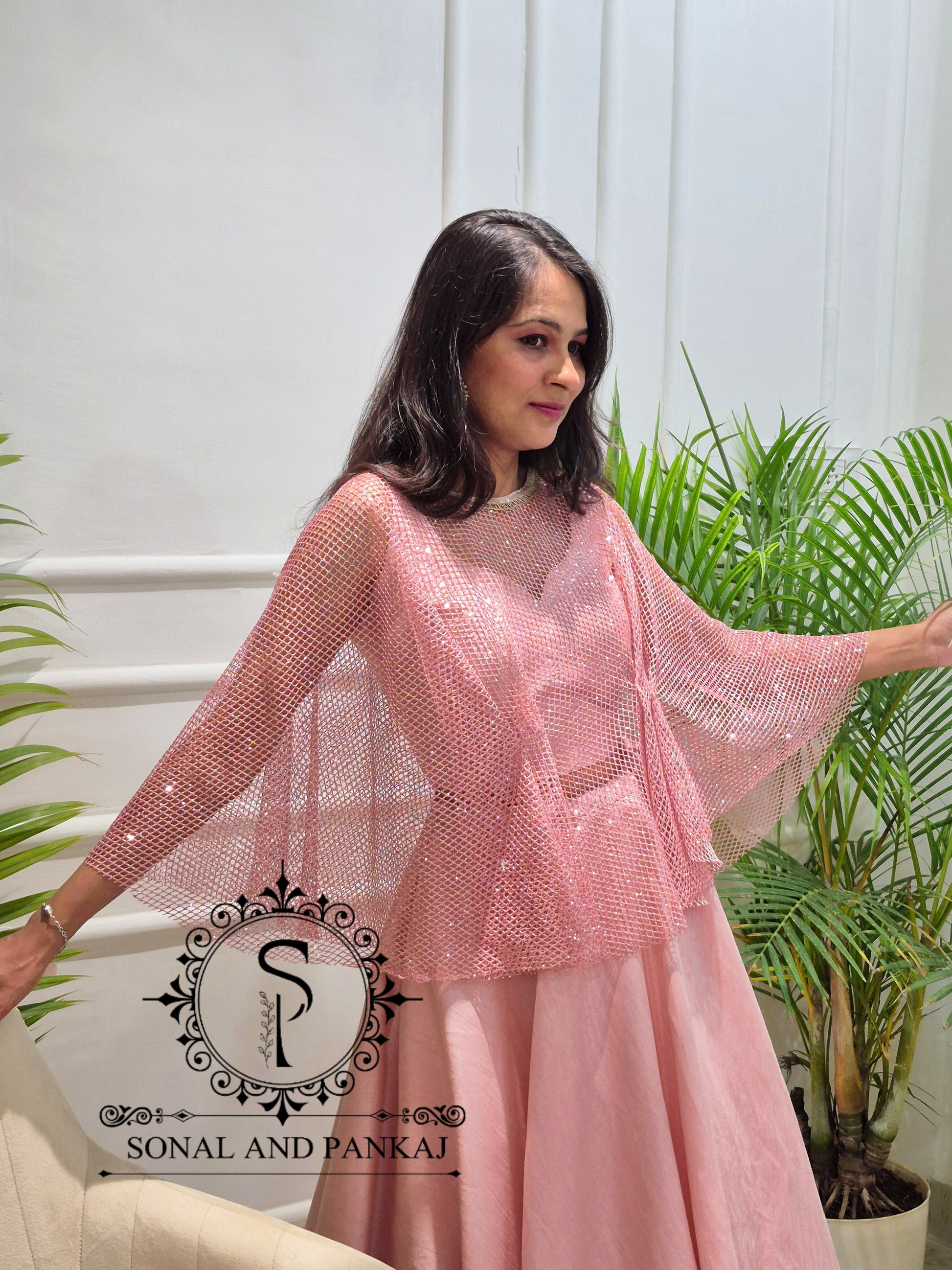 Beautiful Blush Pink Lehenga & Blouse Paired With Shimmer Mesh Cape ✨🌸