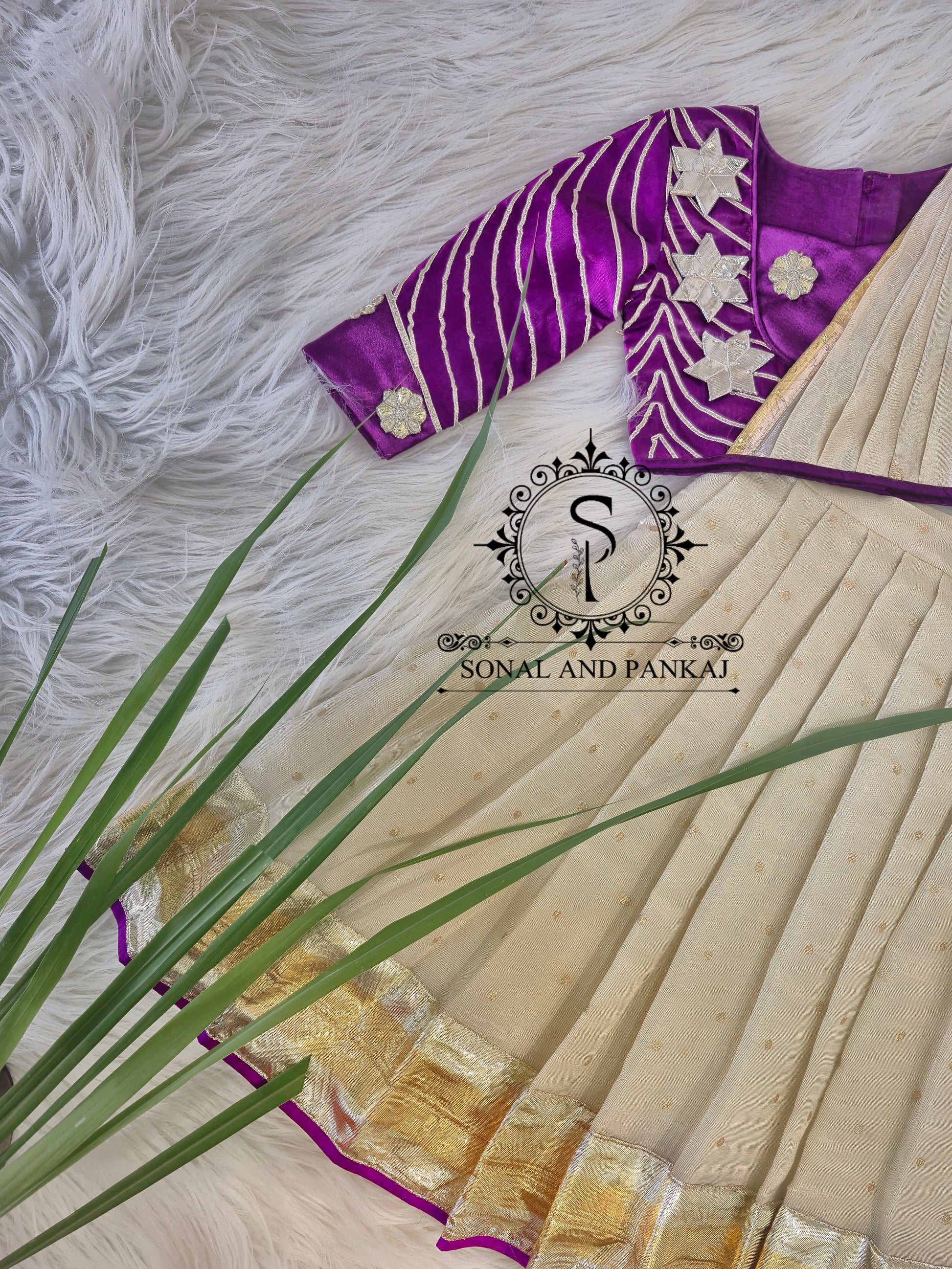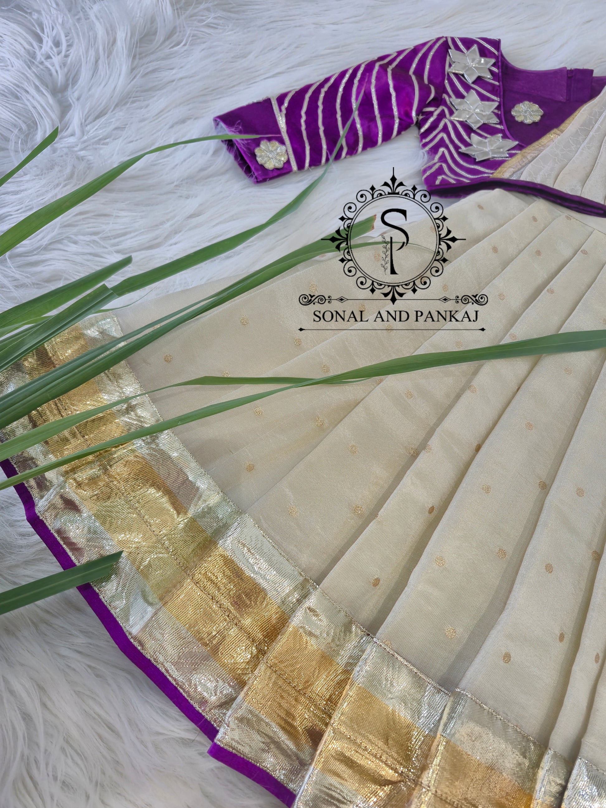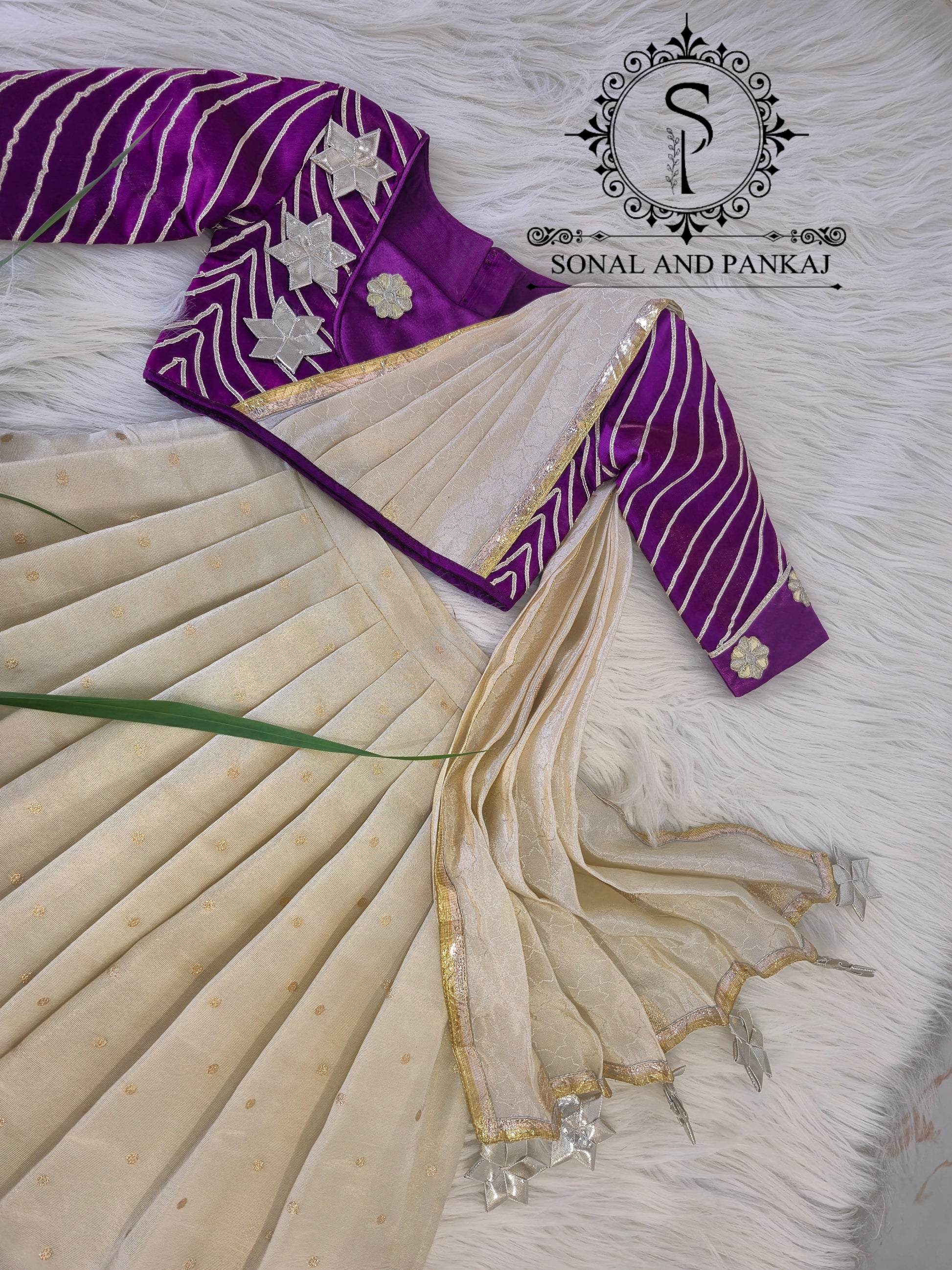 Fabrics: Satin silk blouse, jacquard crepe duppatta & chanderi silk lehenga.